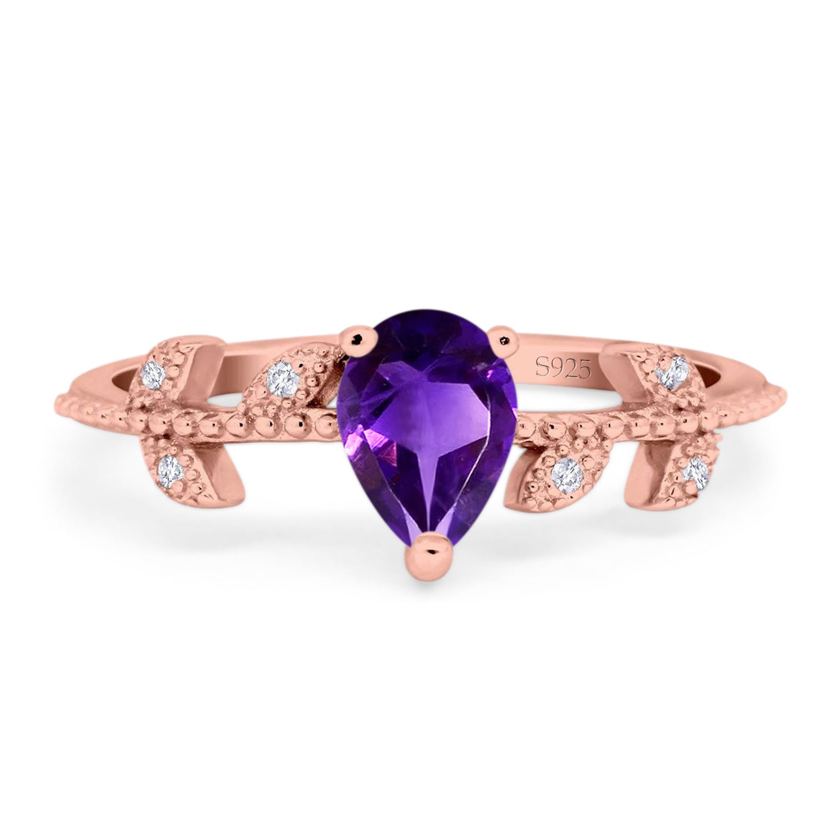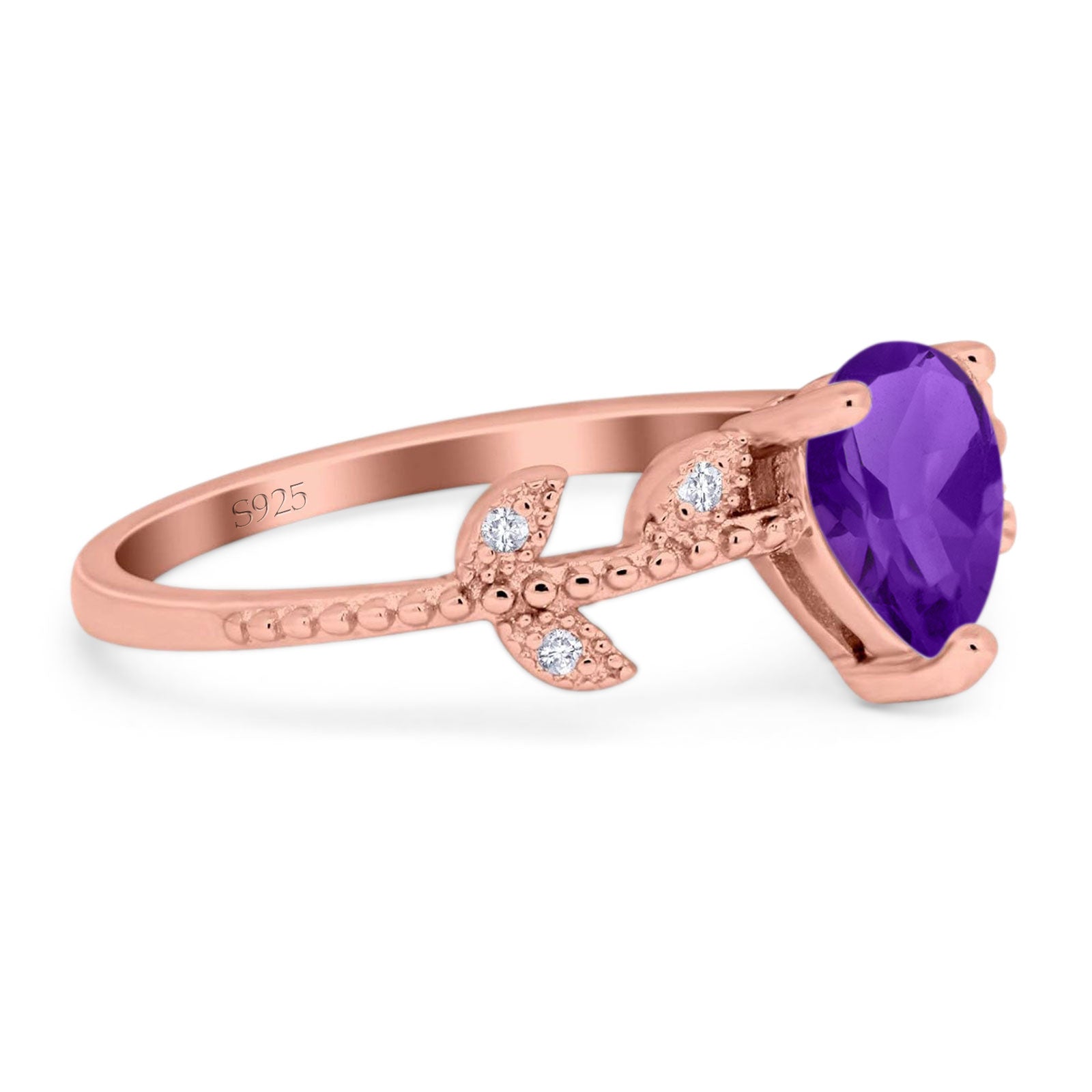 CZ & Blue Sapphire CZ Rose Tone Silver