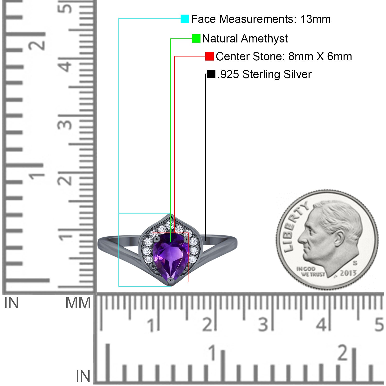 Metal Purity: 92.5% Sterling.