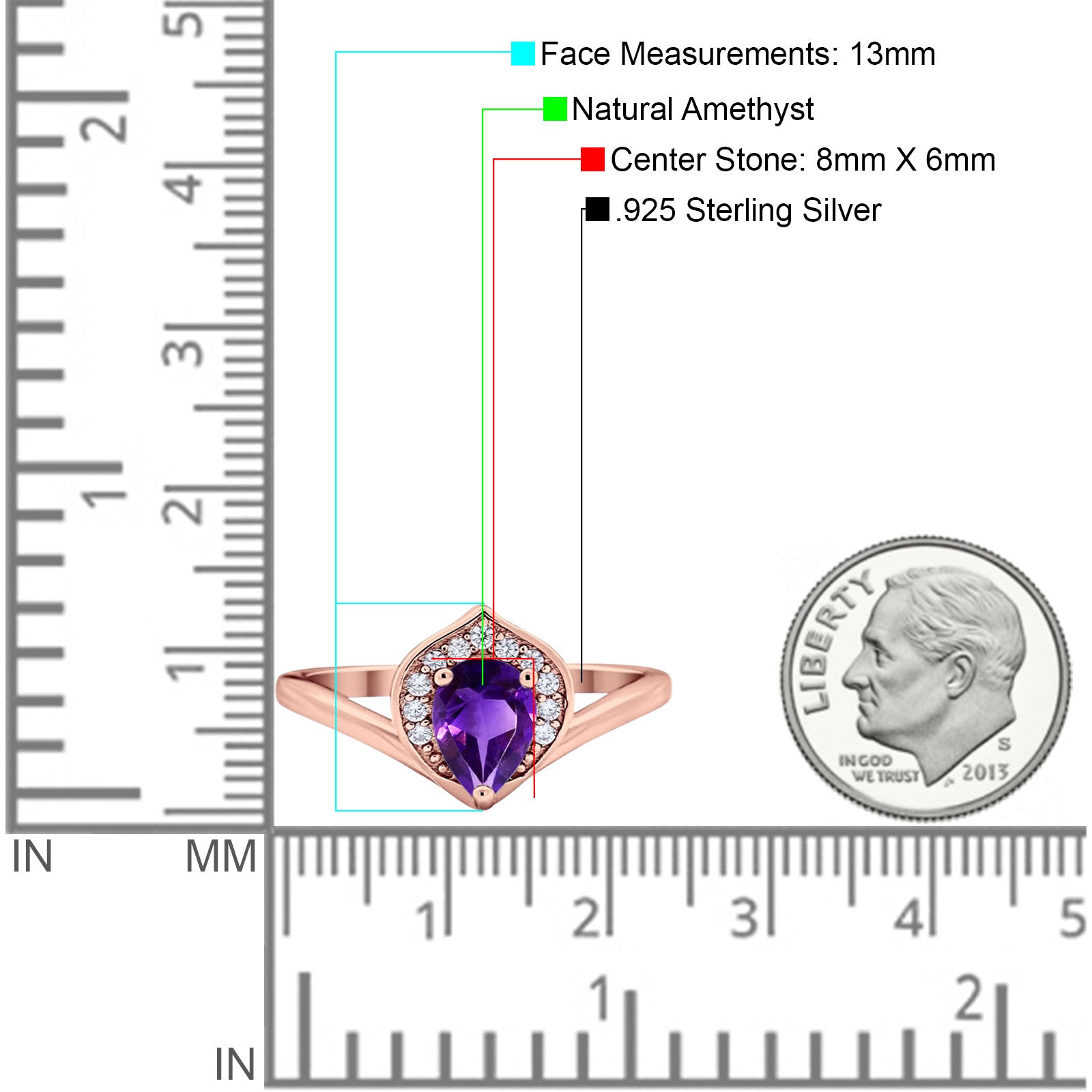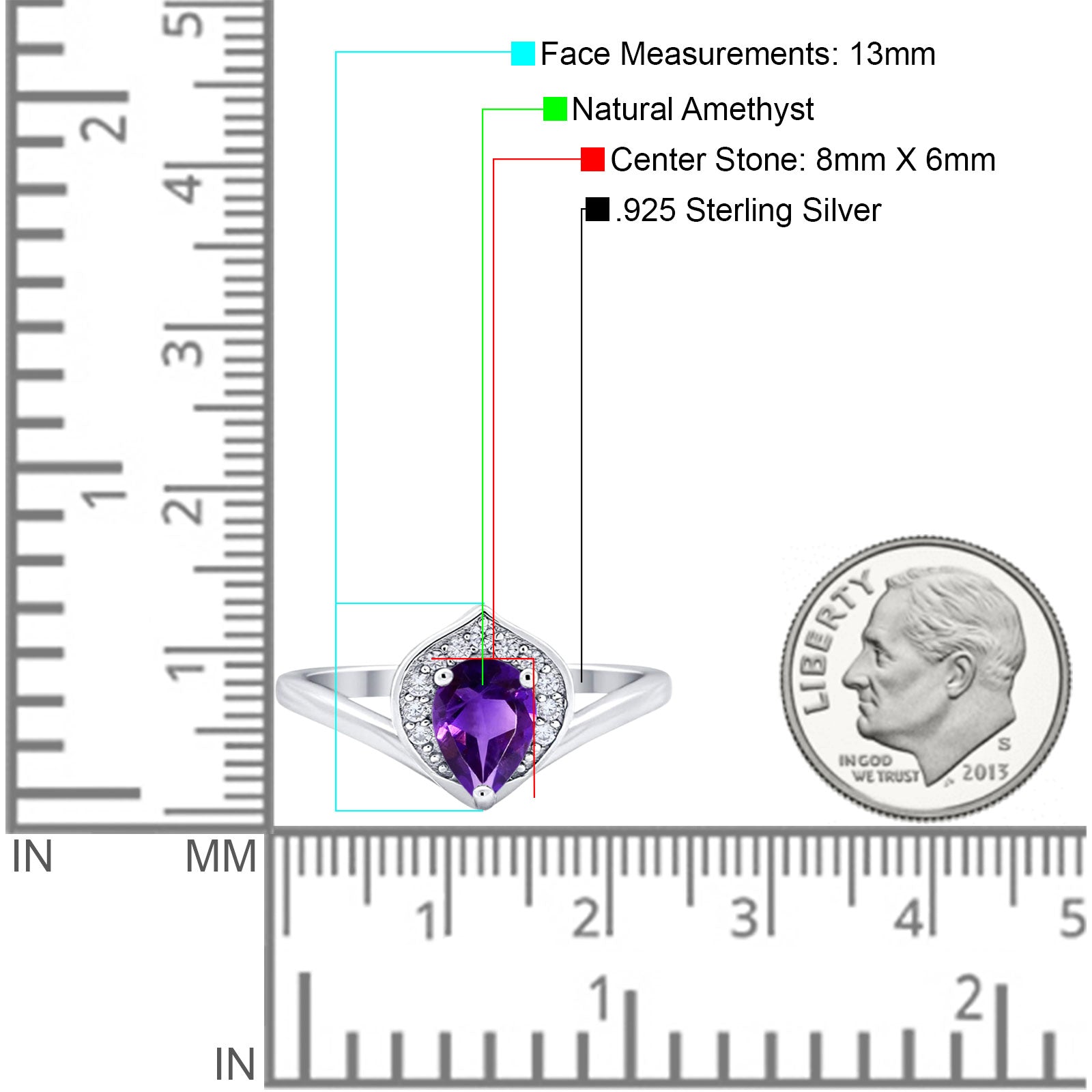 Center Stone Measurements:8mmx6mm.
