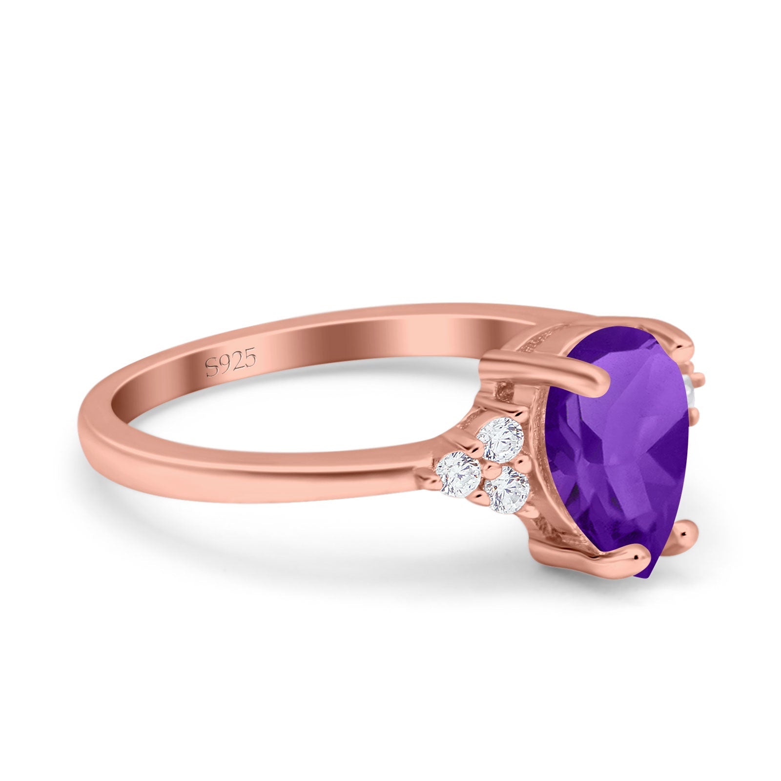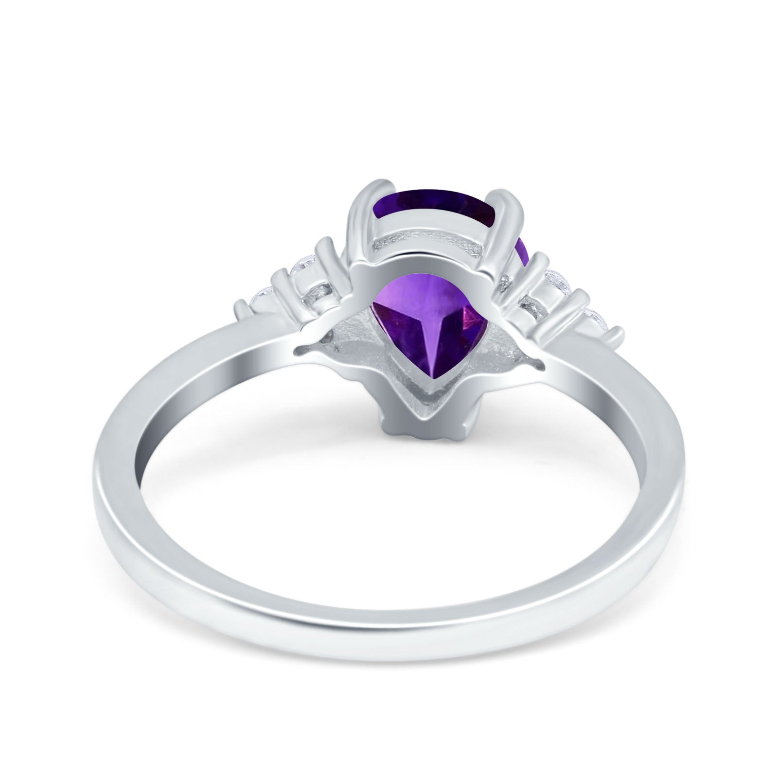 Pear Teardrop Natural Amethyst Wedding Ring 925 Sterling Silver