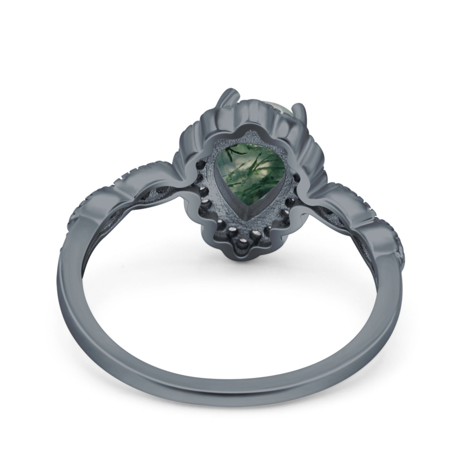 Minimalist 9mm Moonstone Moon Ring 925 Sterling Silver