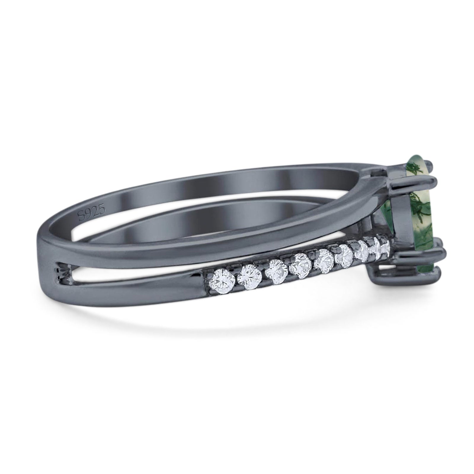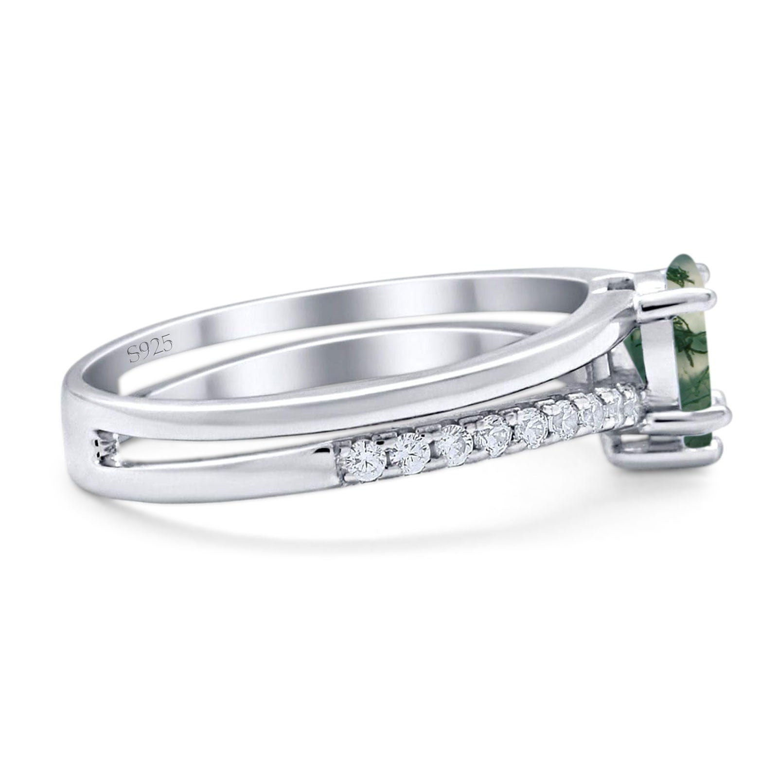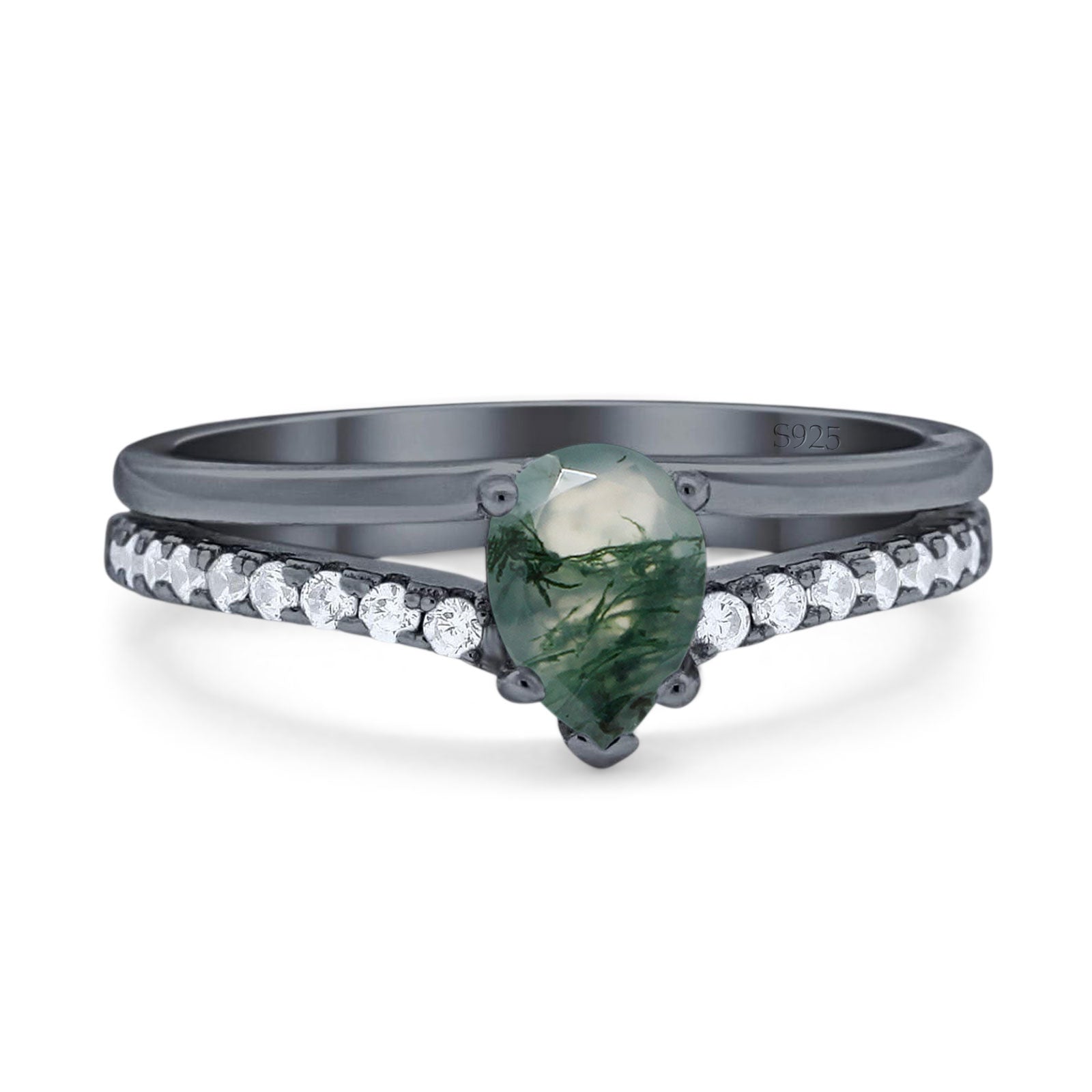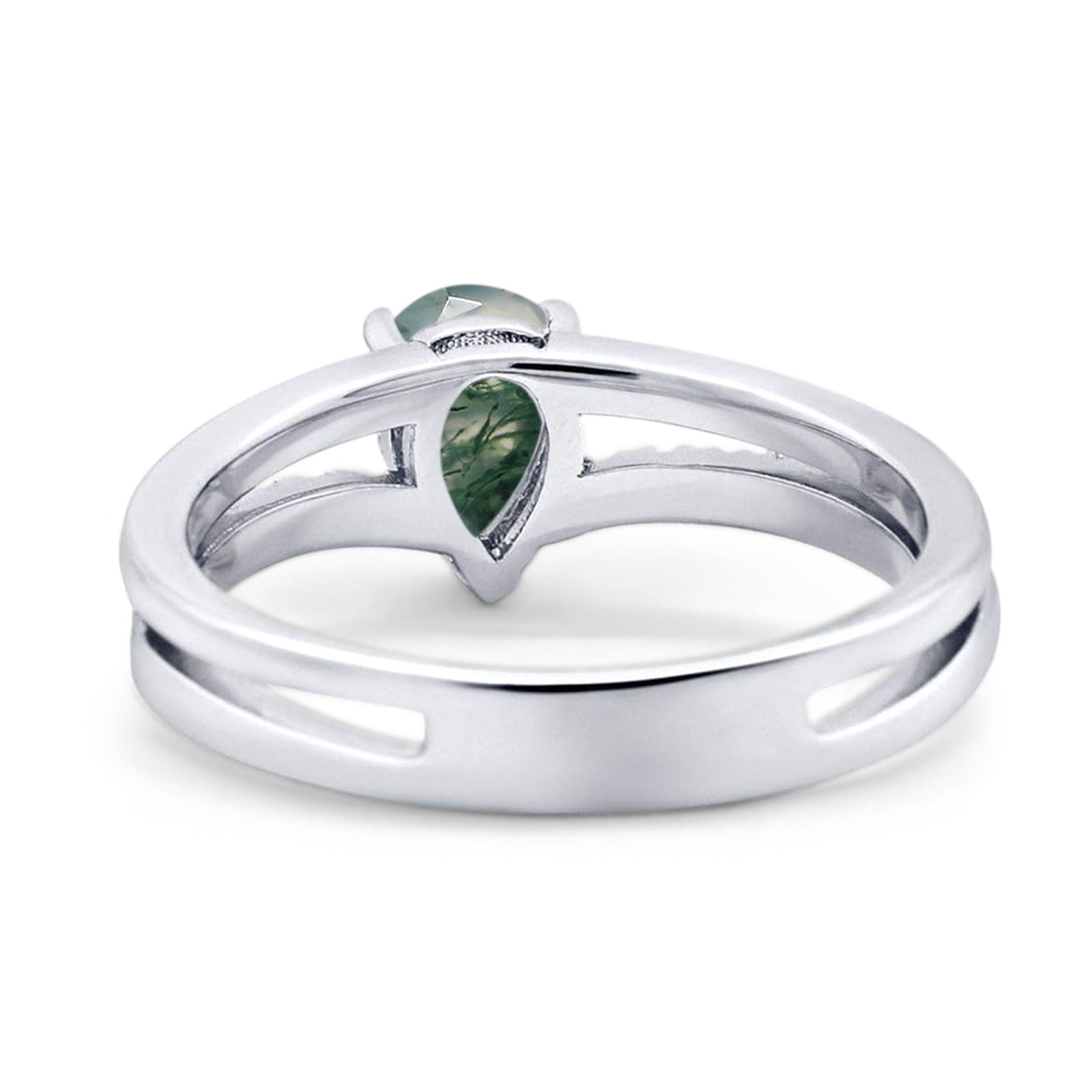 Pear Teardrop Natural Green Moss Agate Wedding Ring 925 Sterling Silver