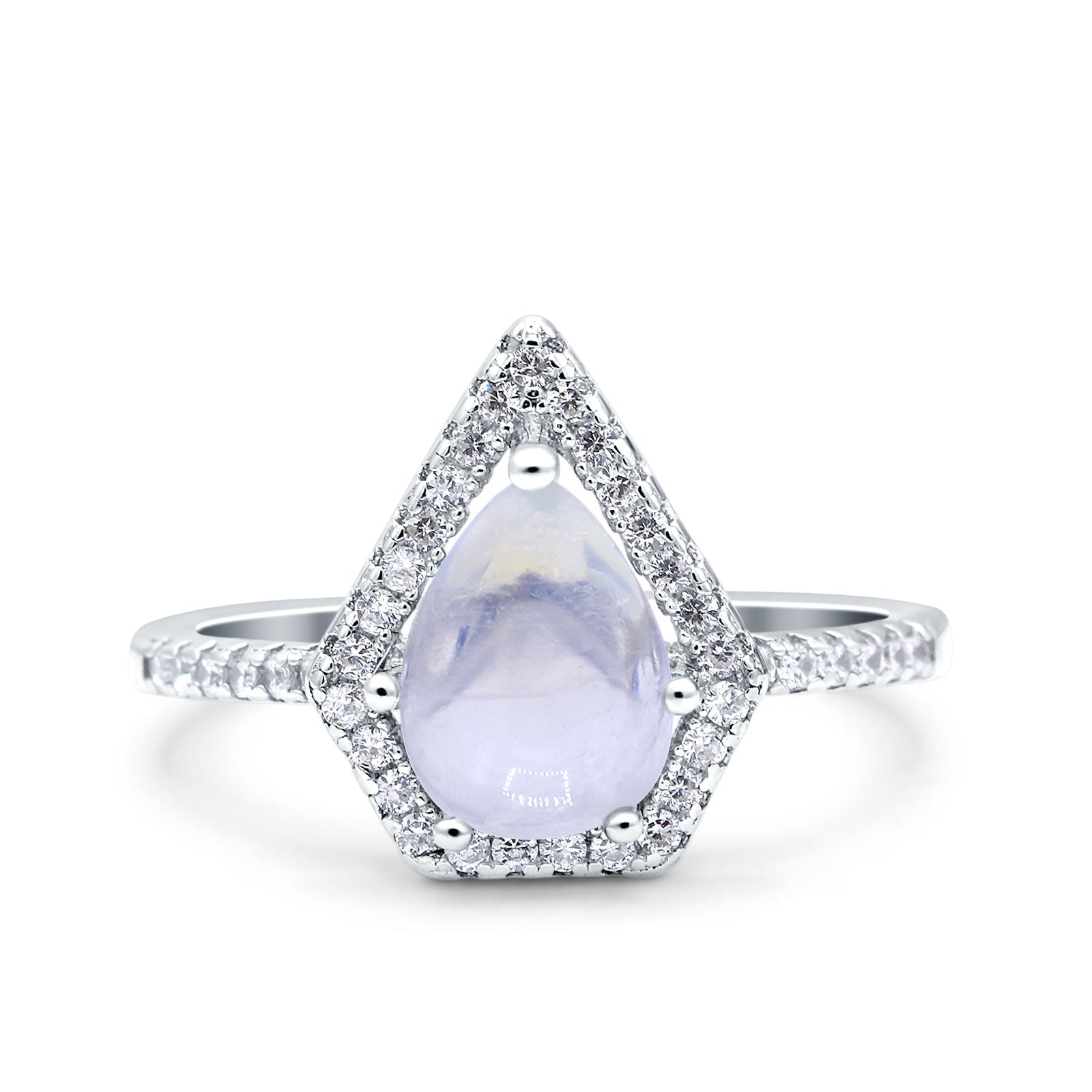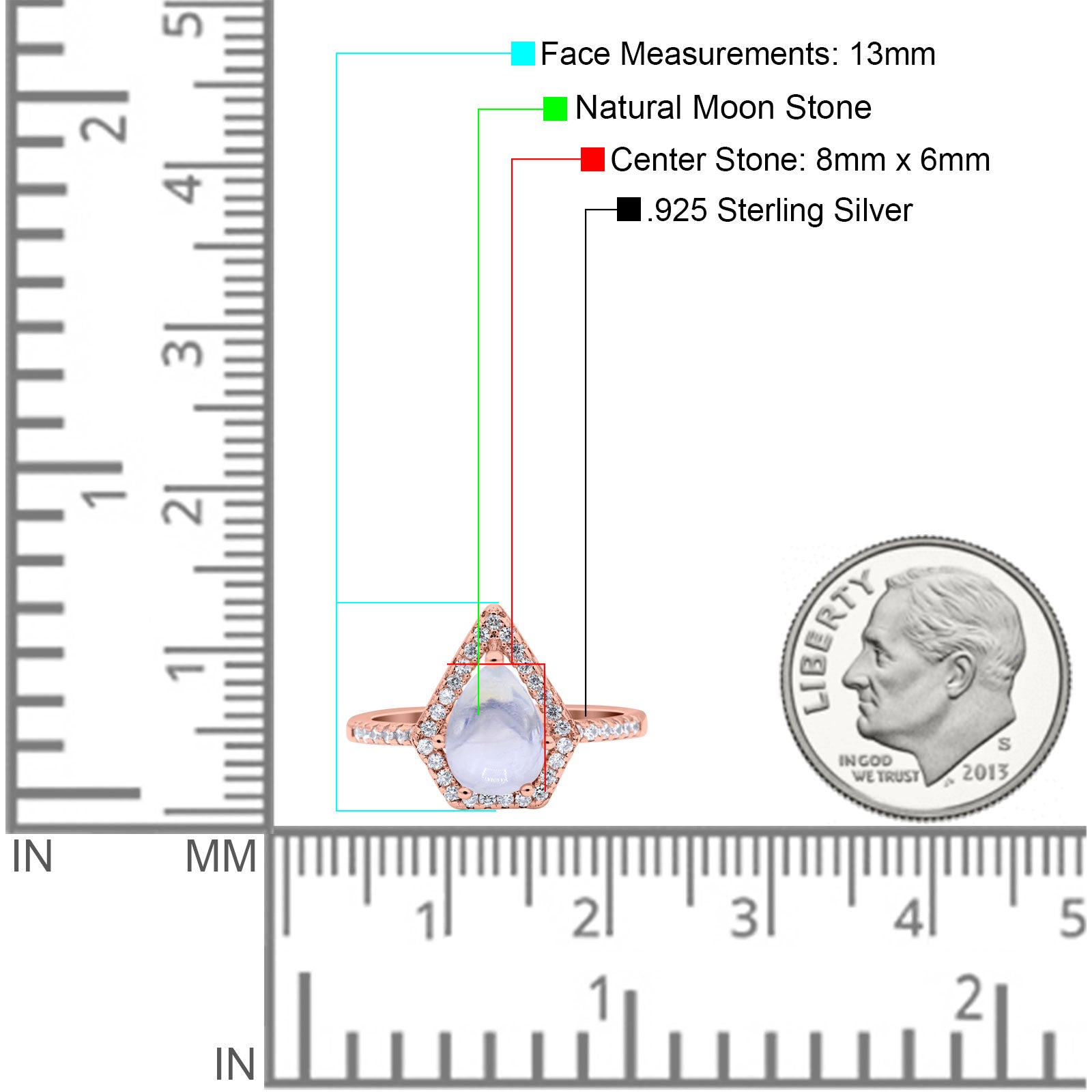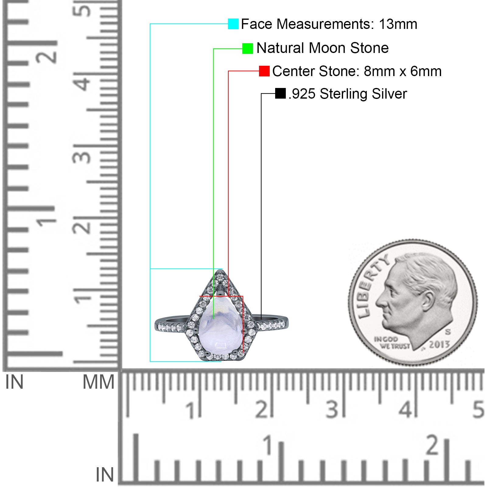 Minimalist 17mm Moonstone Flower & Bee Oxidized Ring 925 Sterling Silver
