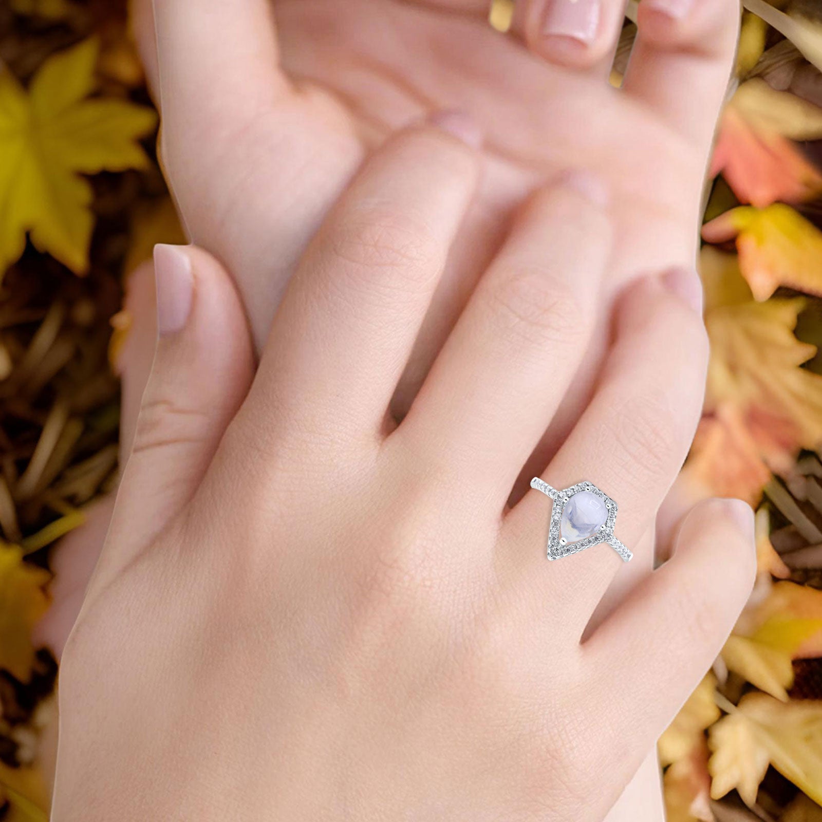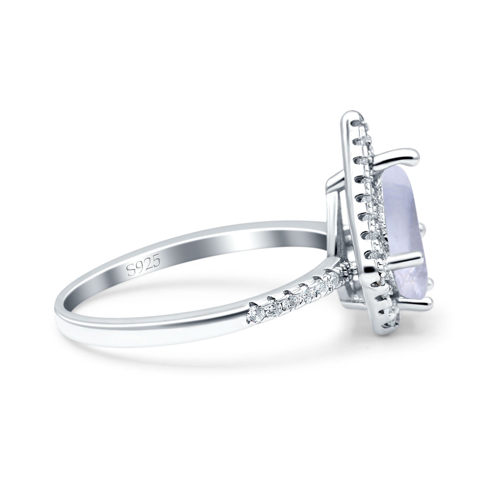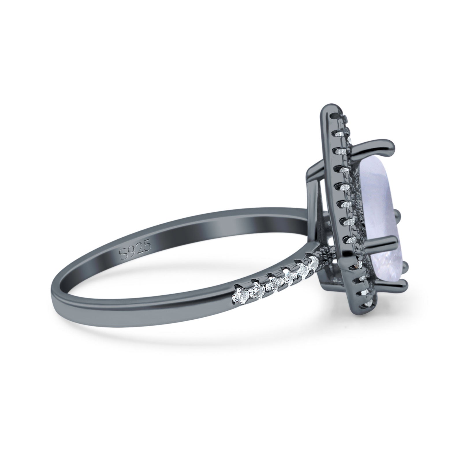 Minimalist 17mm Lab Created Blue Opal Flower & Bee Oxidized Ring 925 Sterling Silver
