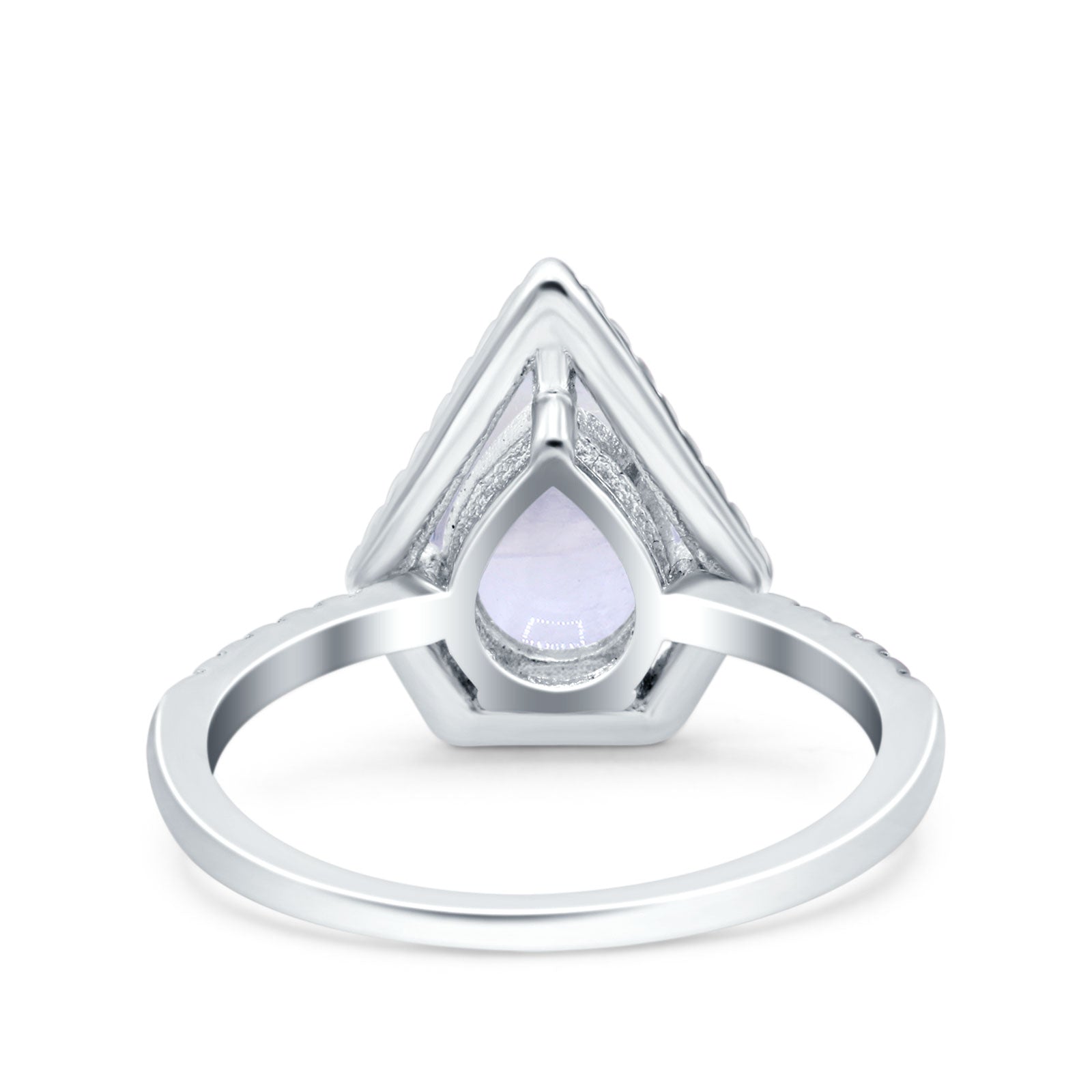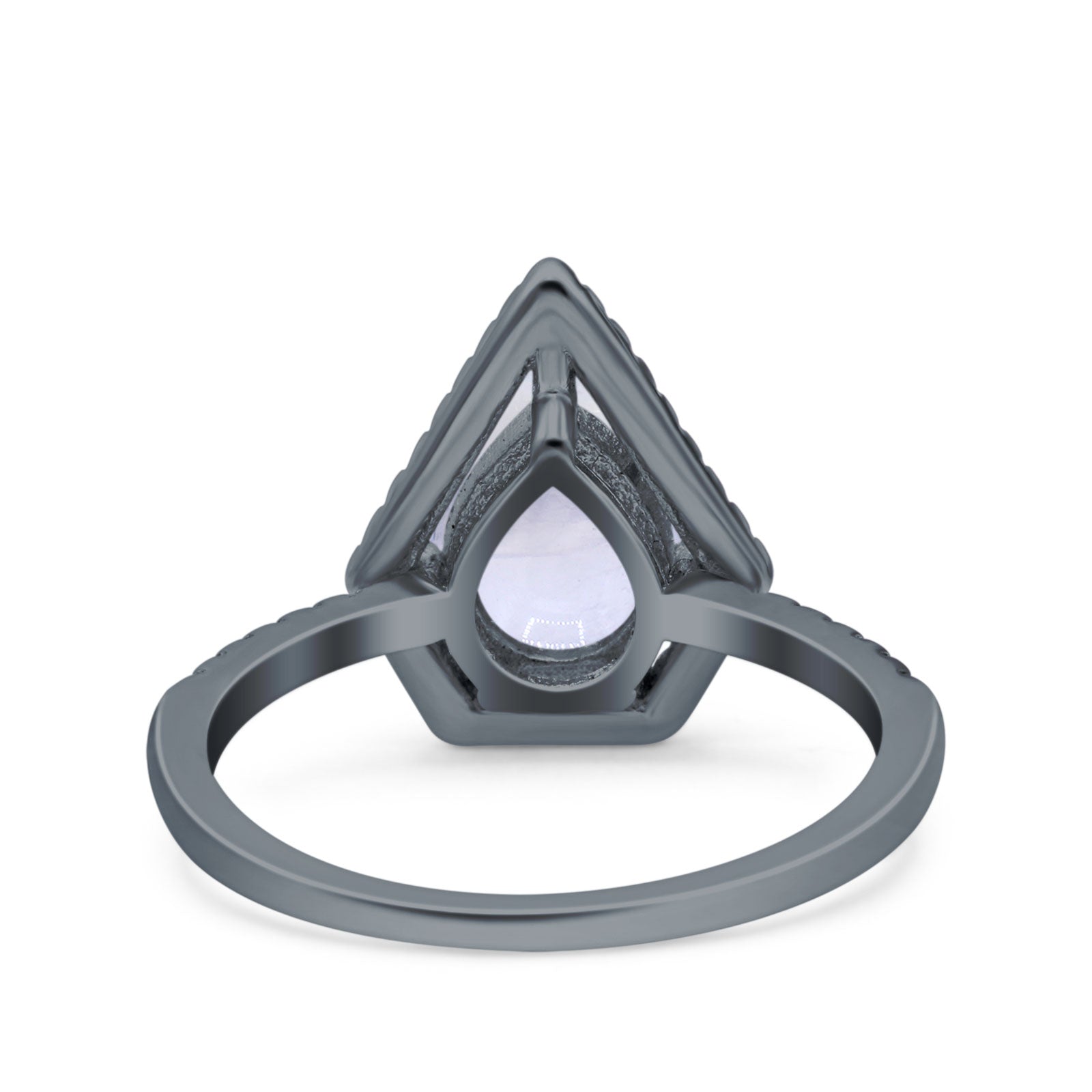 Minimalist 17mm Lab Created White Opal Flower & Bee Oxidized Ring 925 Sterling Silver