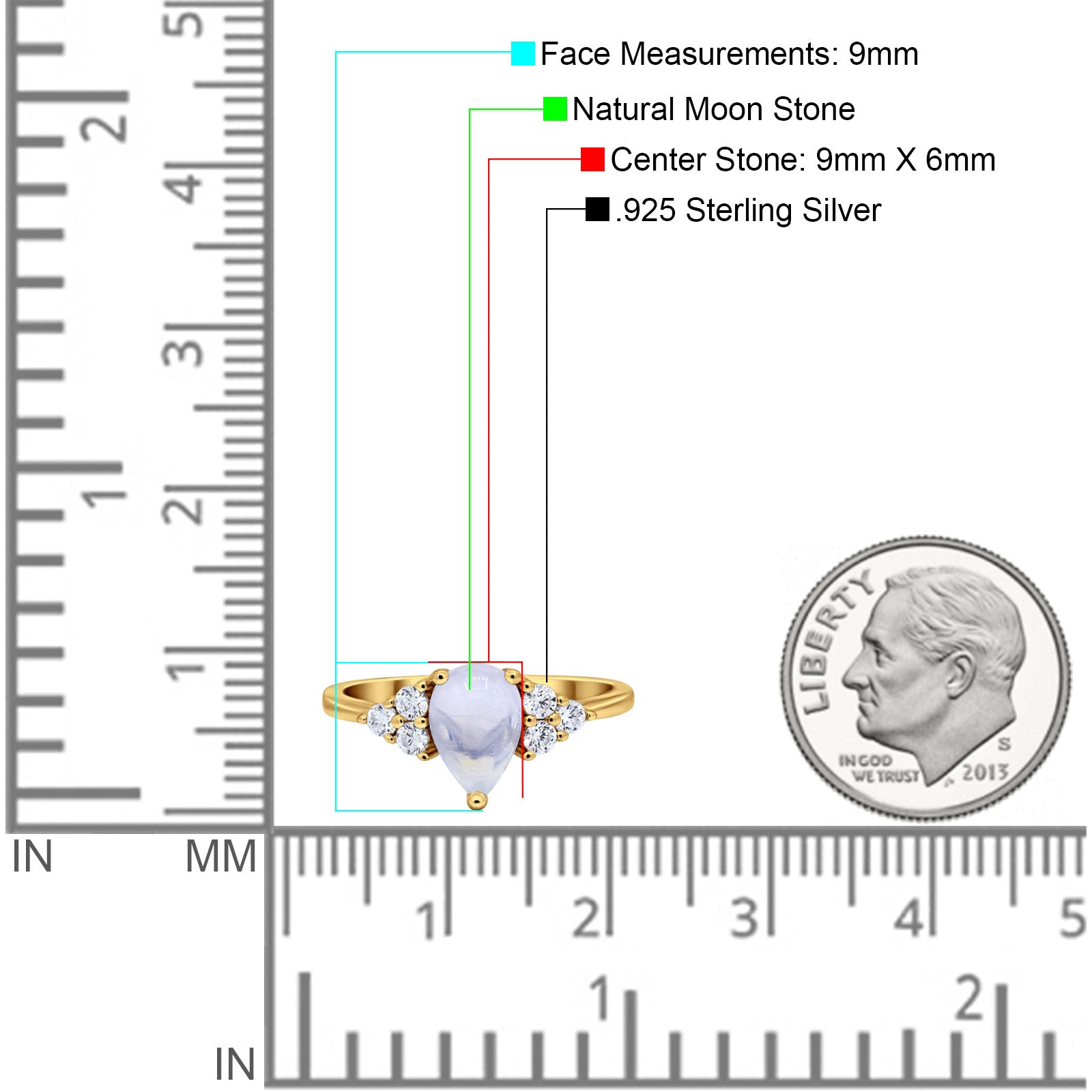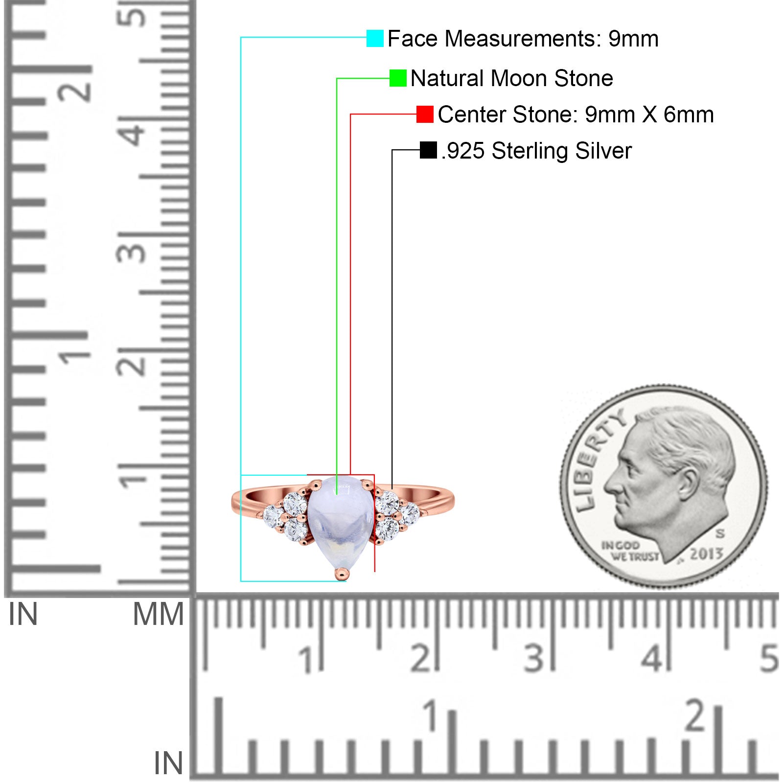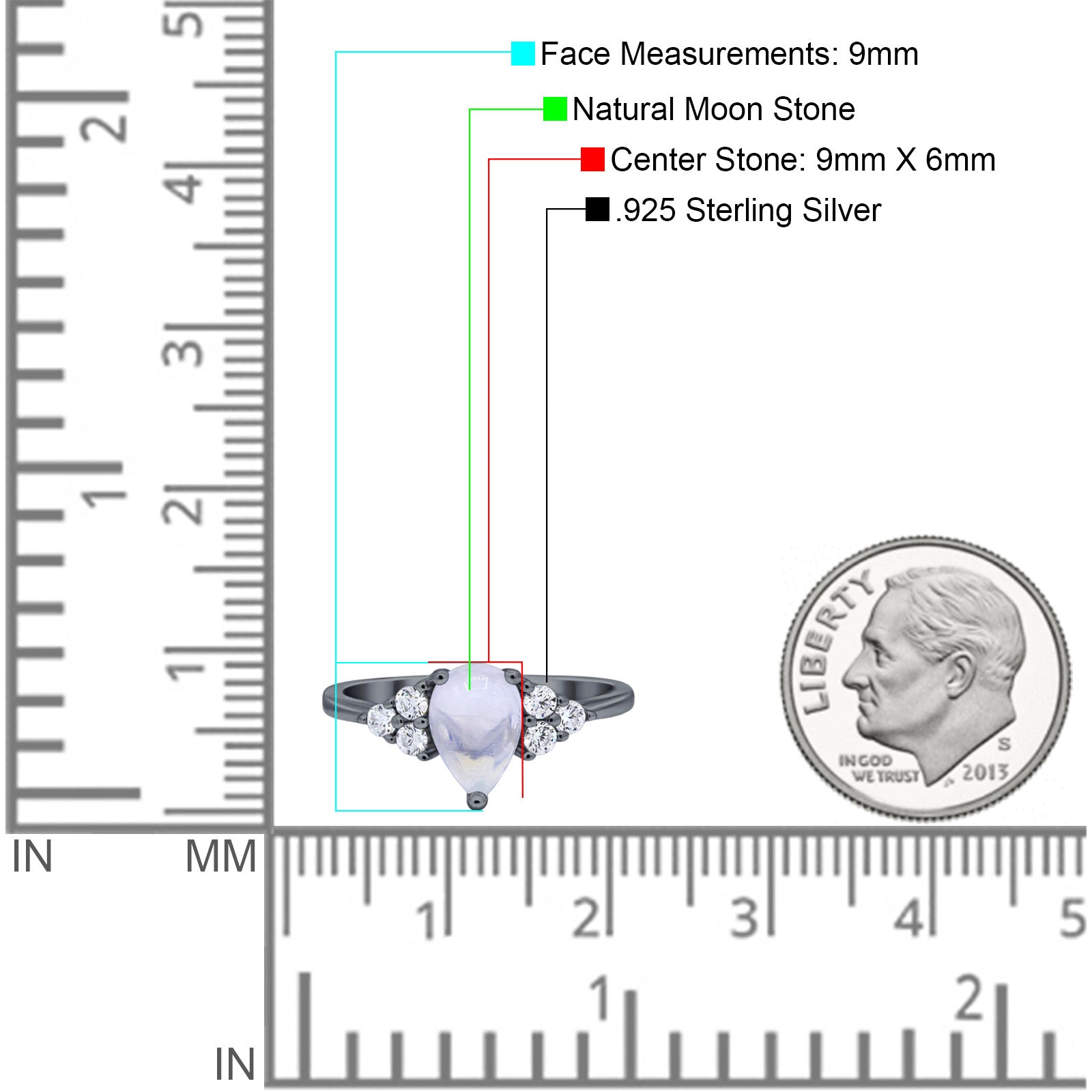 Center Stone Measurements:9mmx6mm.