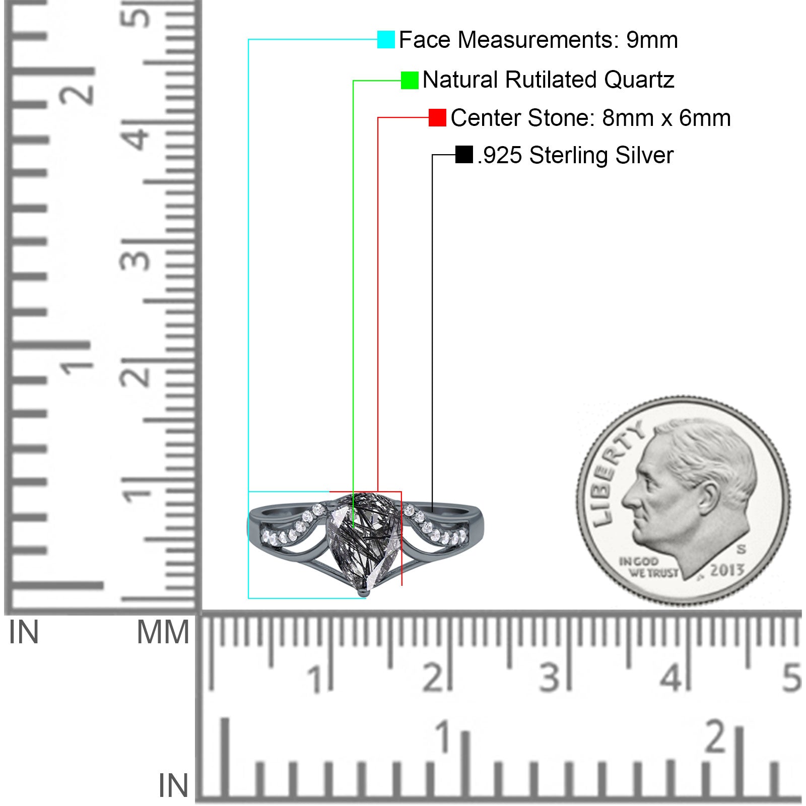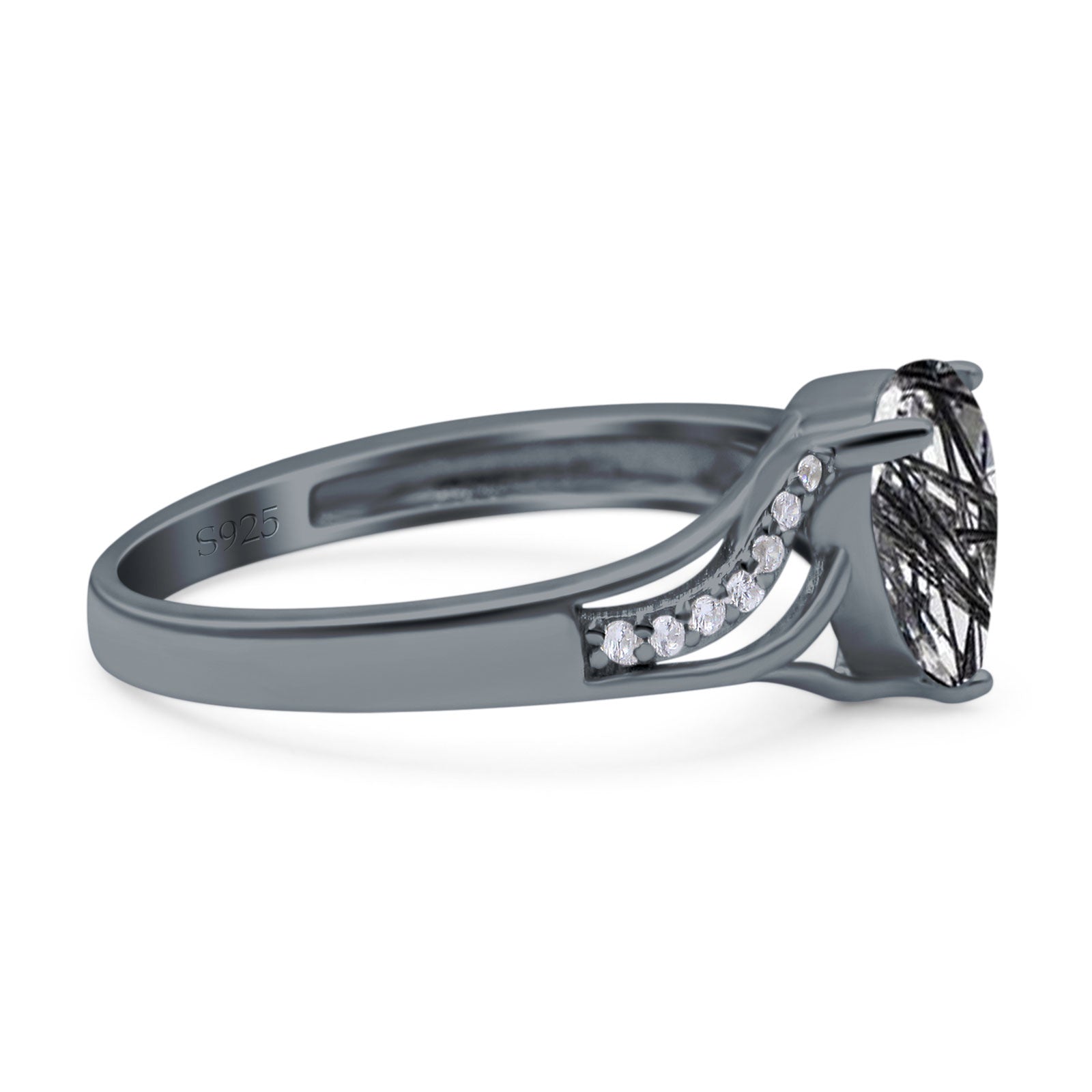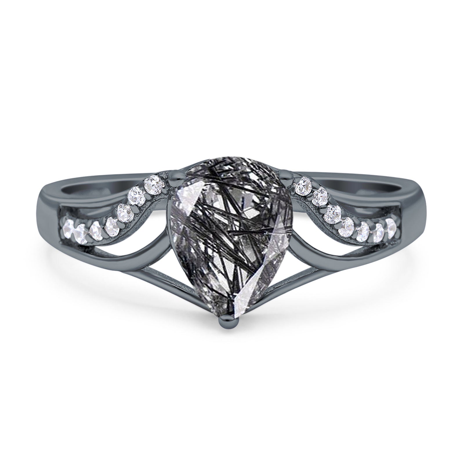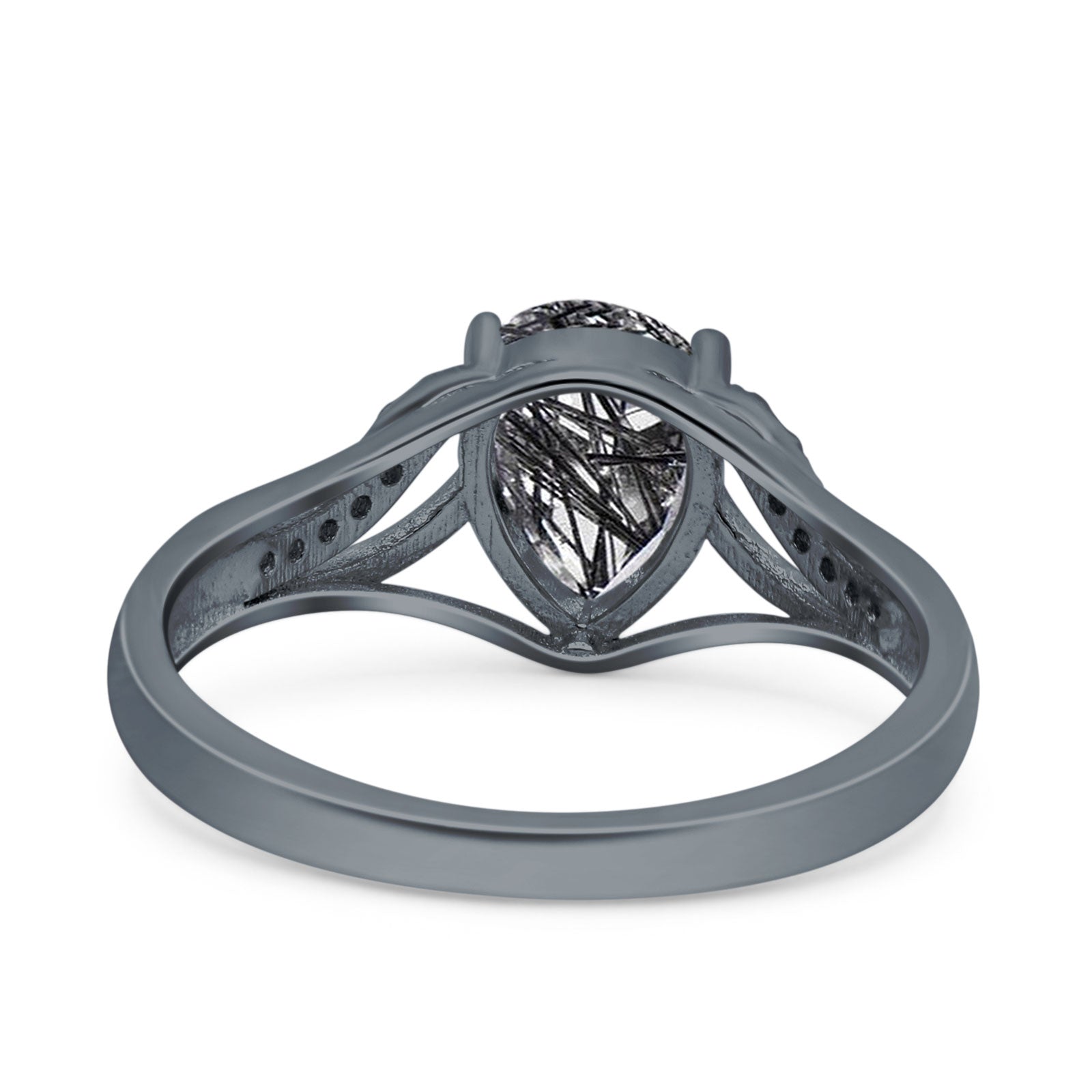 Pear Teardrop Natural Rutilated Quartz Art Deco Ring 925 Sterling Silver