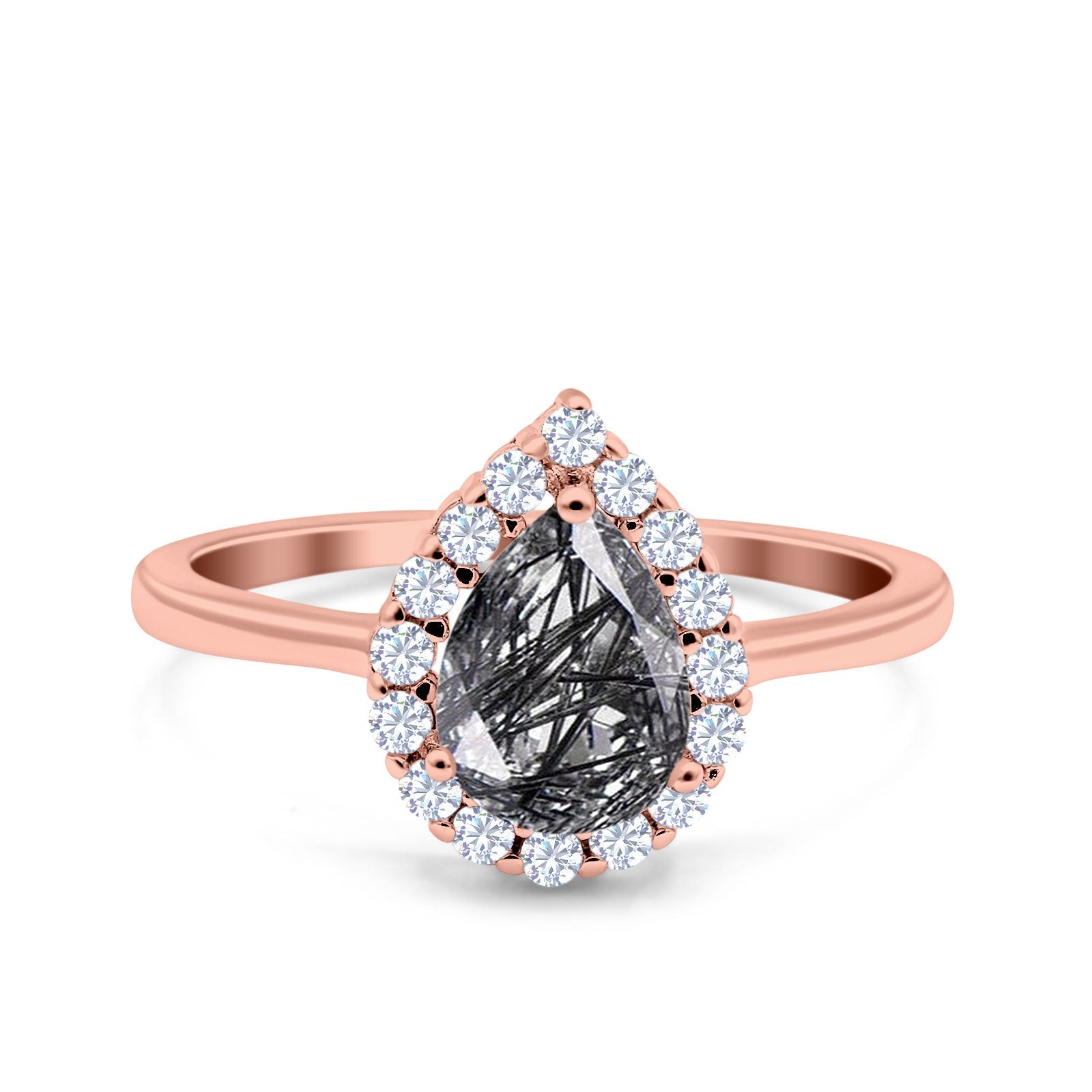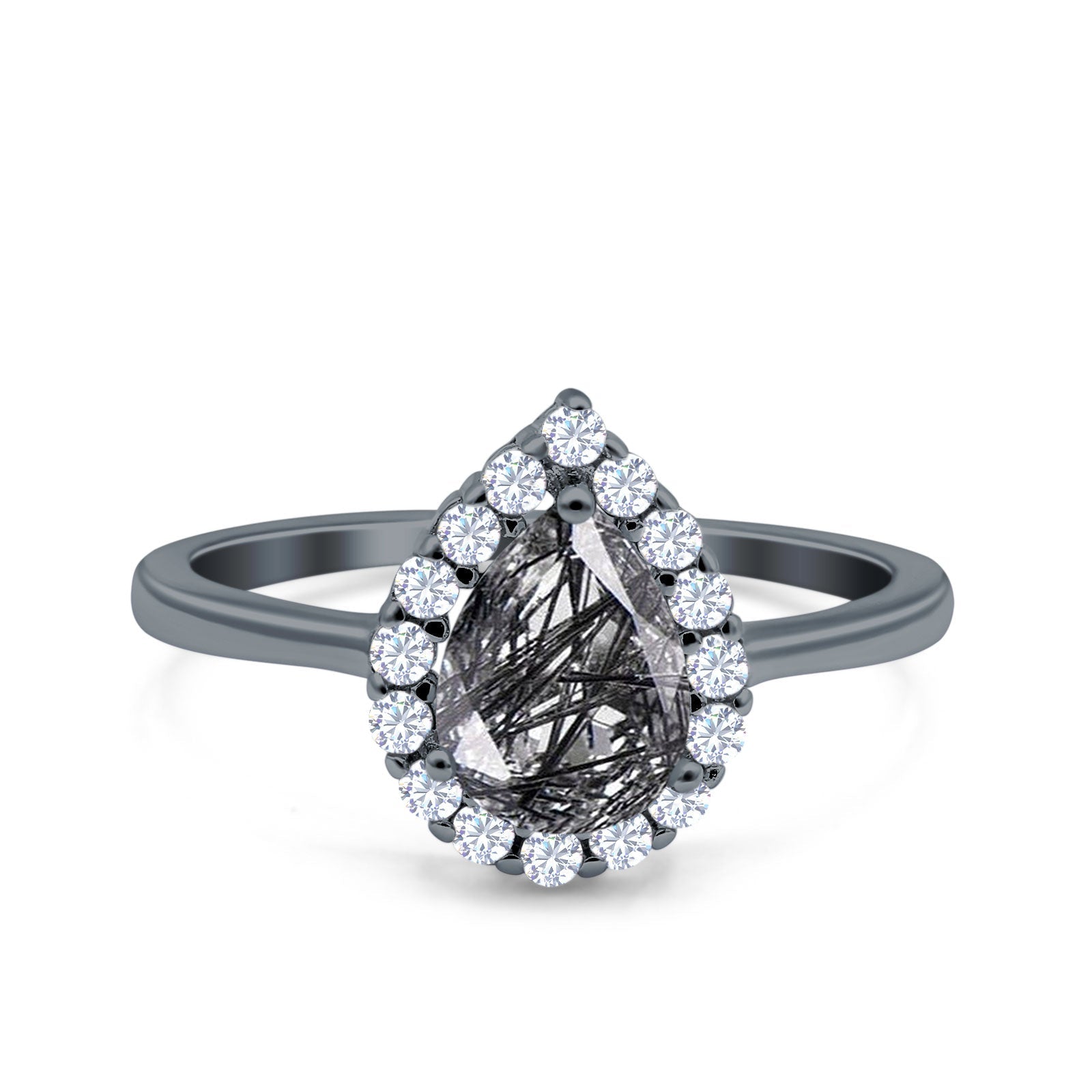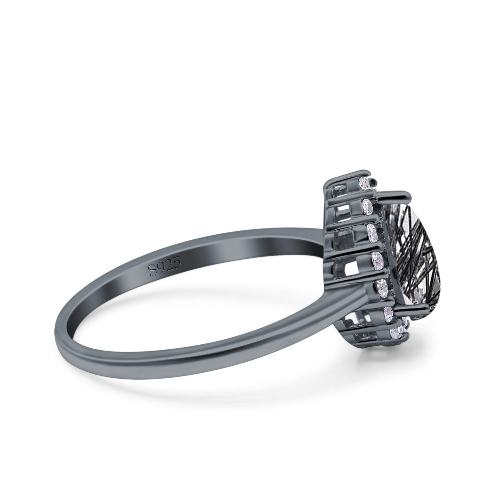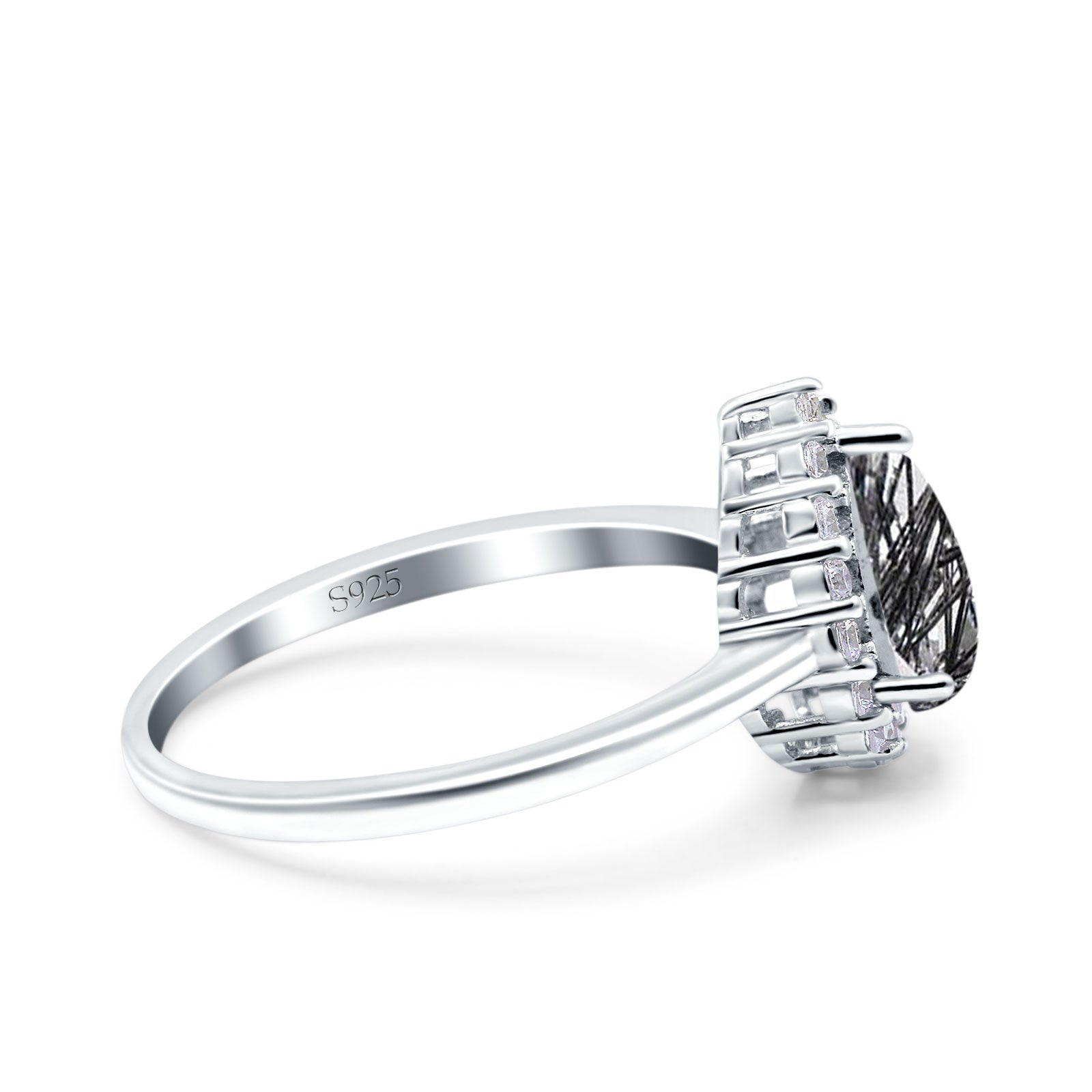 Minimalist 17mm Lab Created Blue Opal Flower & Bee Oxidized Ring 925 Sterling Silver