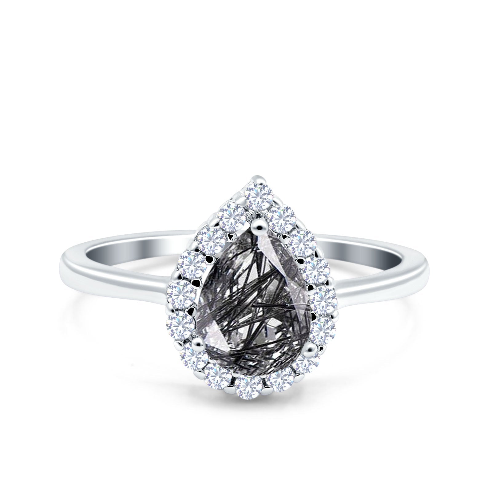 Minimalist 17mm Lab Created White Opal Flower & Bee Oxidized Ring 925 Sterling Silver