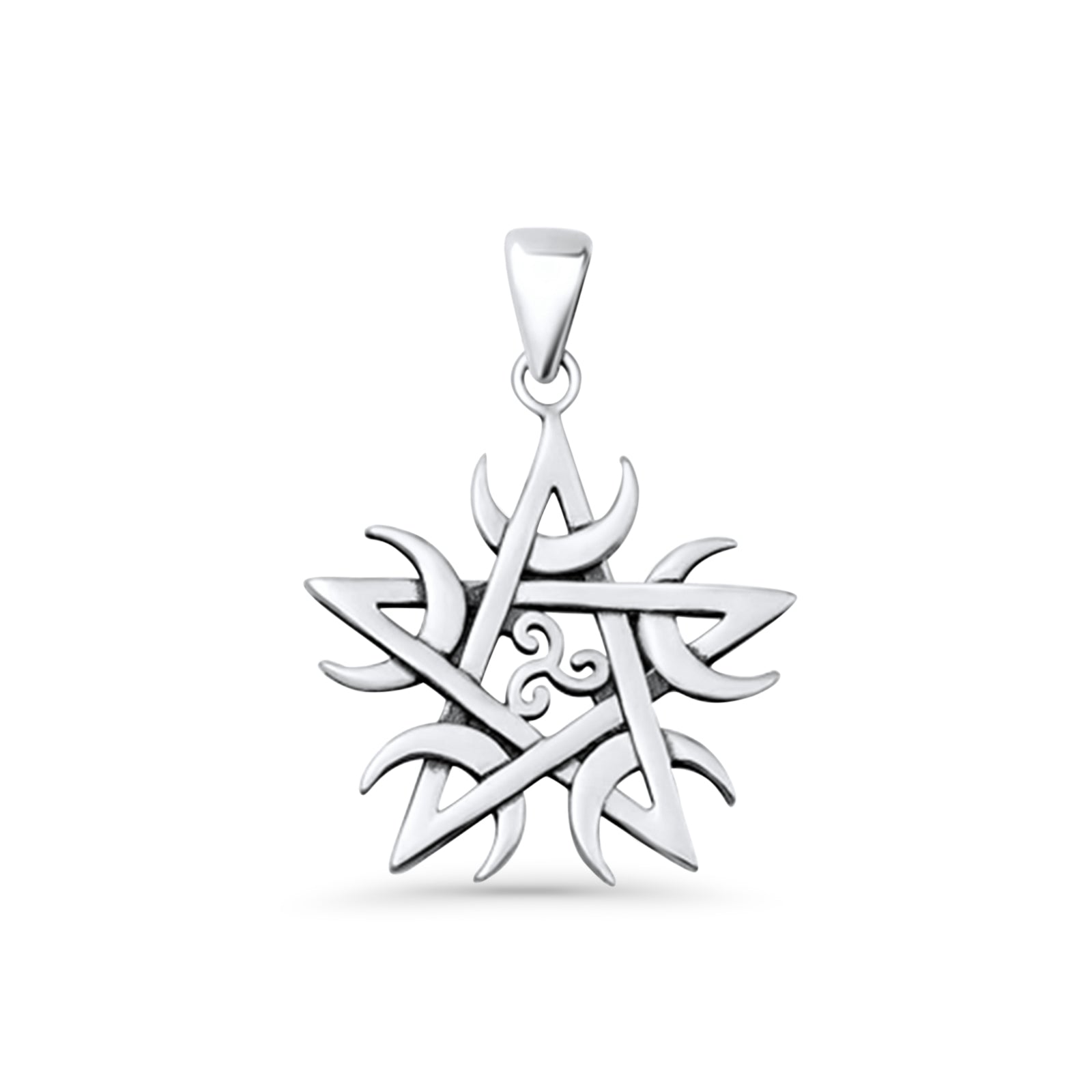 Pentagram, Moon & Triskelion Pendant Oxidized 925 Sterling Silver
