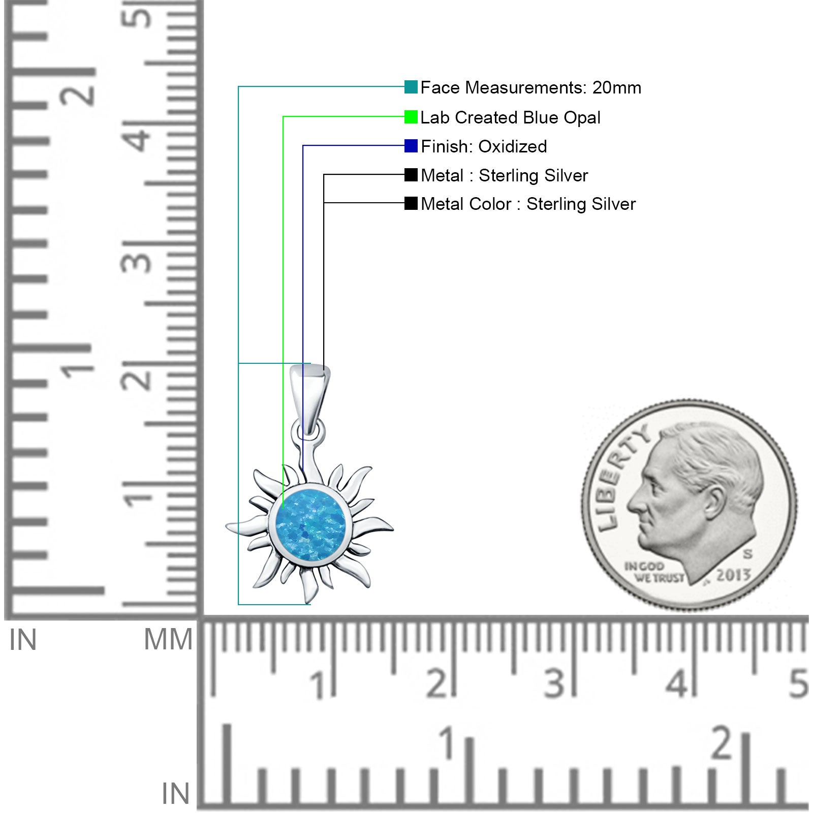 Style: Oxidized Round Lab Created Blue Opal Sun Pendant