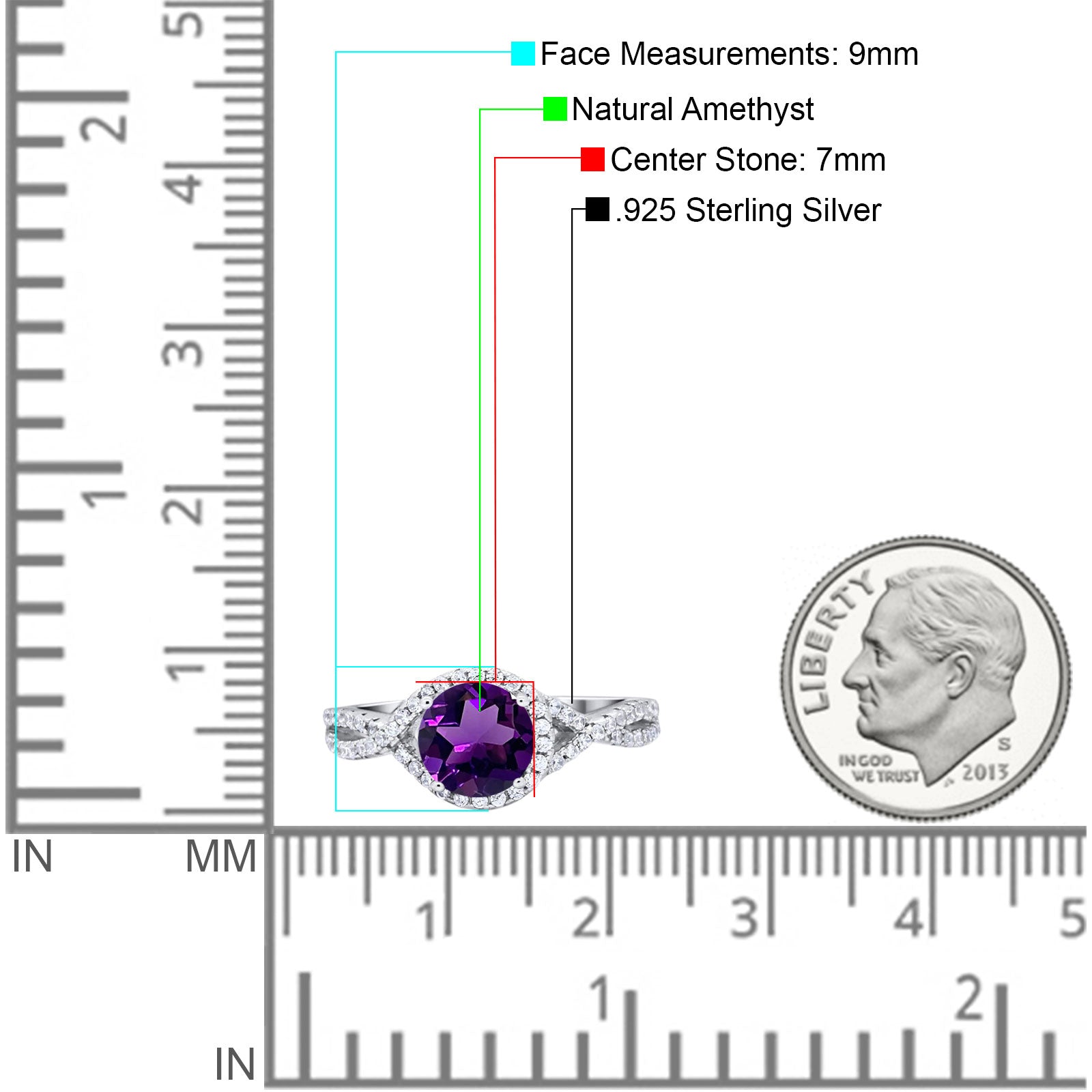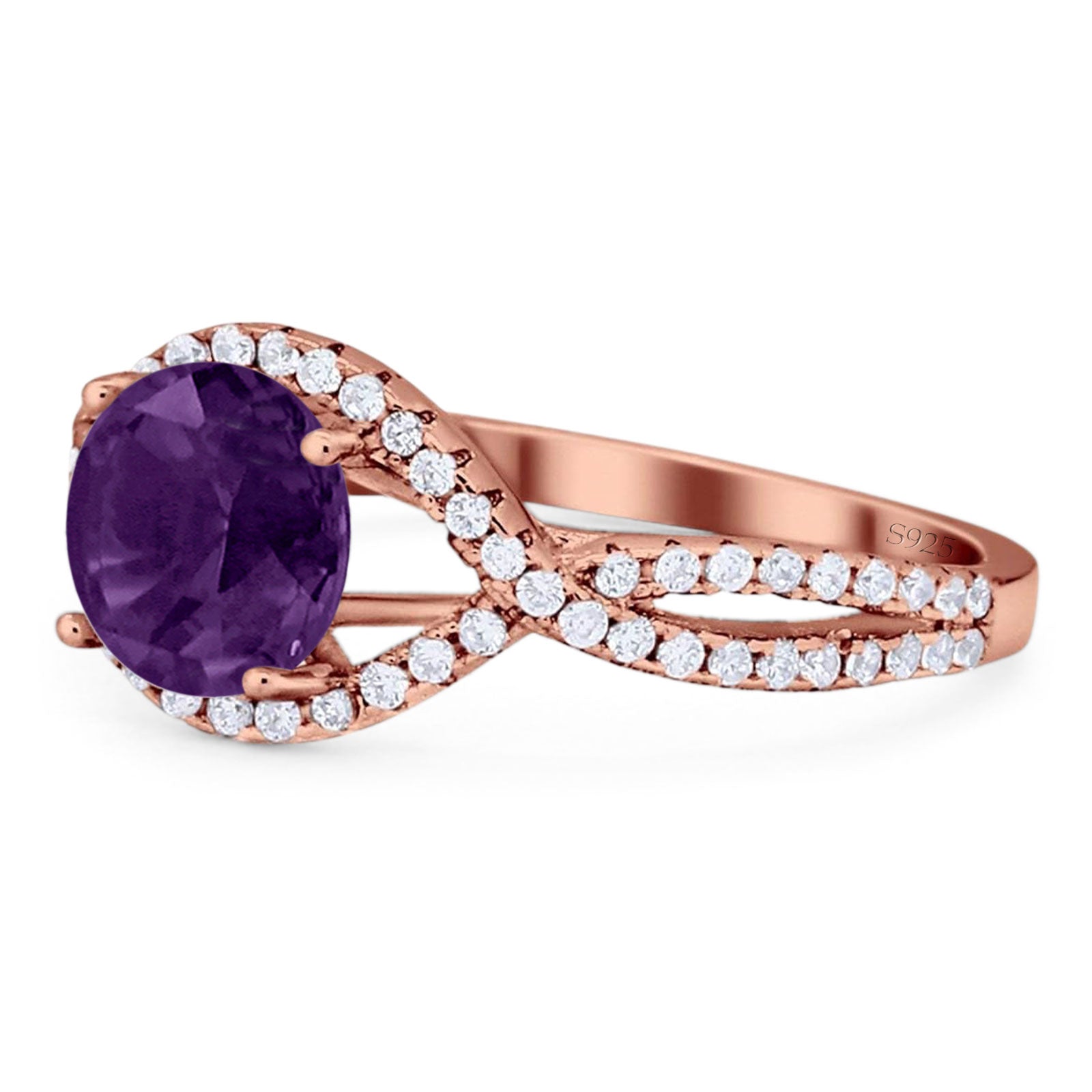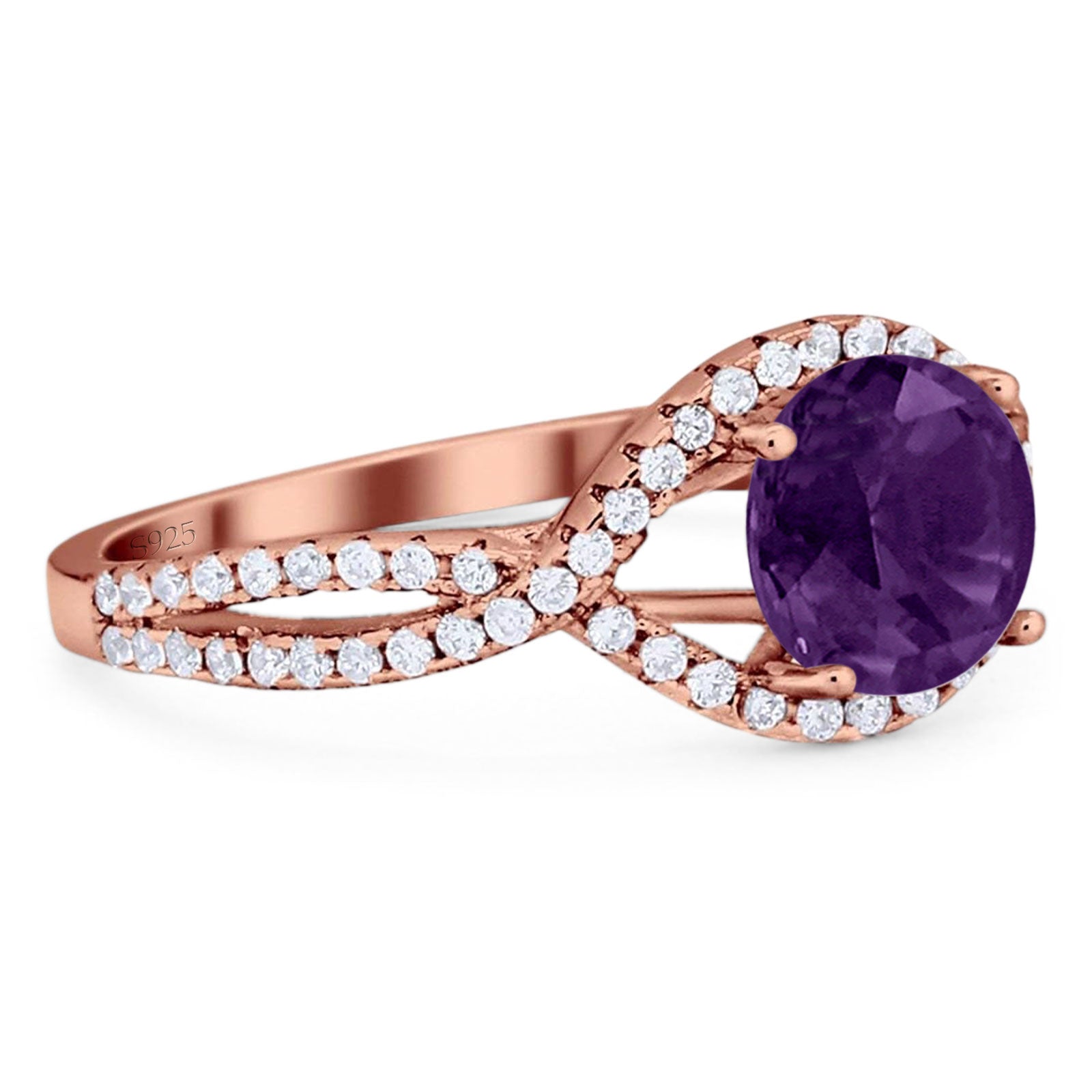 Round Natural Amethyst Infinity Shank Twisted Ring 925 Sterling Silver