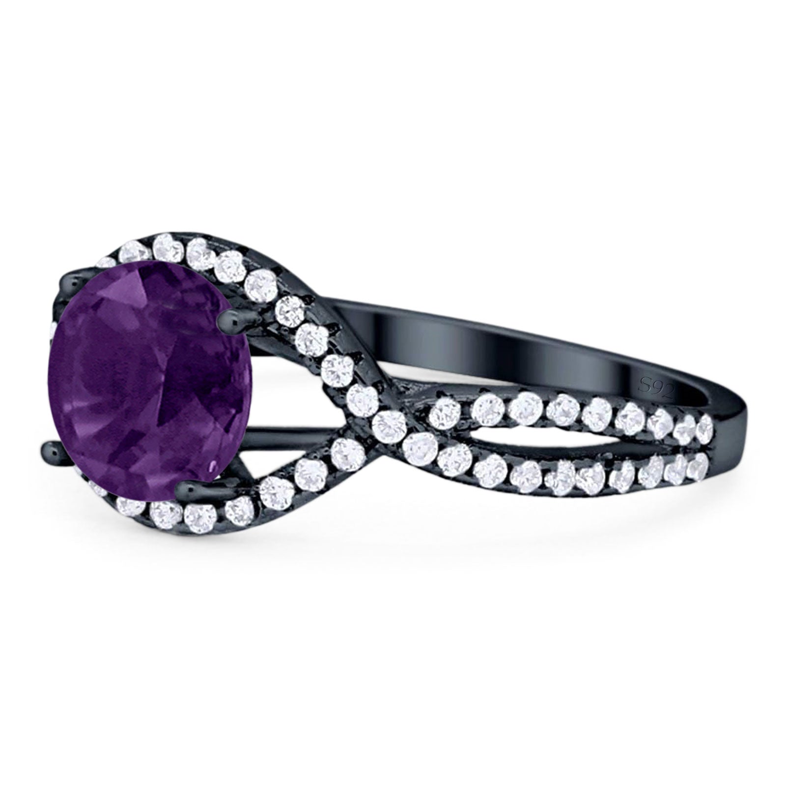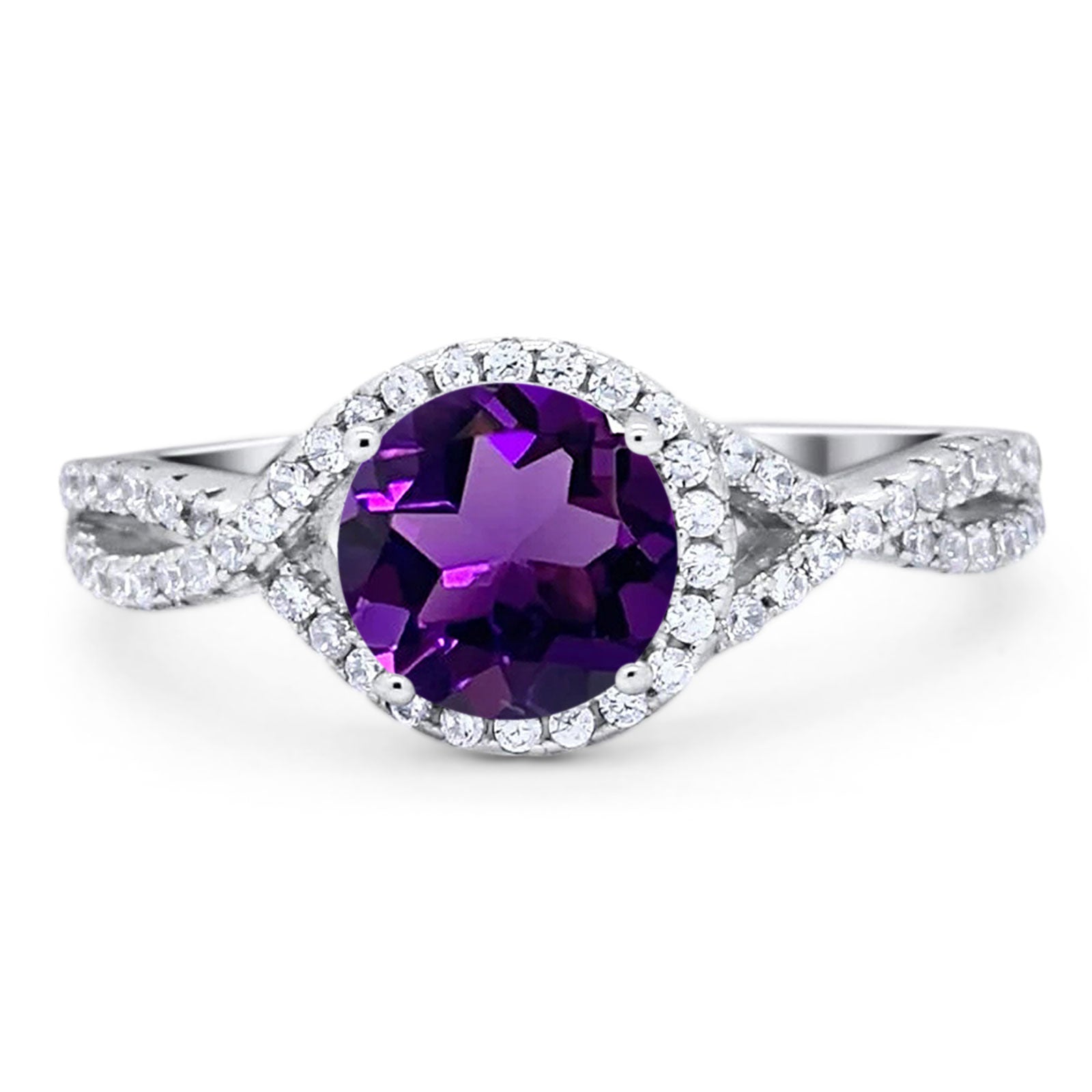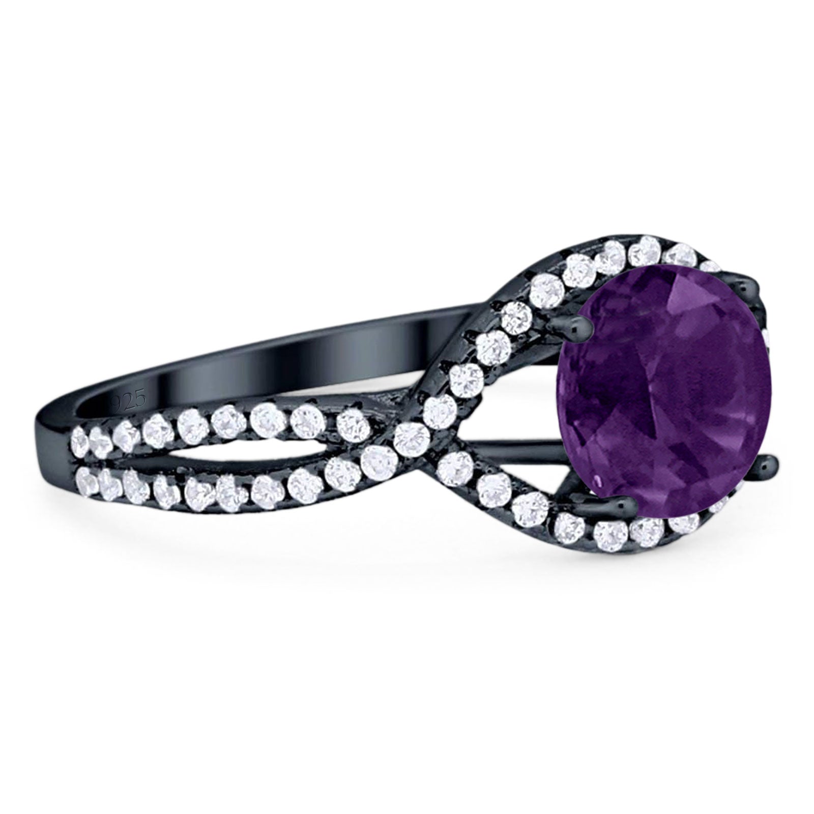 Round Natural Amethyst Infinity Shank Twisted Ring 925 Sterling Silver