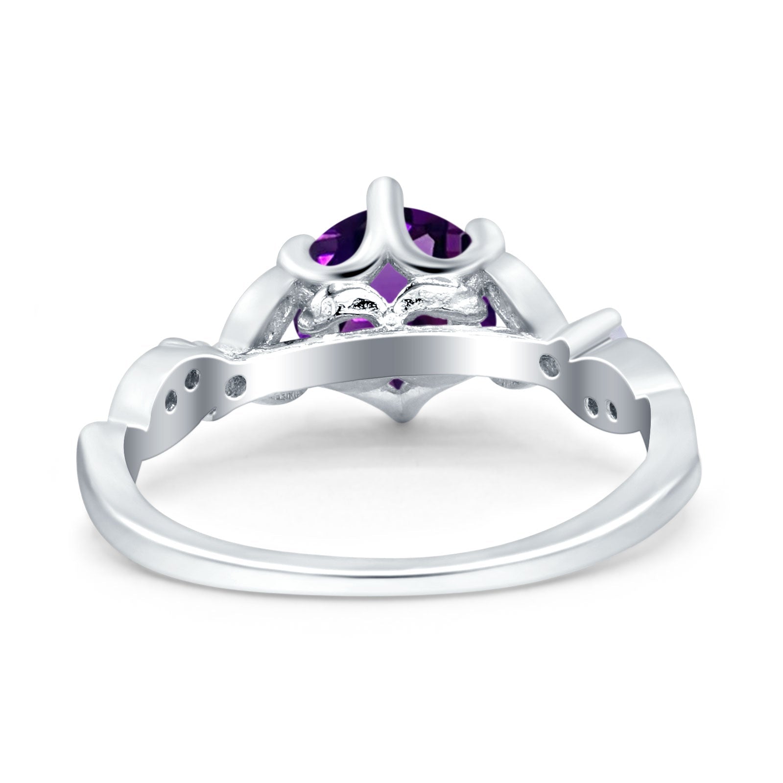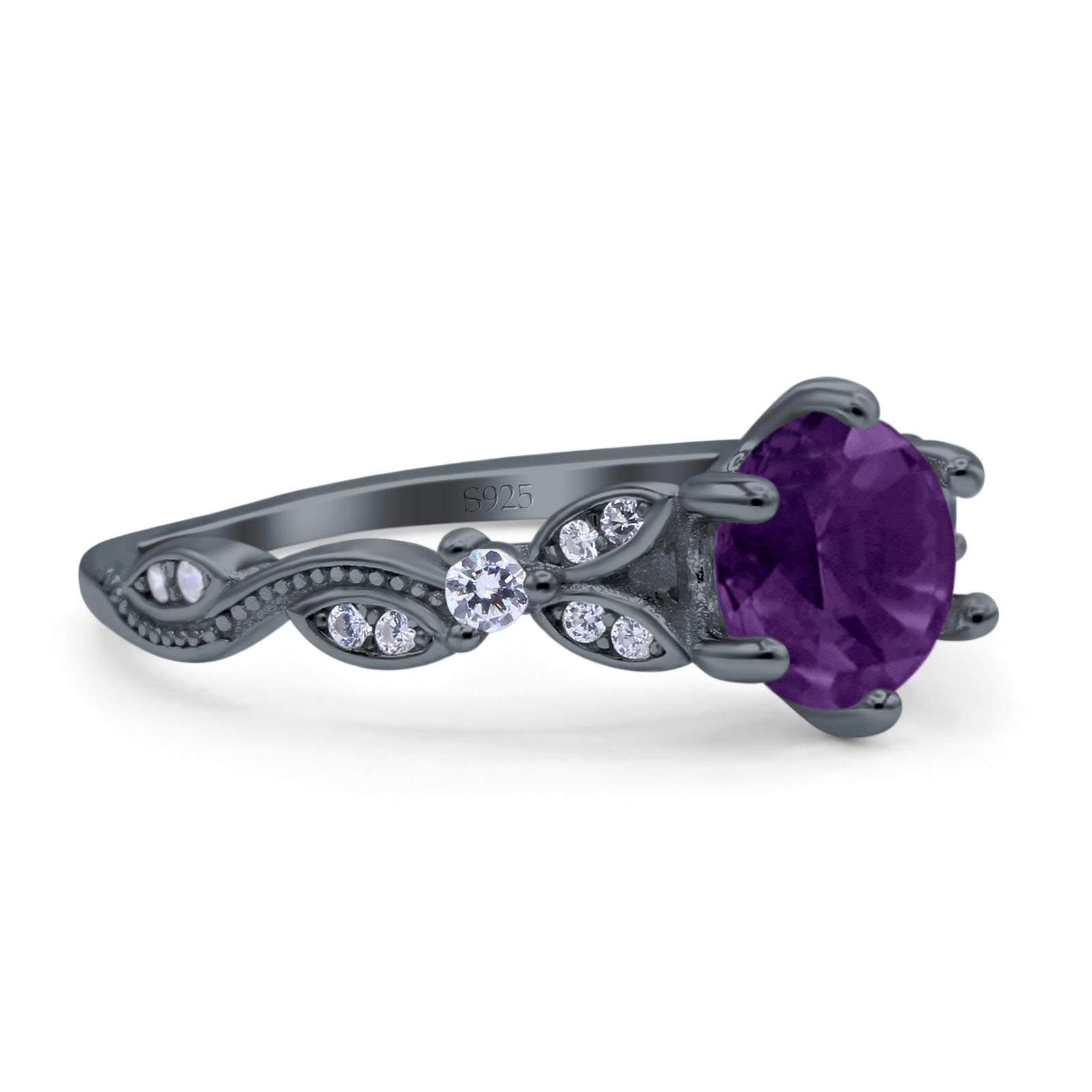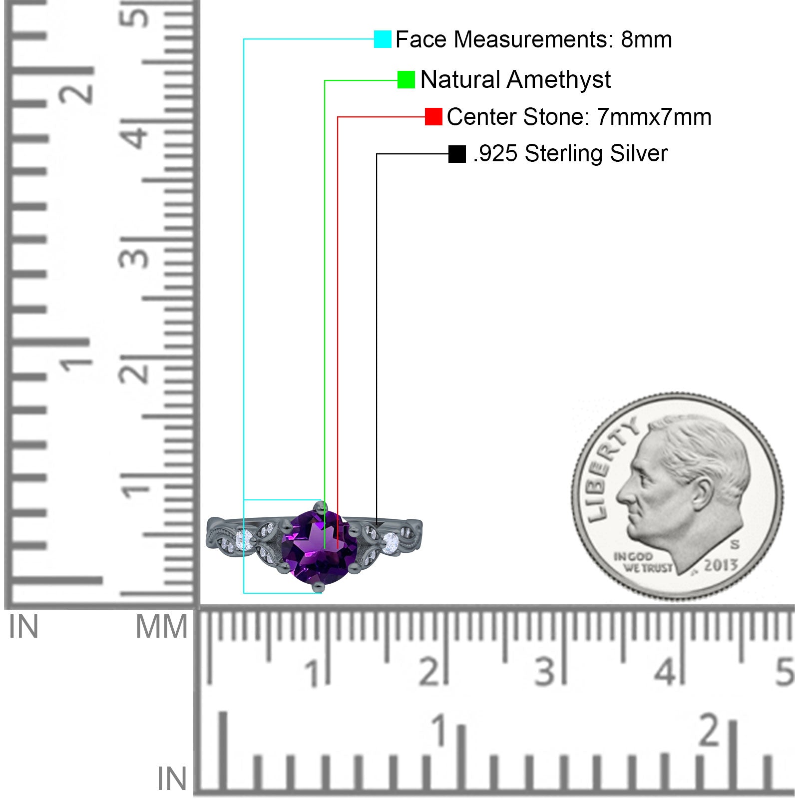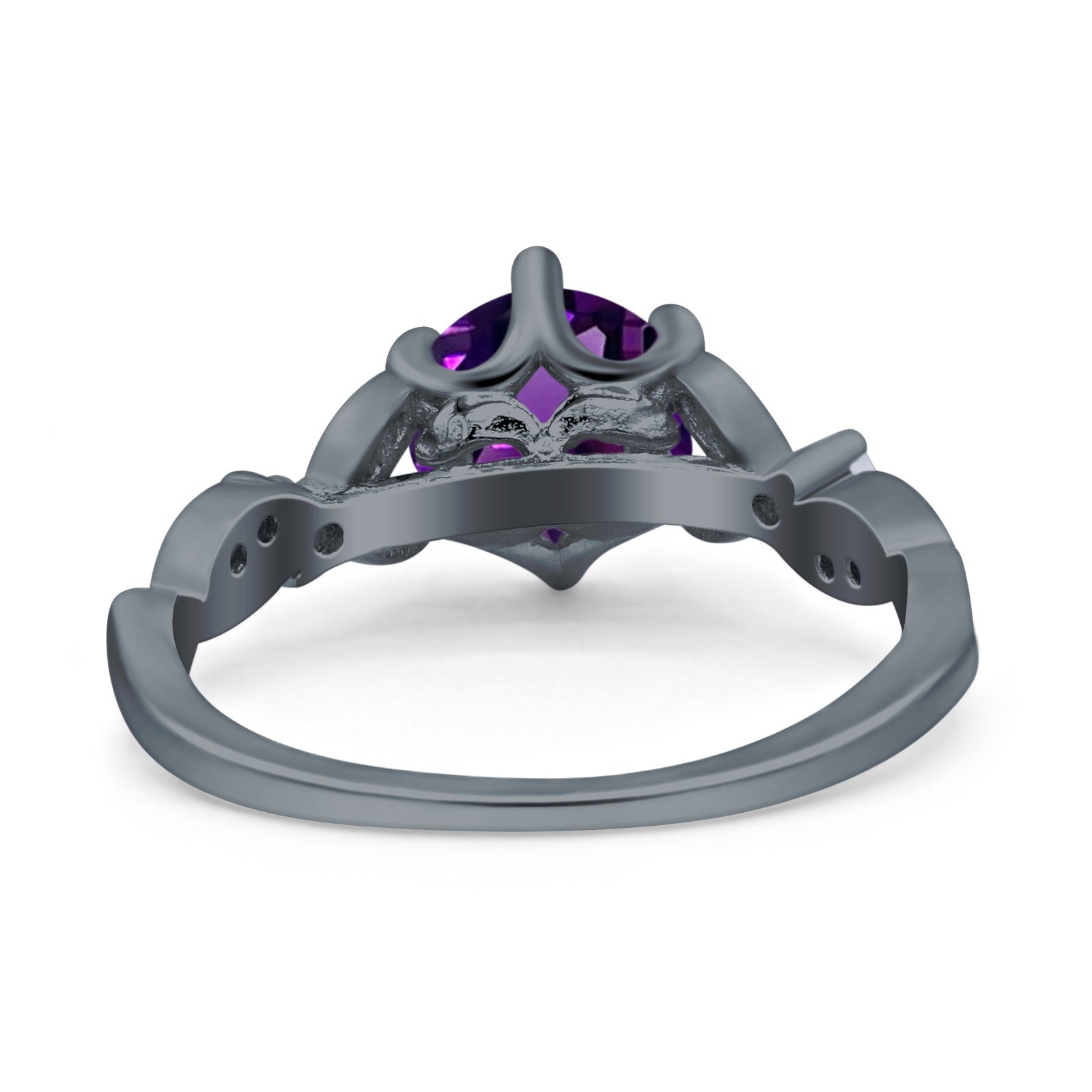 Round Natural Amethyst Leaf Vintage Style Ring 925 Sterling Silver