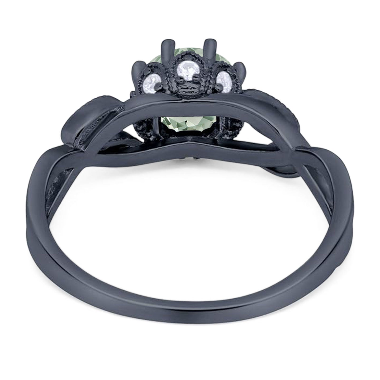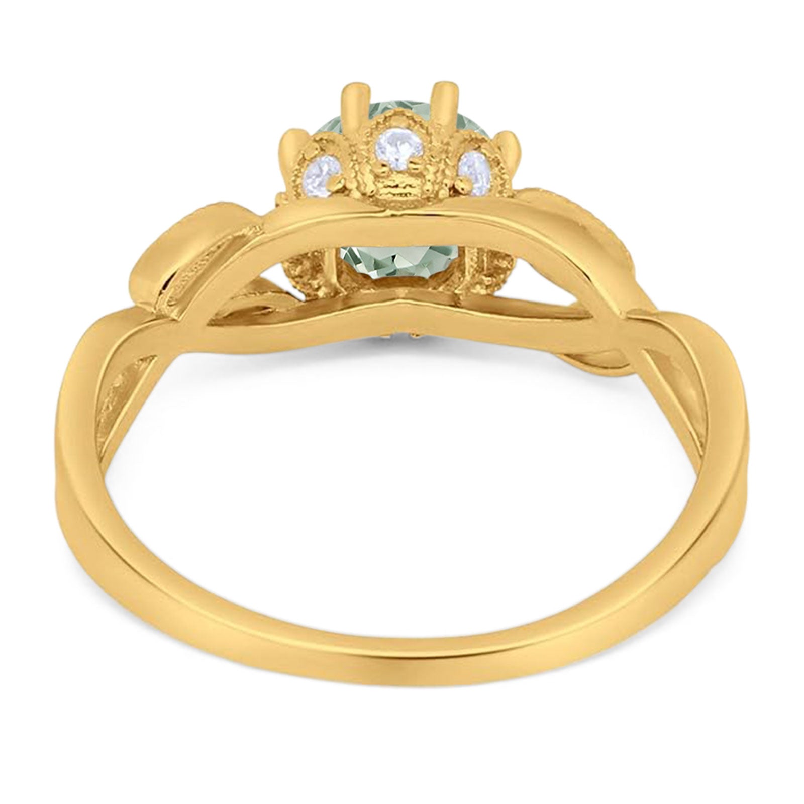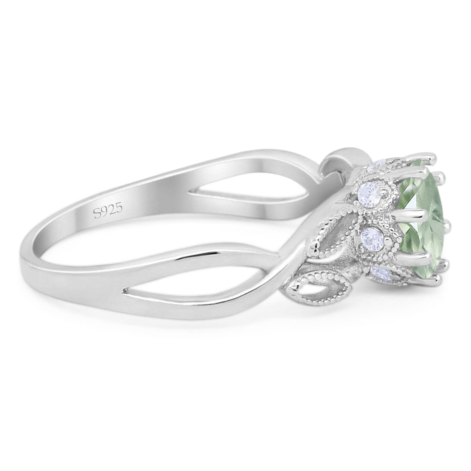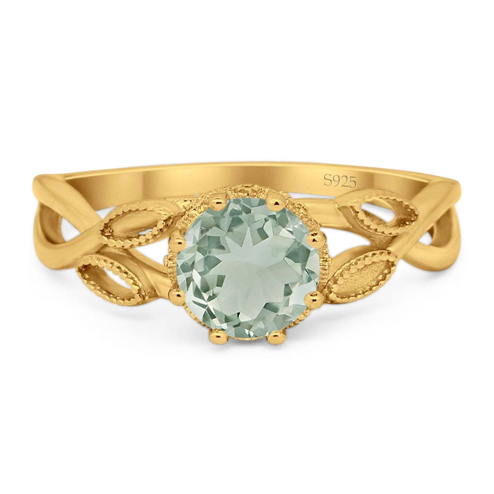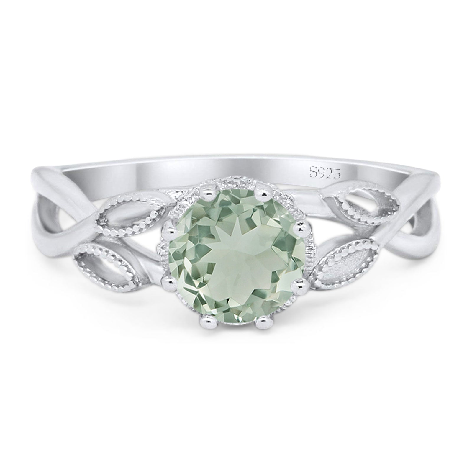 Round Natural Green Amethyst Prasiolite Twisted Beaded Ring 925 Sterling Silver