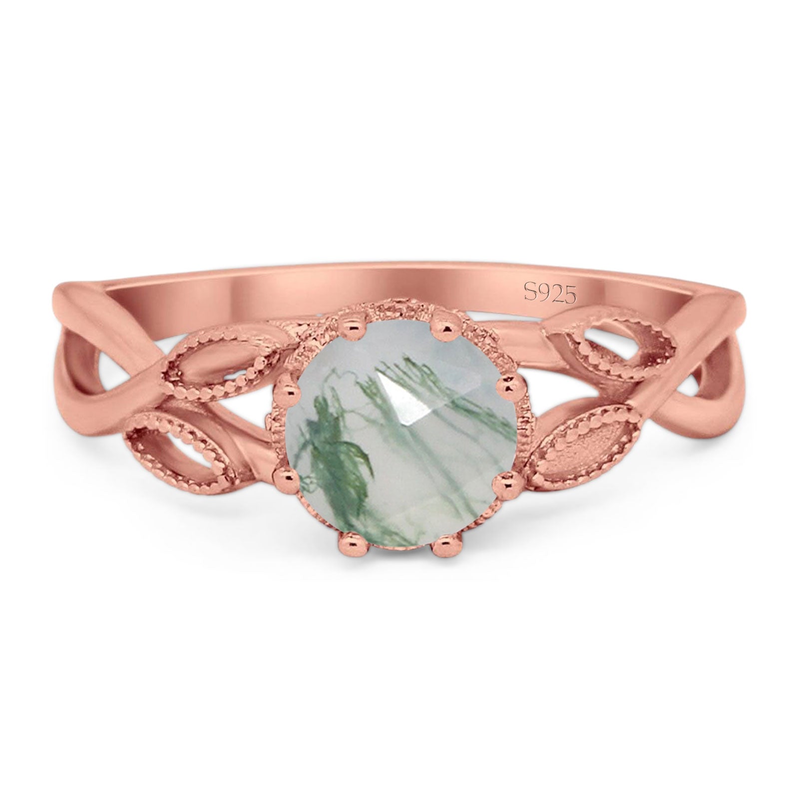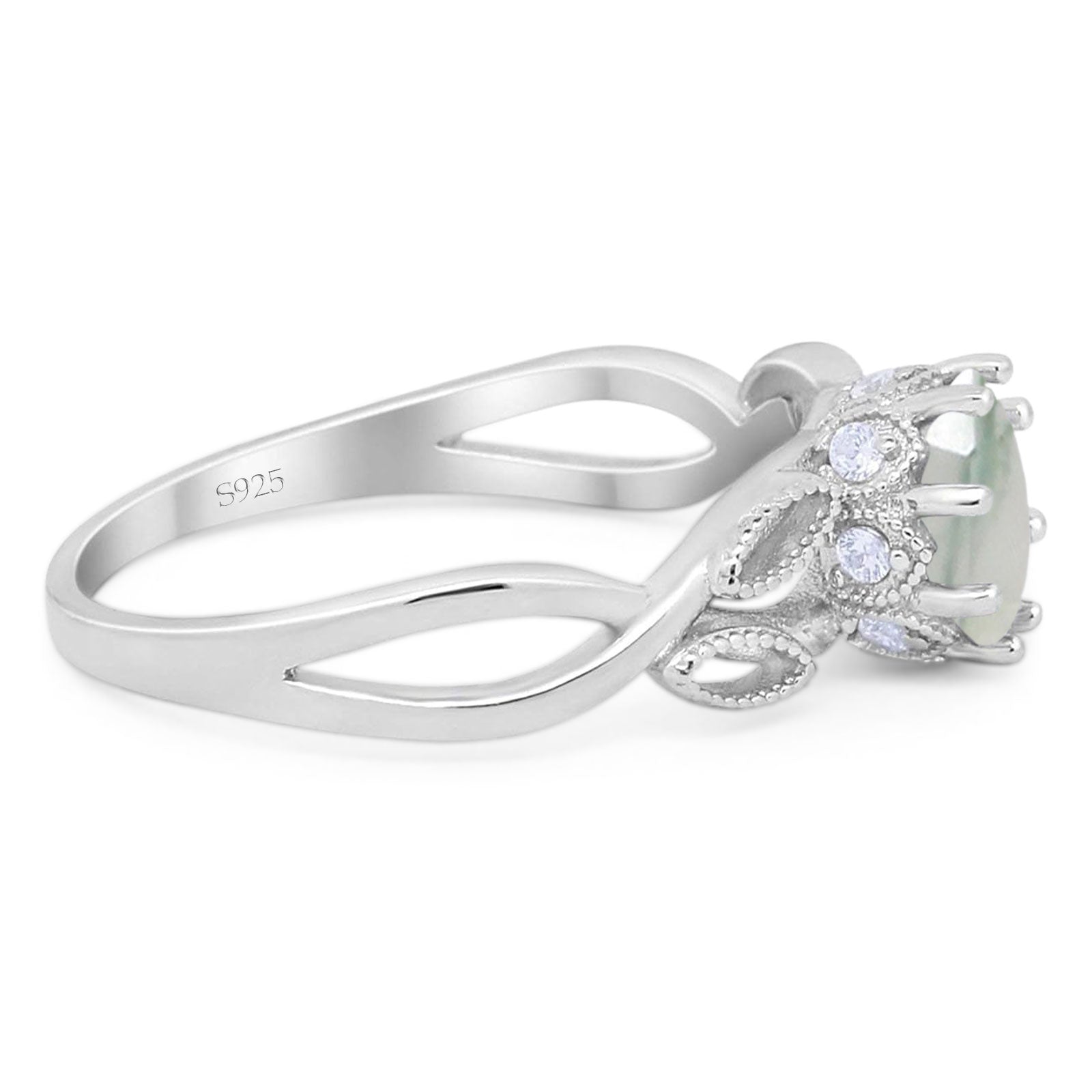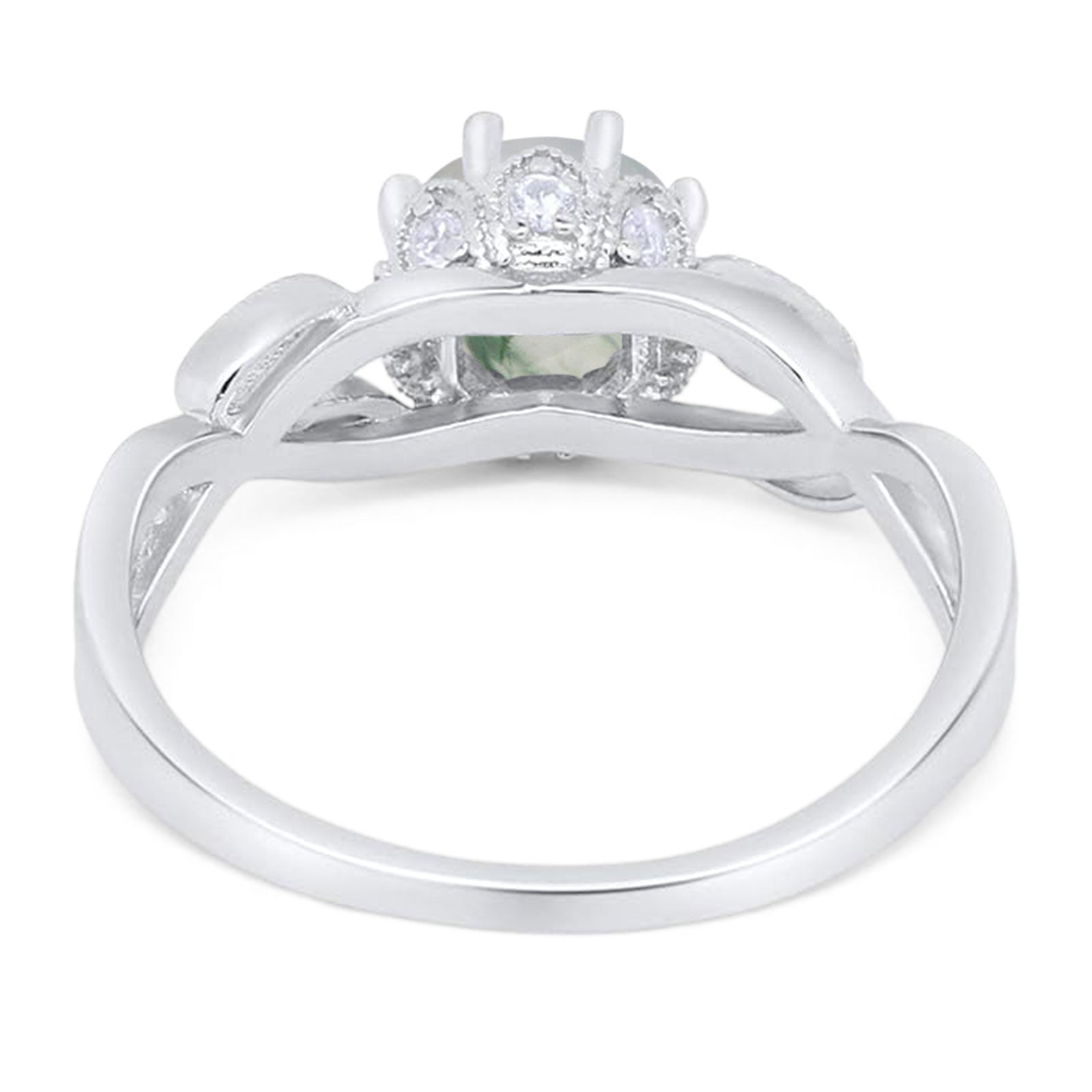 Round Natural Green Moss Agate Twisted Beaded Ring 925 Sterling Silver
