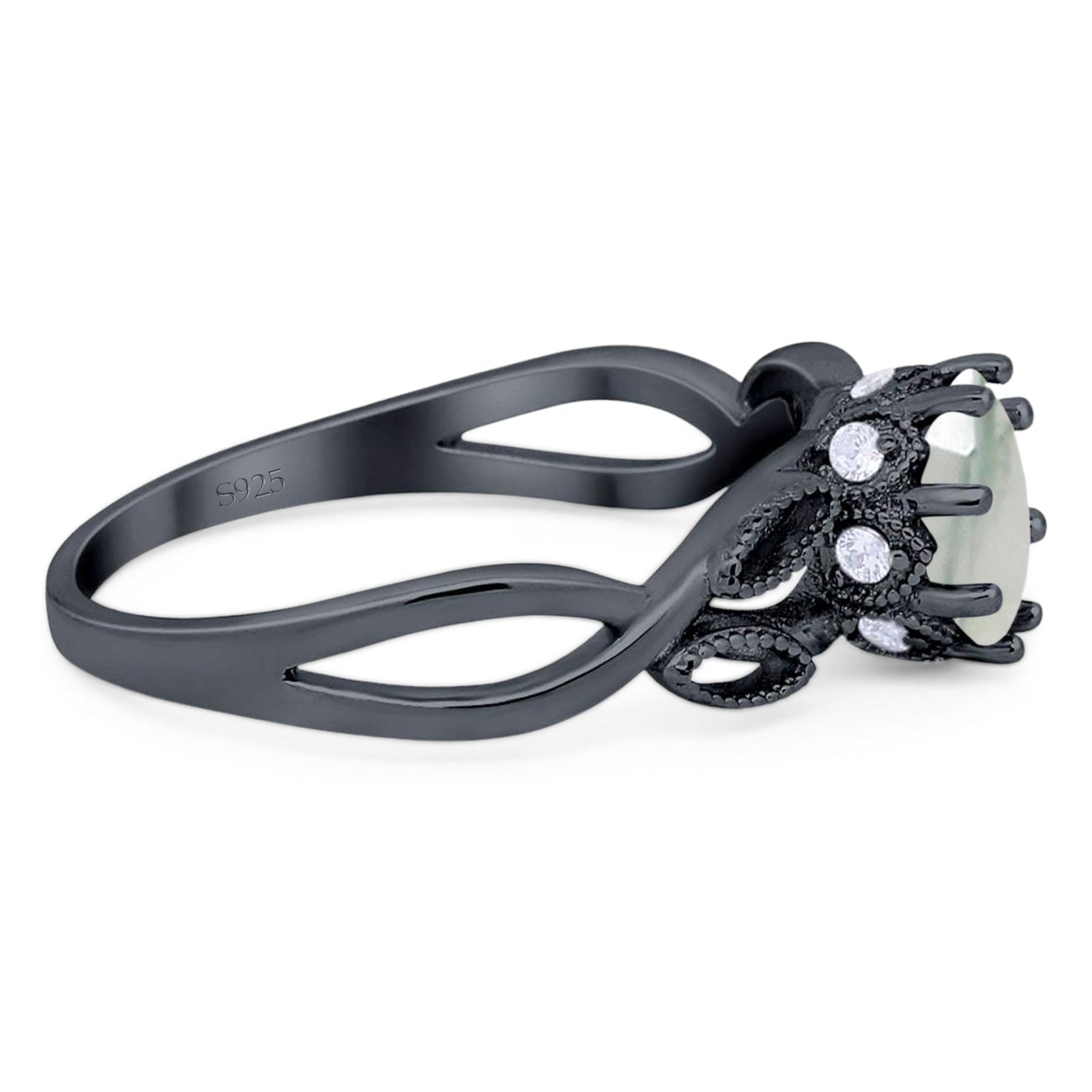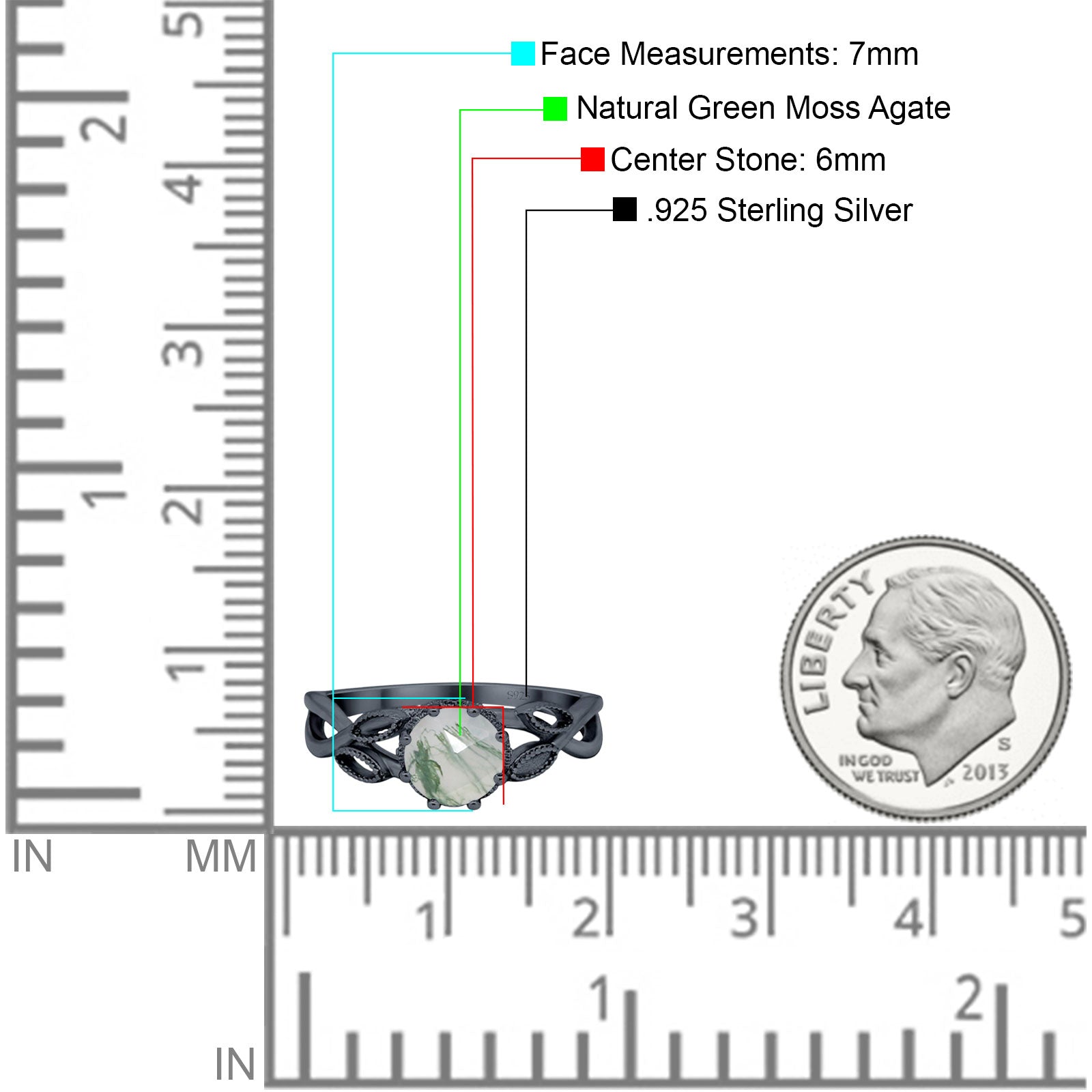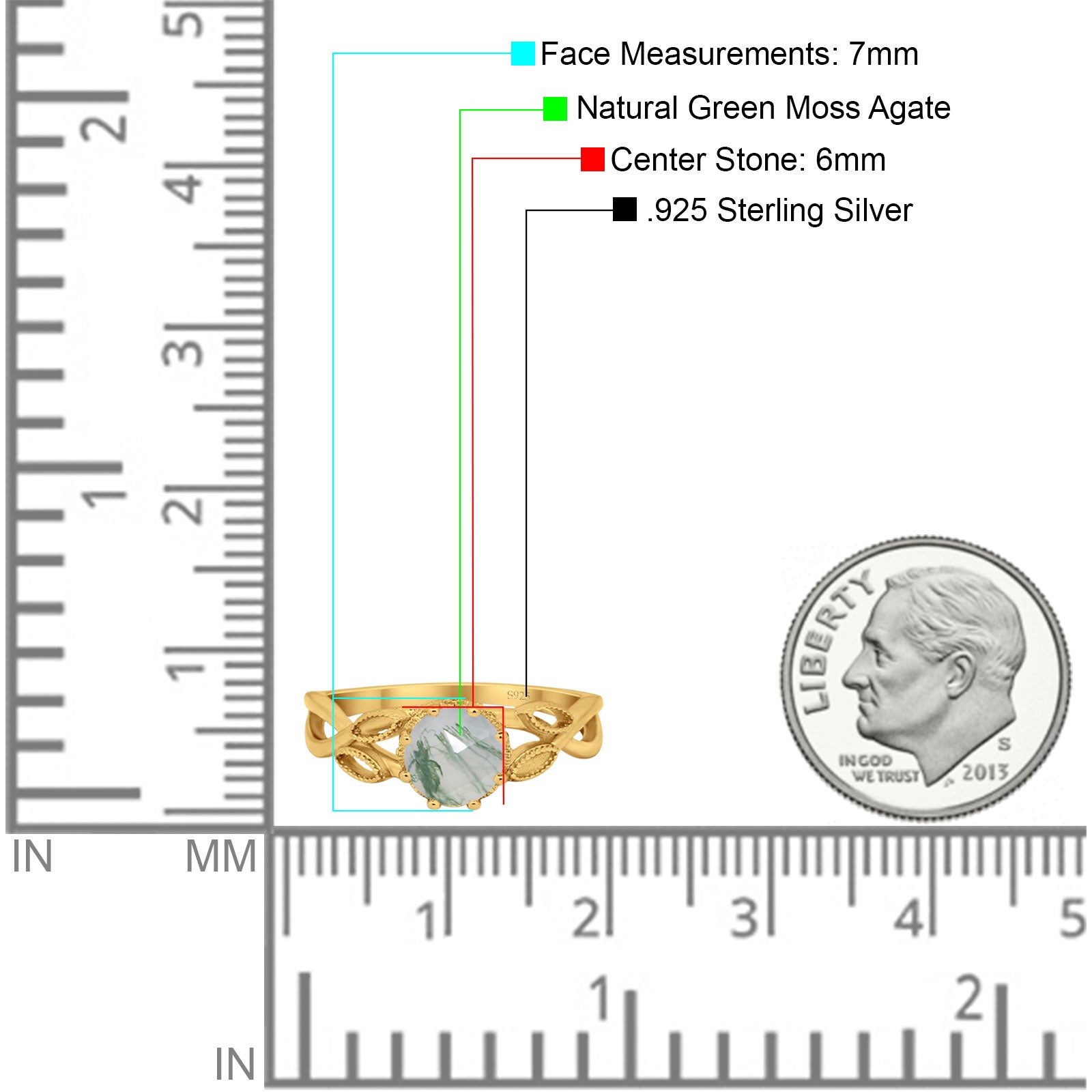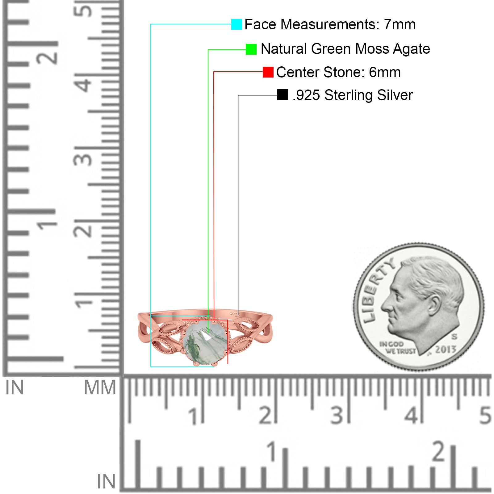 Round Natural Green Moss Agate Twisted Beaded Ring 925 Sterling Silver