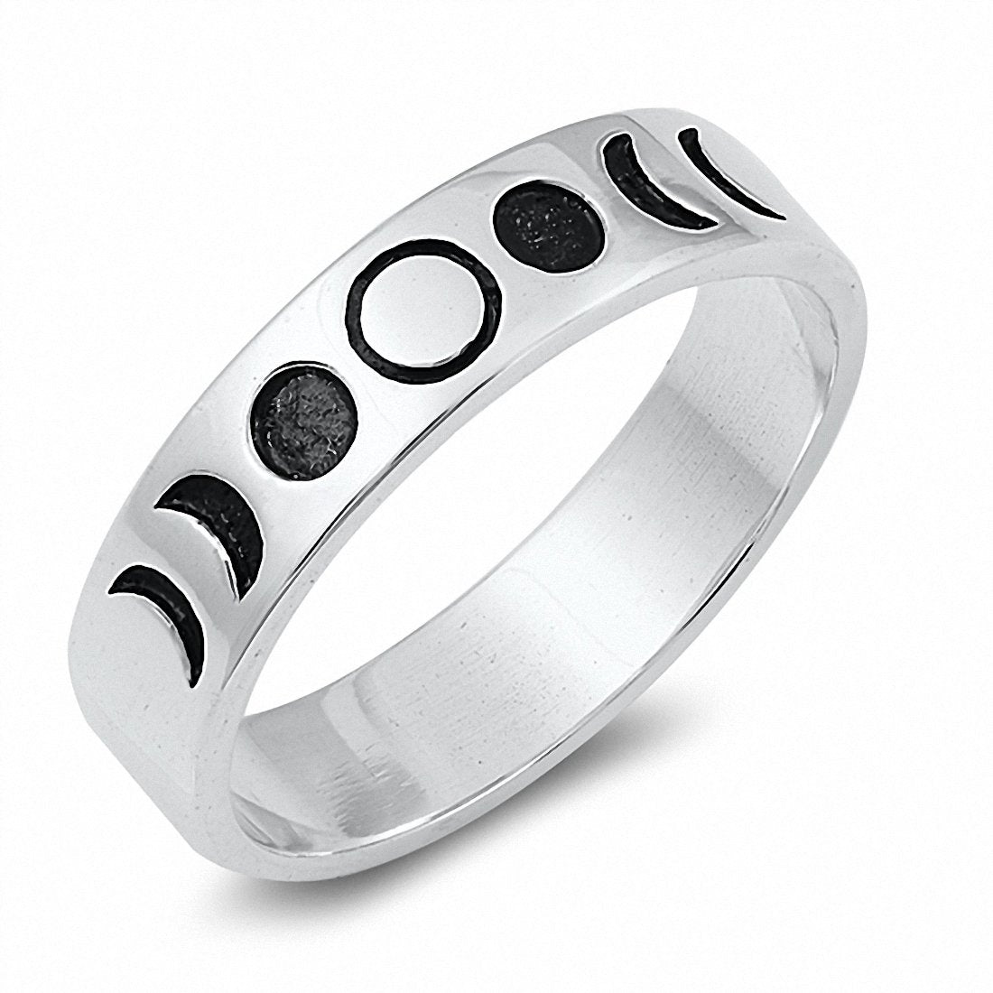 5mm Moon Phases Band Ring 925 Sterling Silver Choose Color