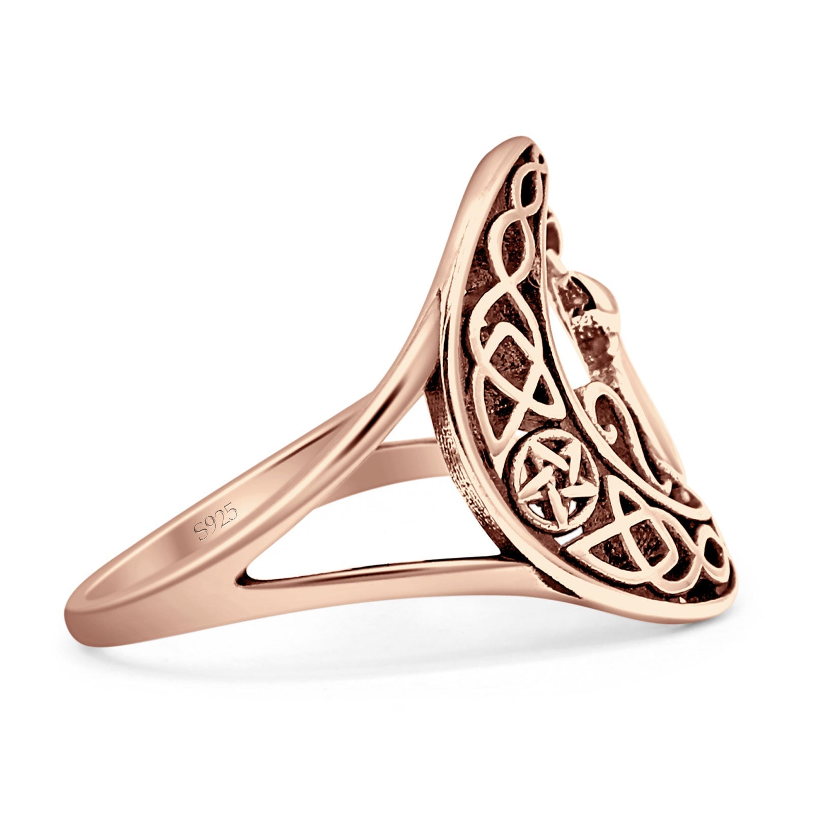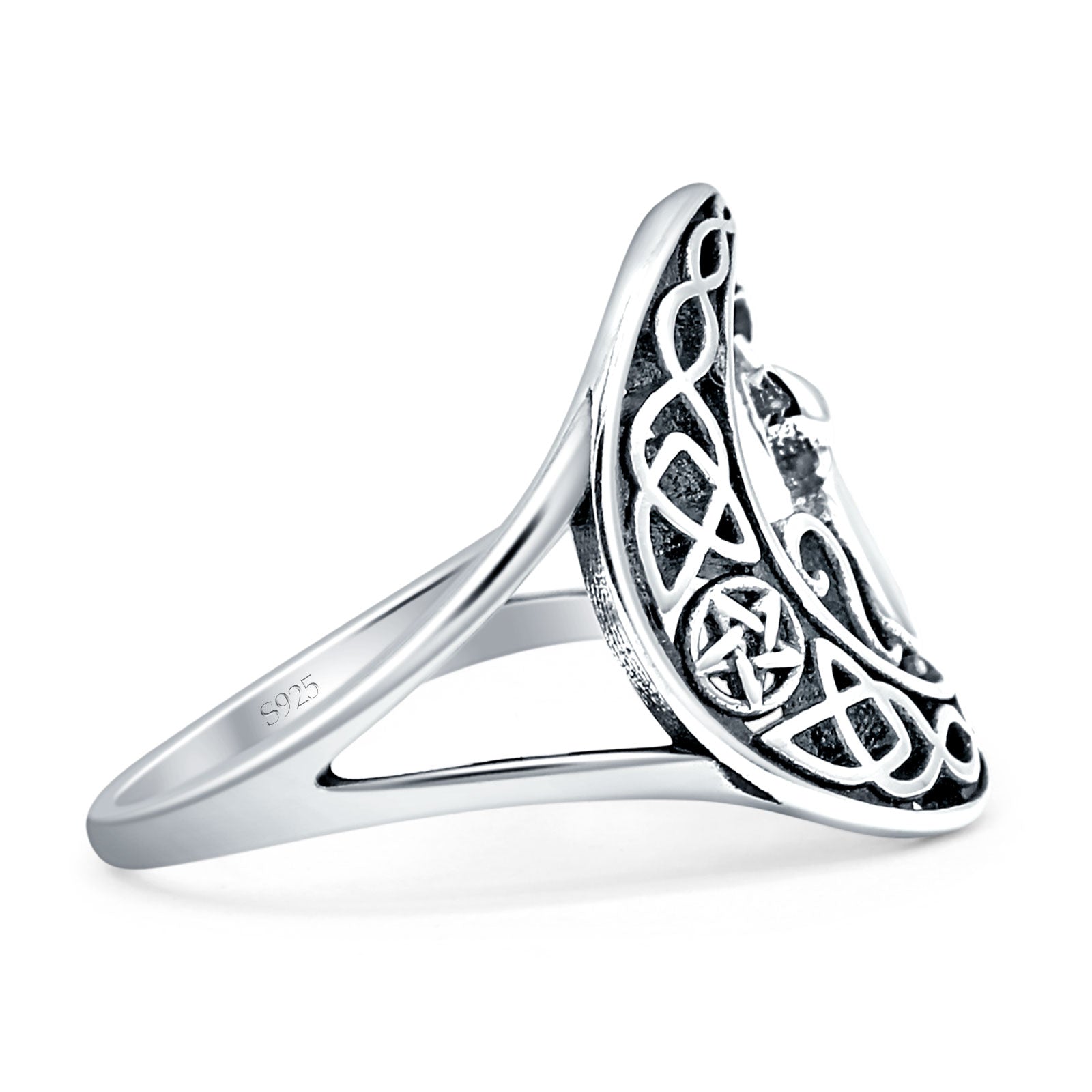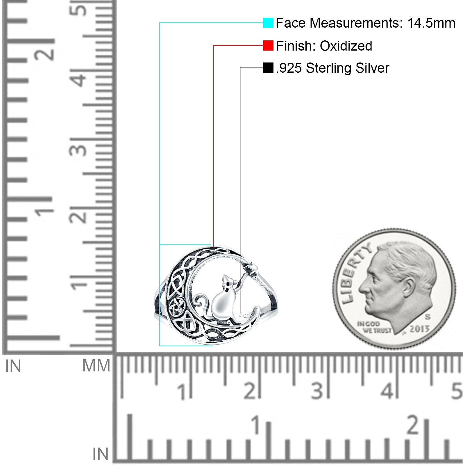 Split Shank 14.5mm Cat On Moon Ring Oxidized 925 Sterling Silver
