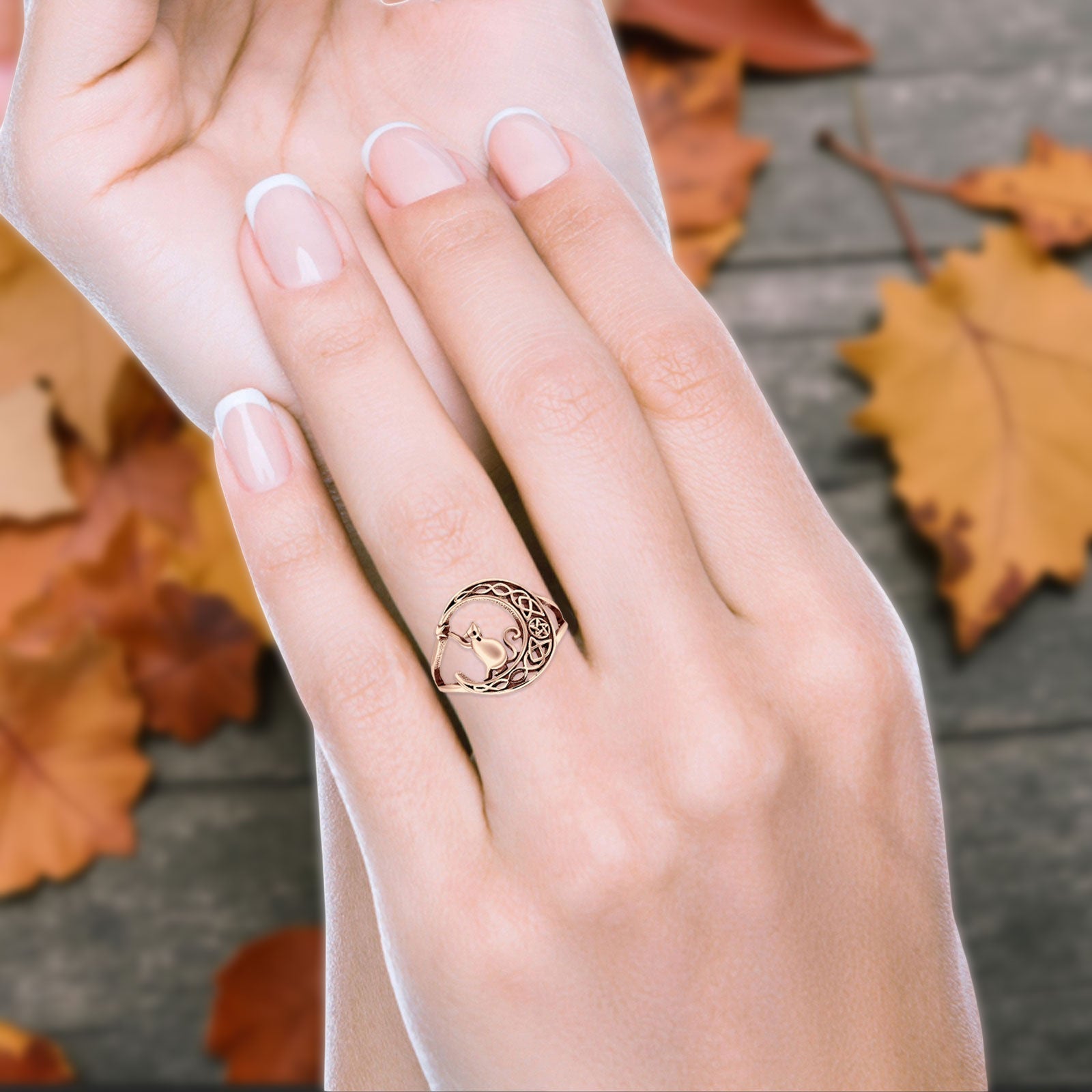 Design: Split Shank Cat On Moon Oxidized Ring