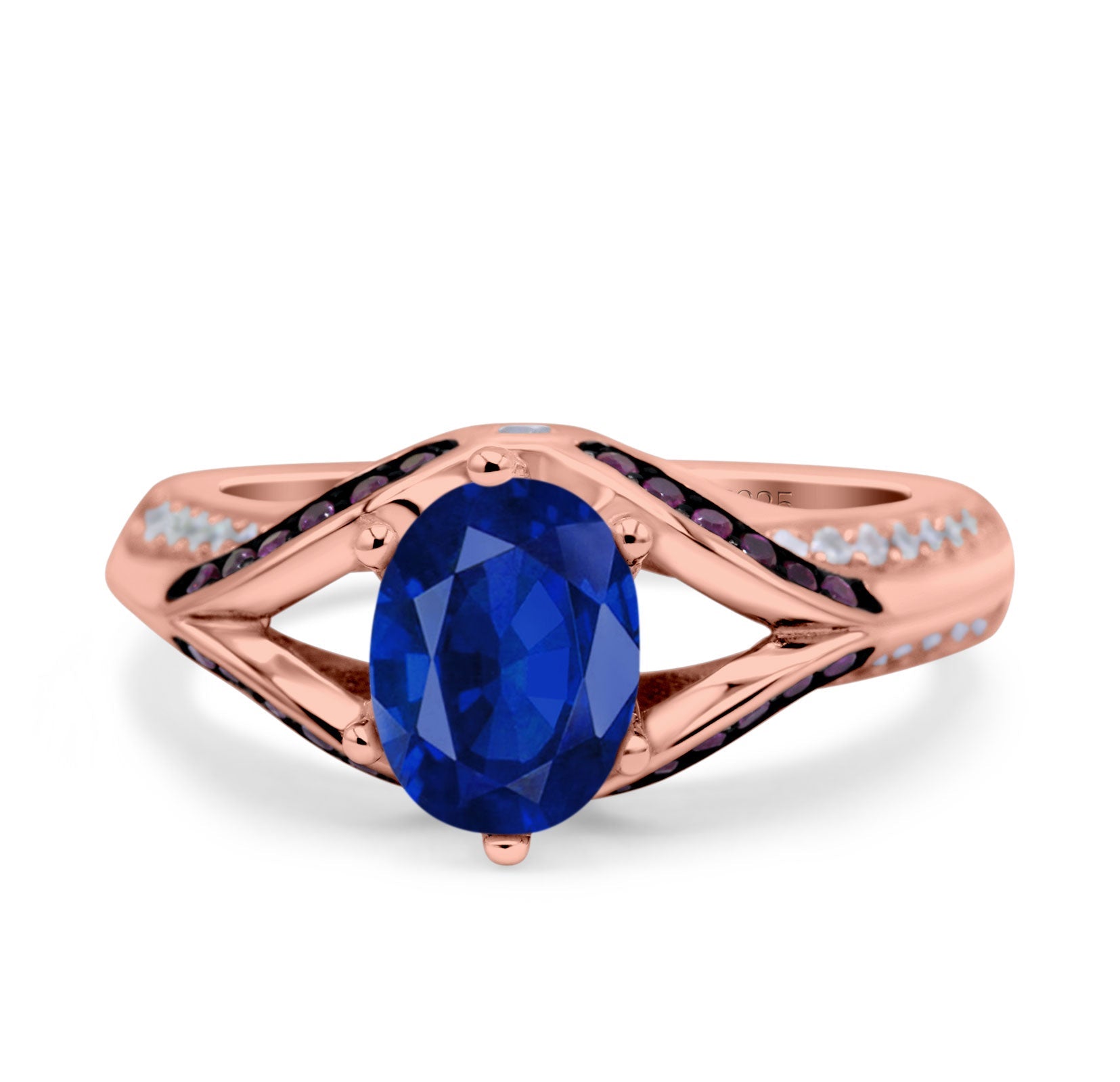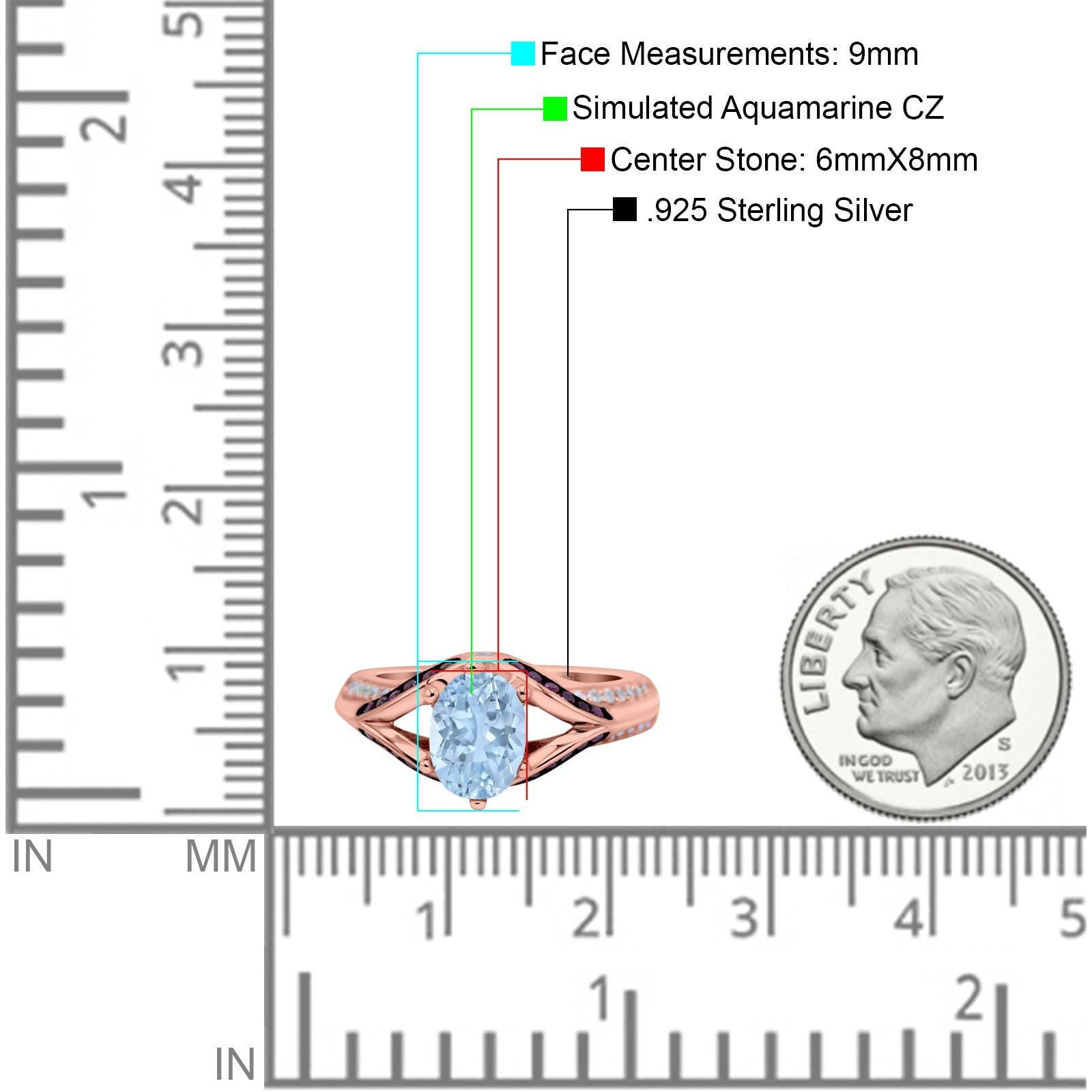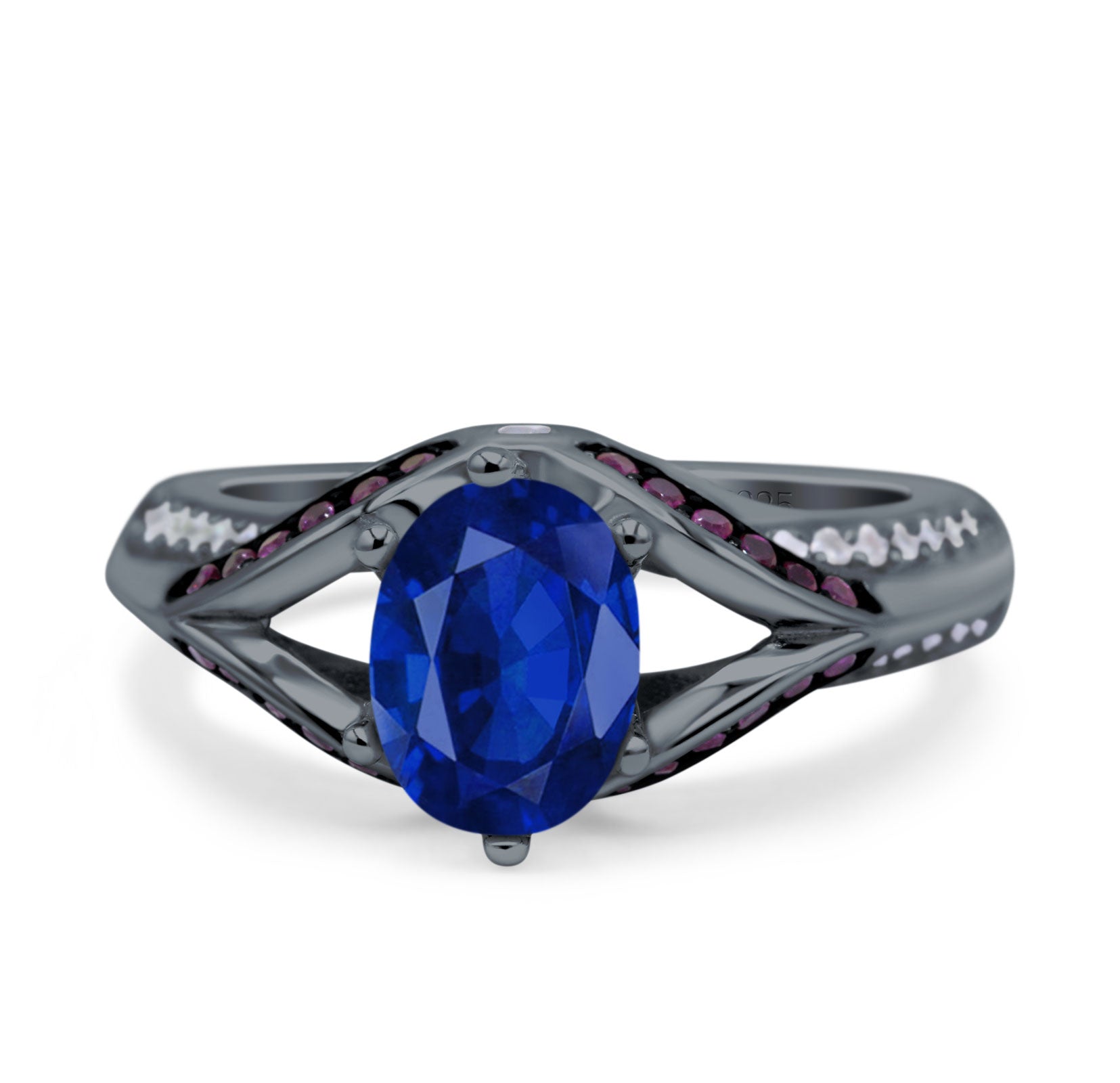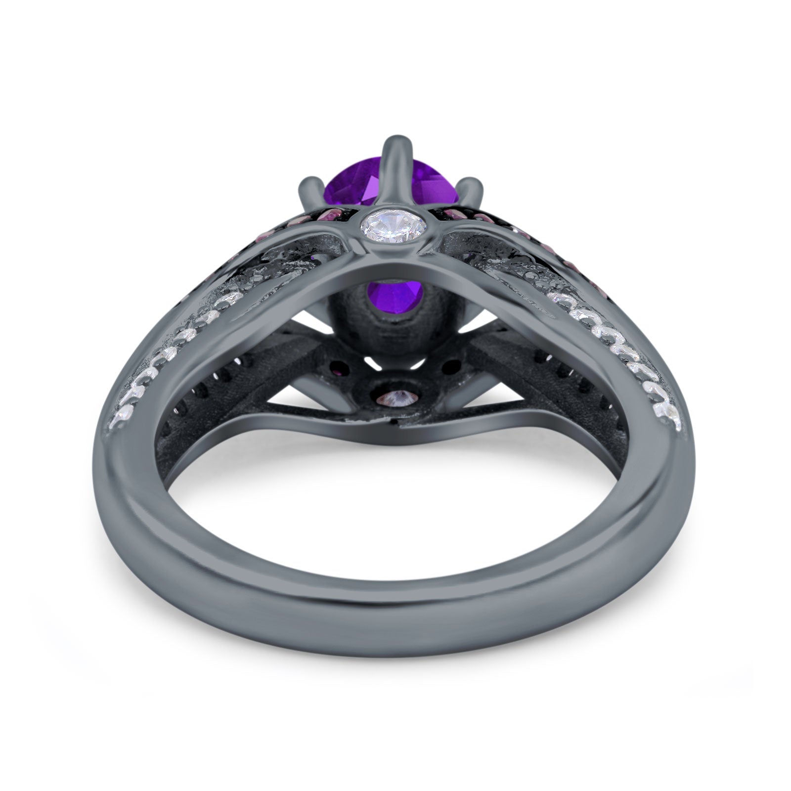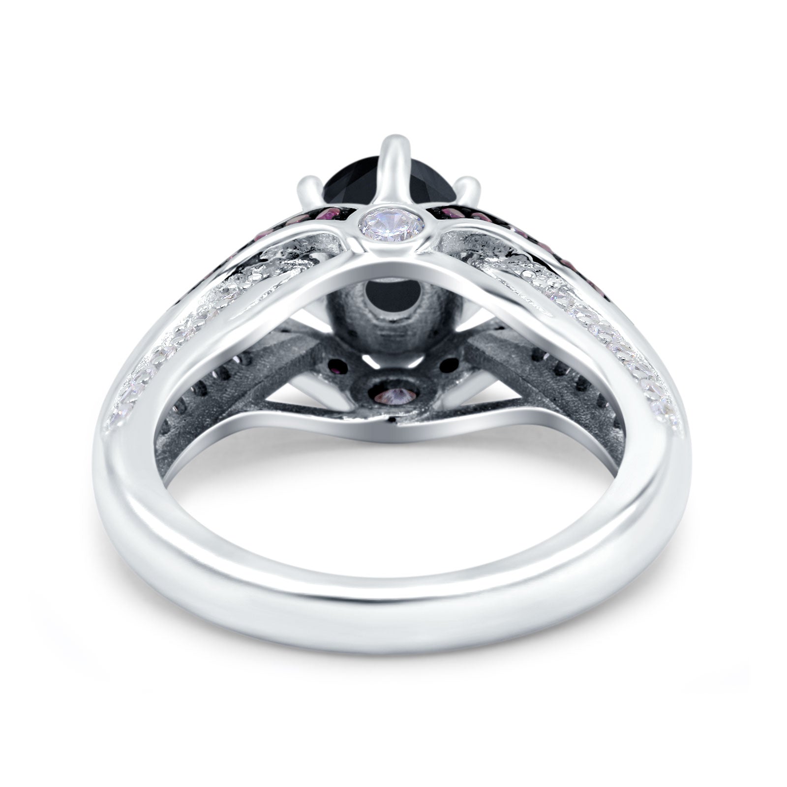 Split Shank Halo Oval Wedding Engagement Ring Black Round Simulated Cubic Zirconia 925 Sterling Silver