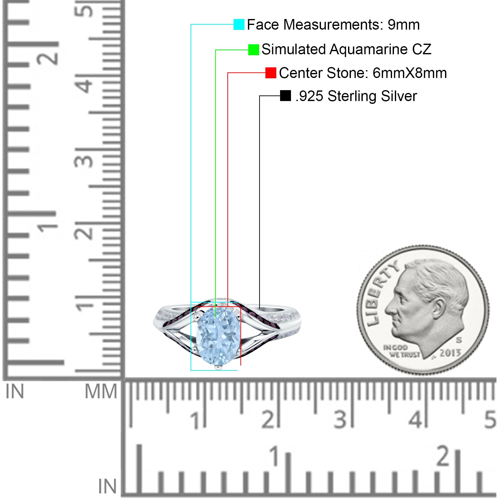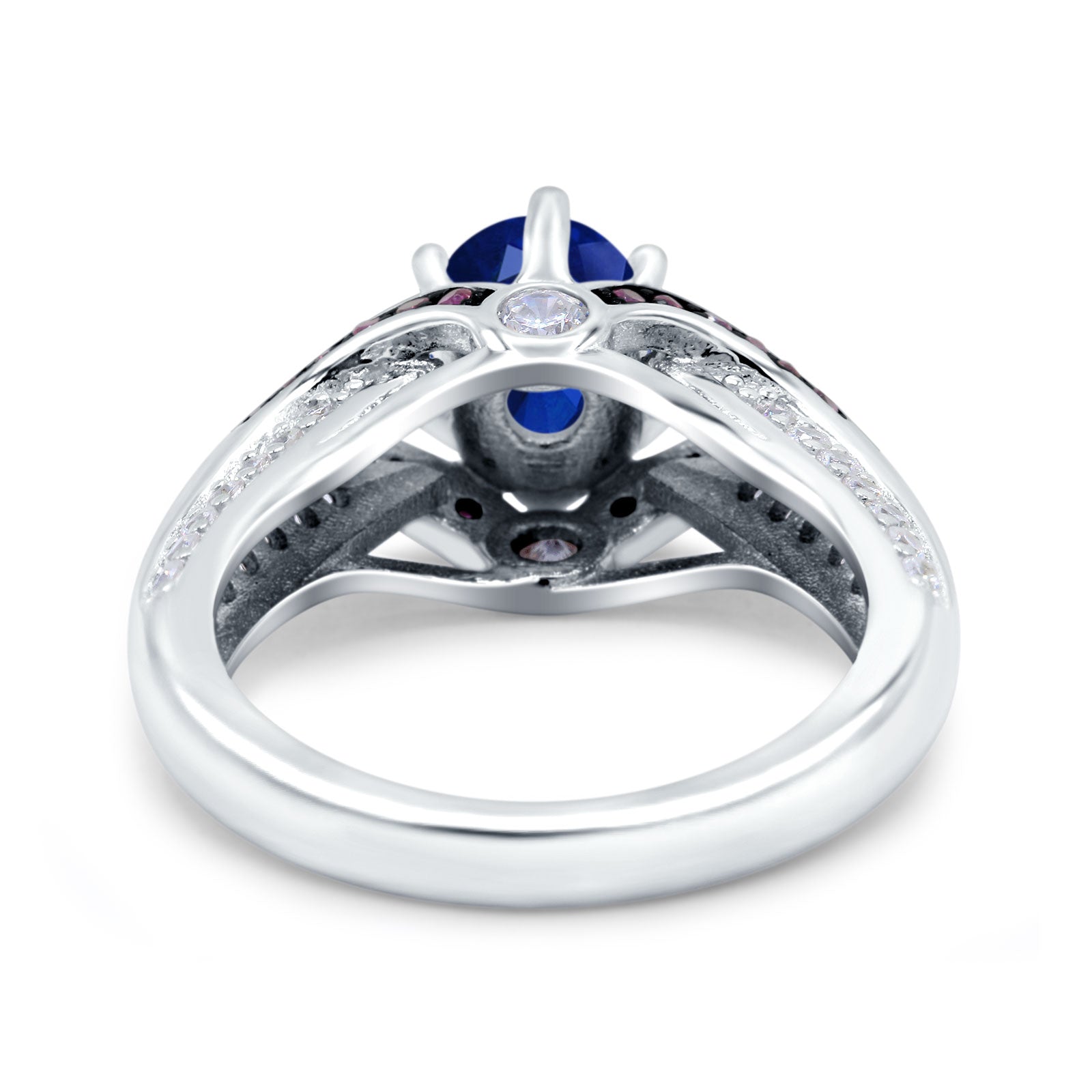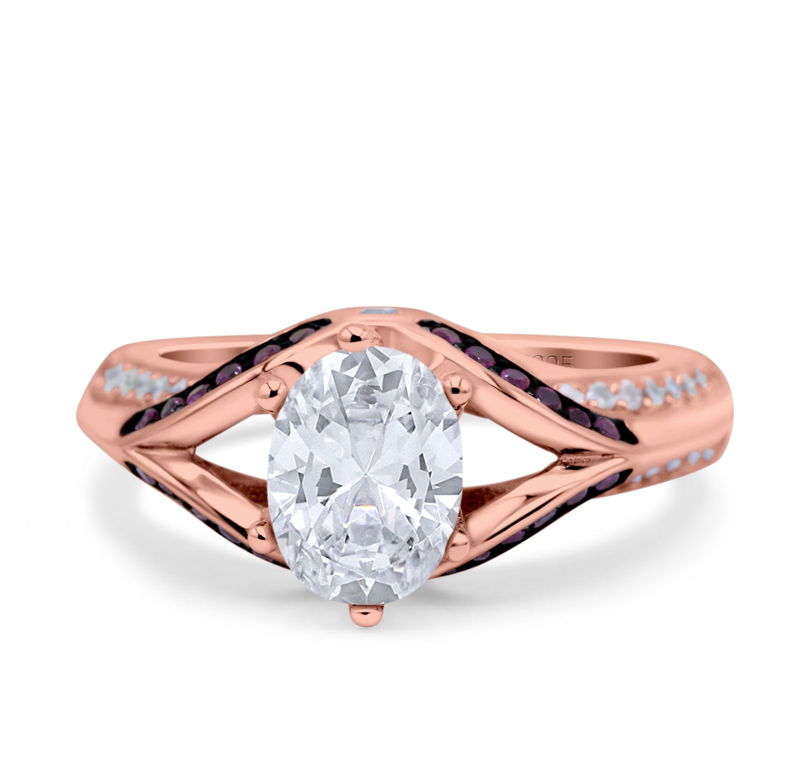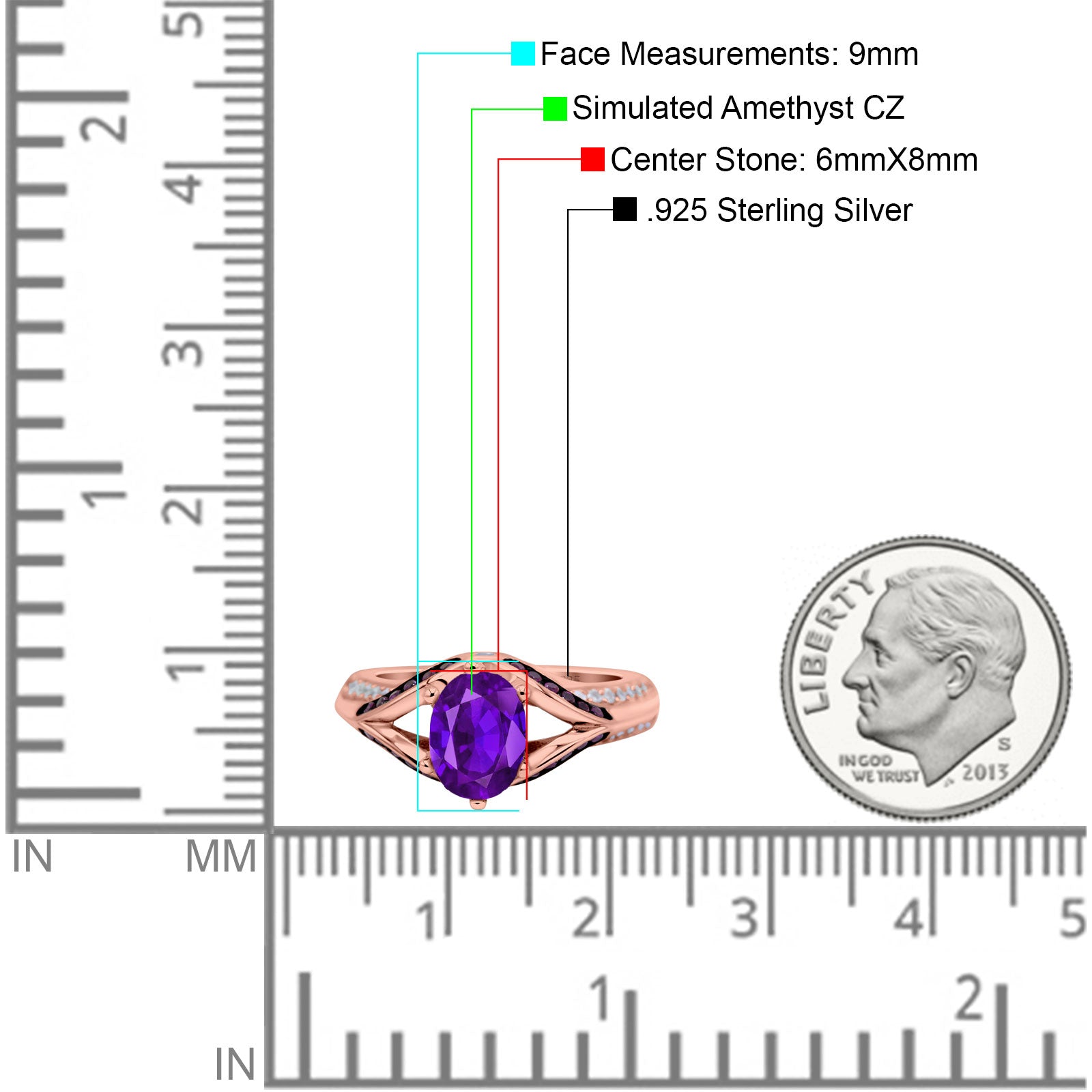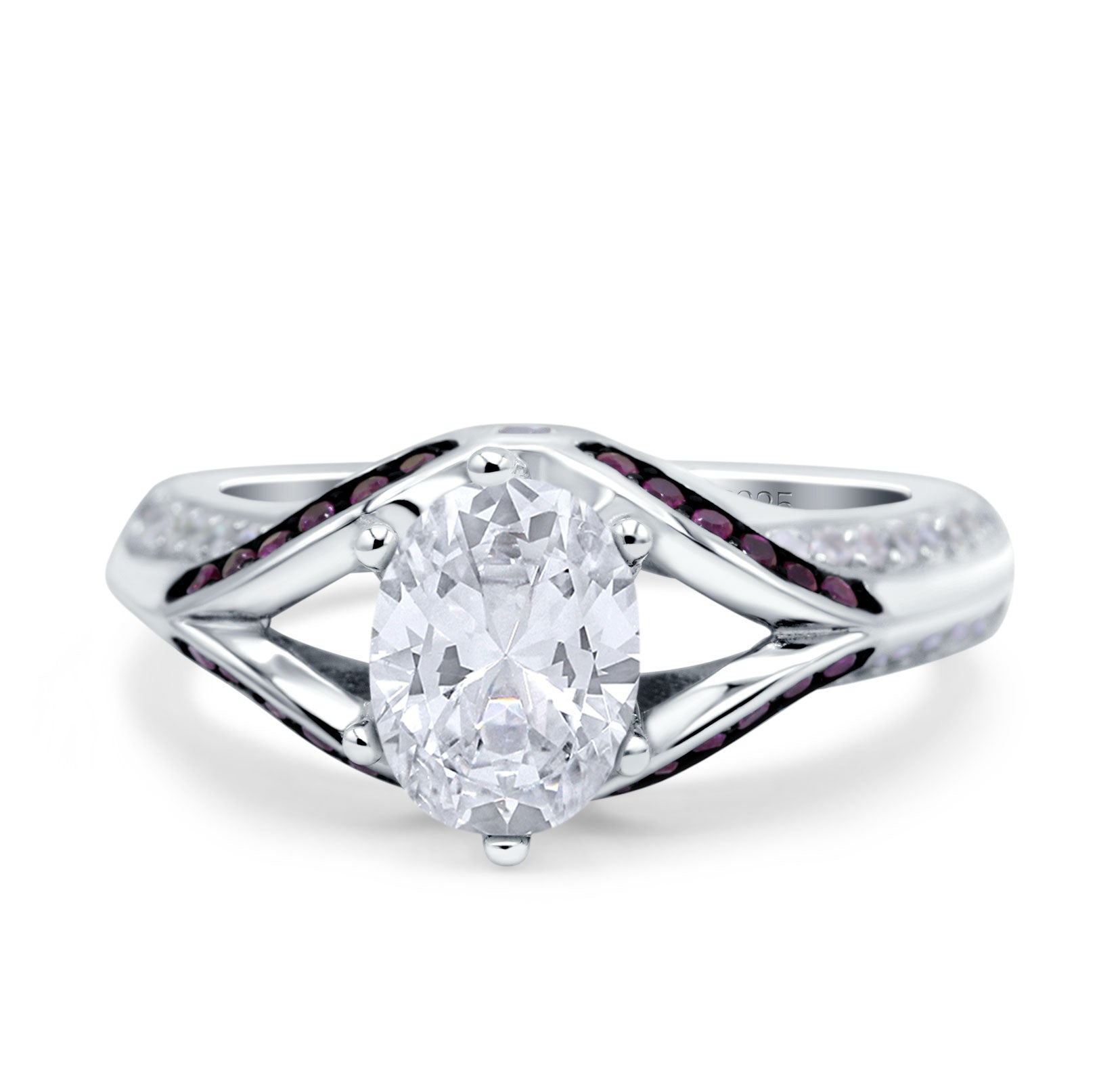 Split Shank Halo Oval Wedding Engagement Ring Black Round Simulated Cubic Zirconia 925 Sterling Silver
