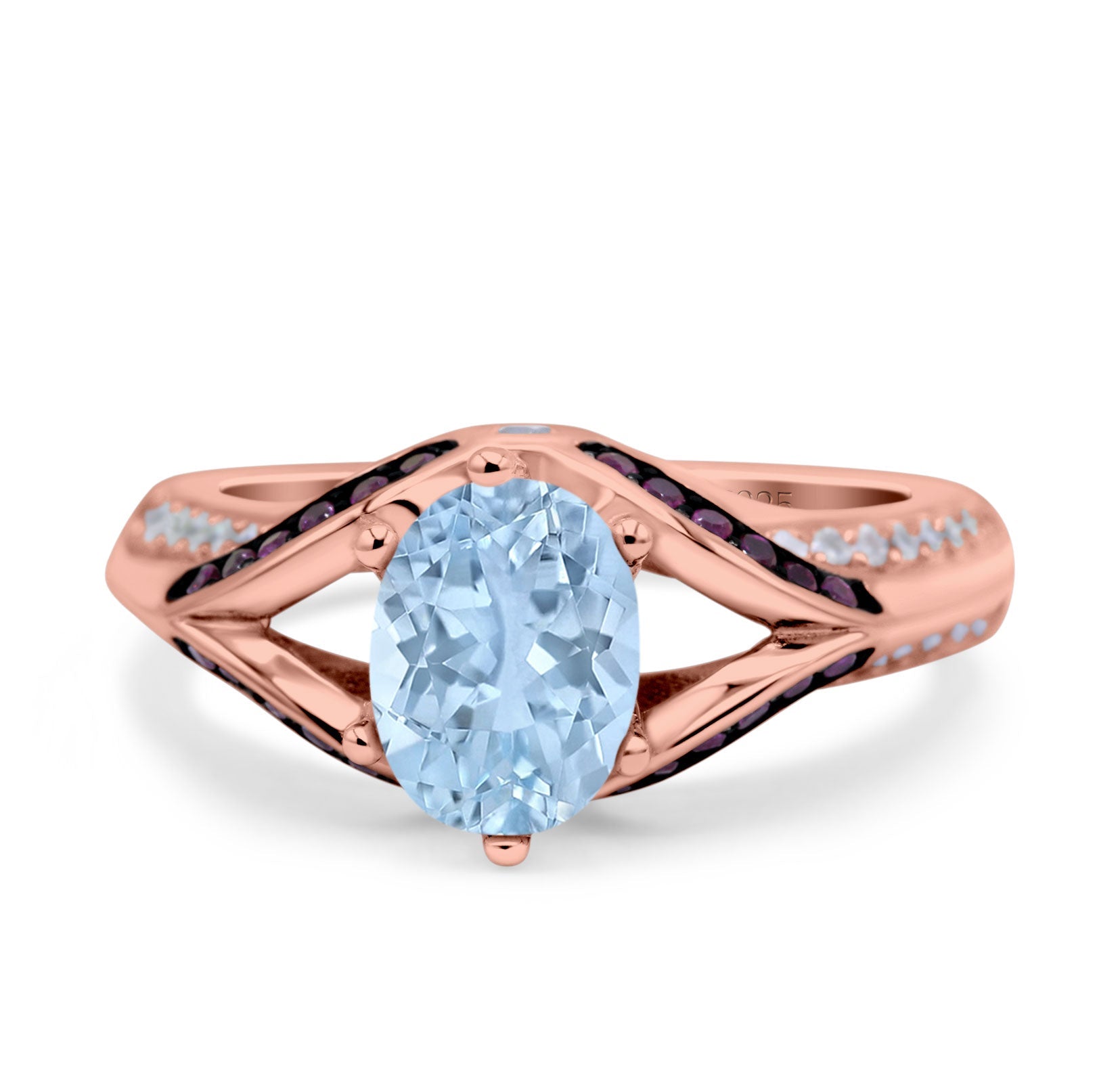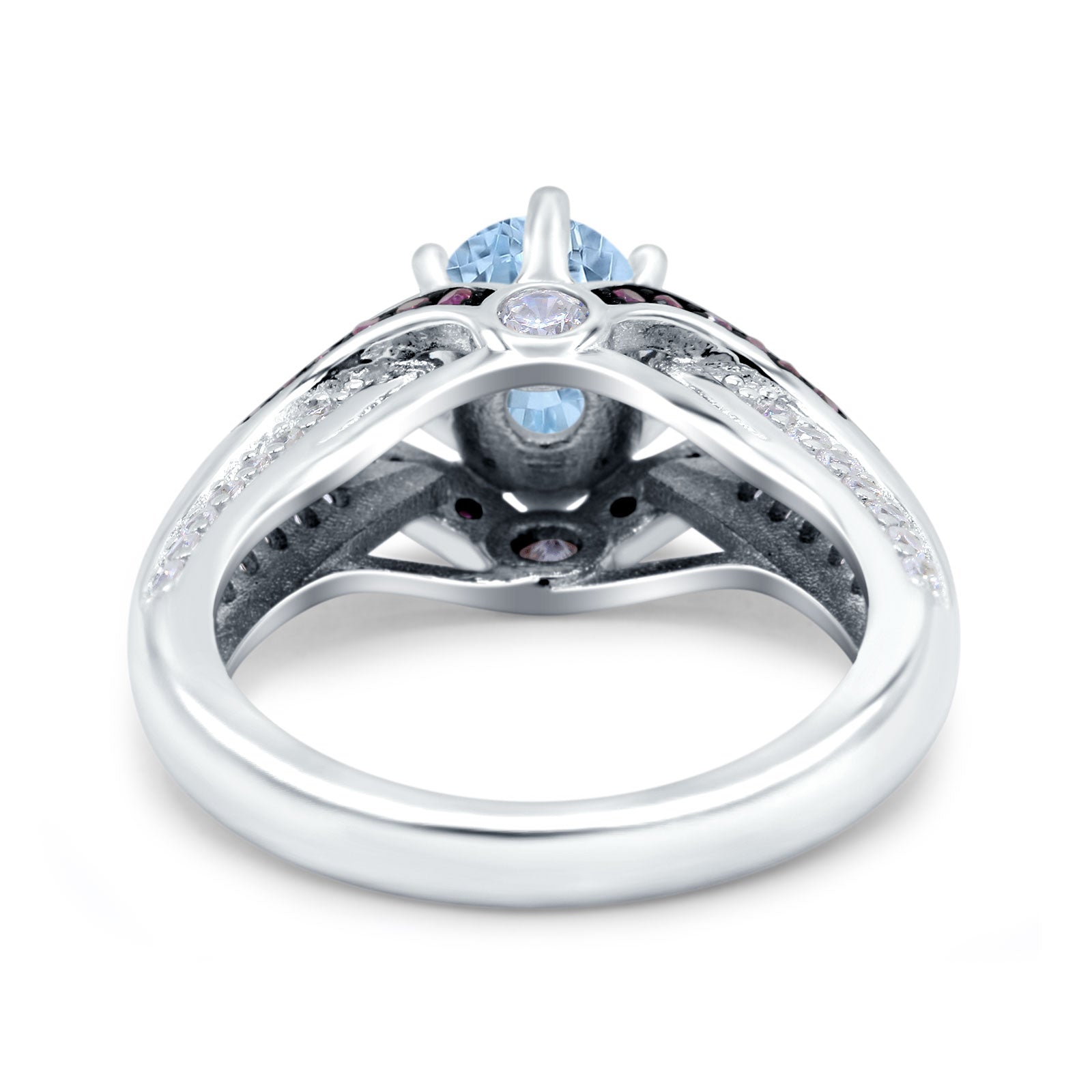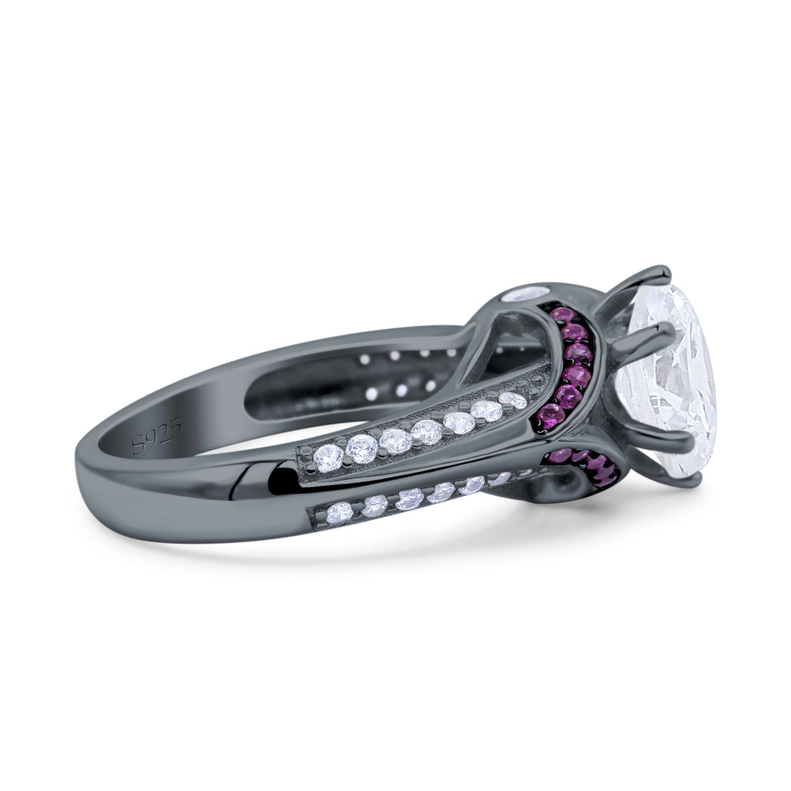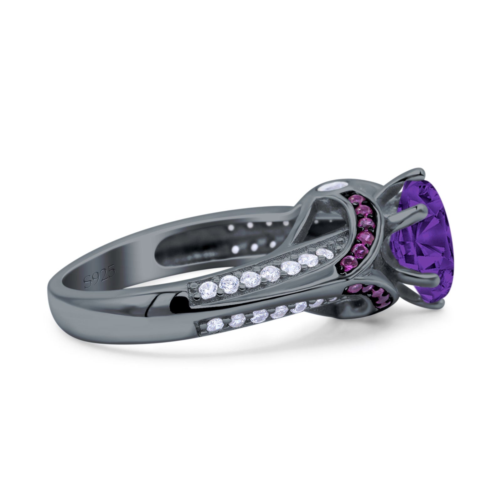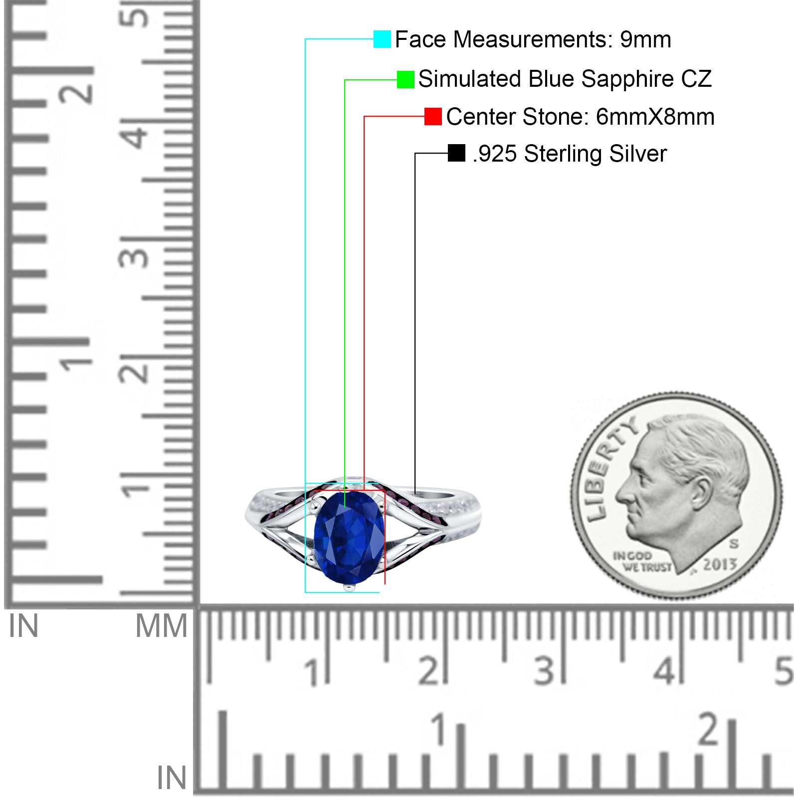 Split Shank Halo Oval Wedding Engagement Ring Black Round Simulated Cubic Zirconia 925 Sterling Silver