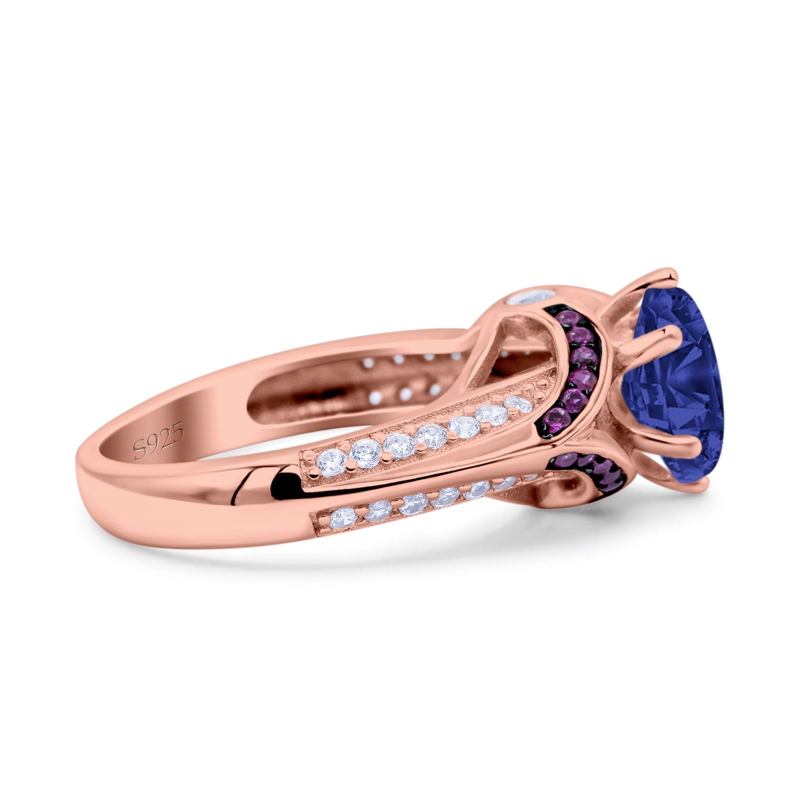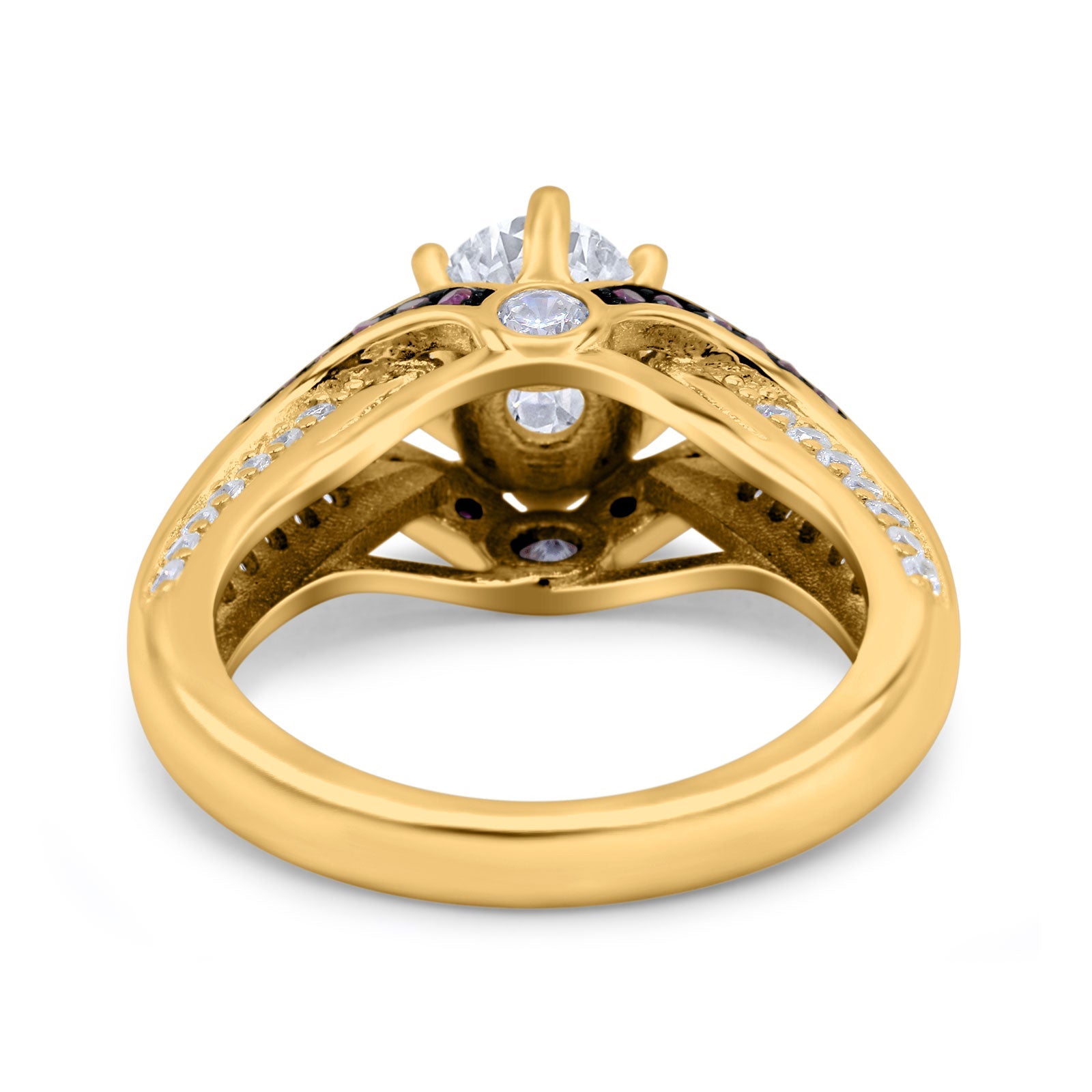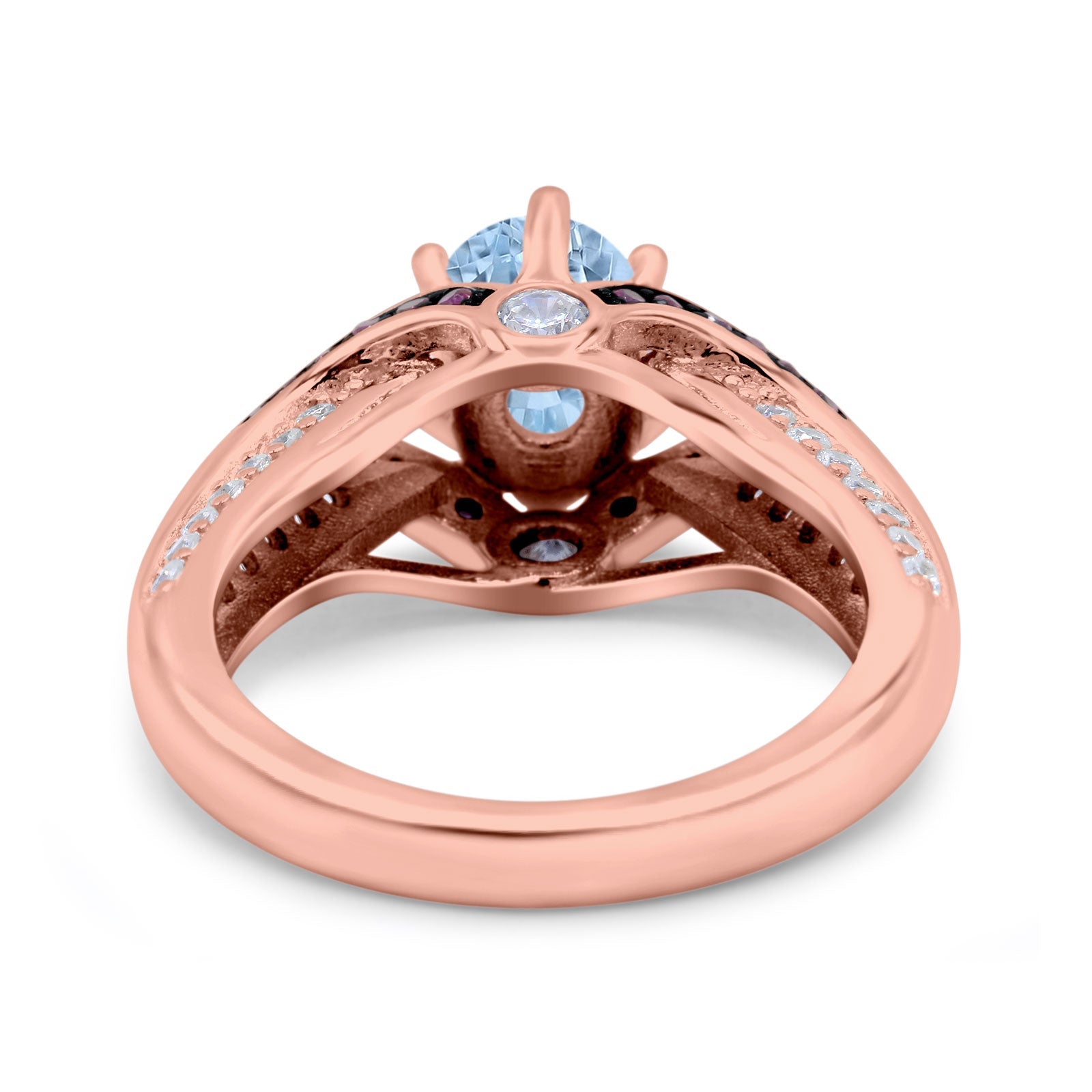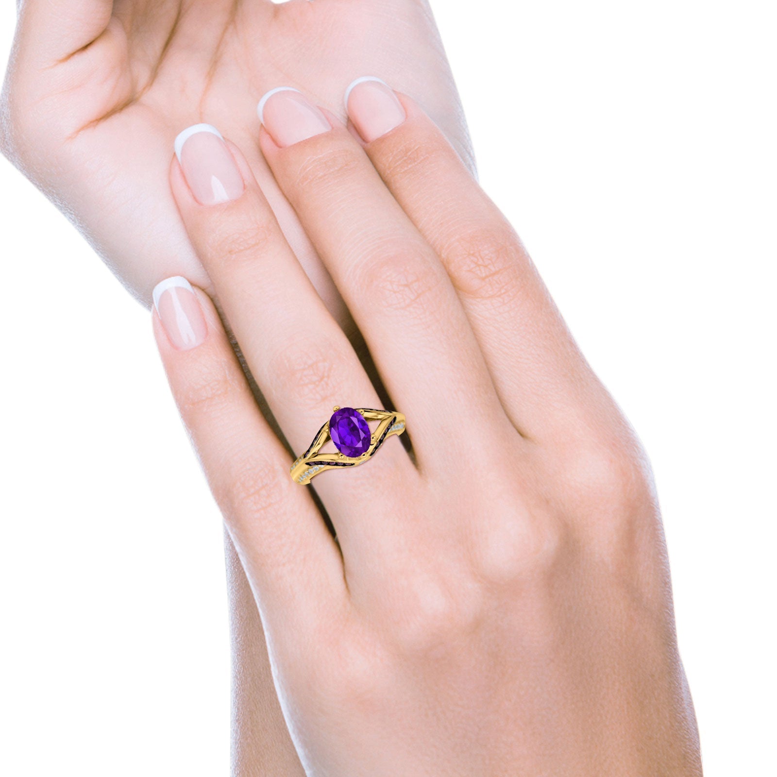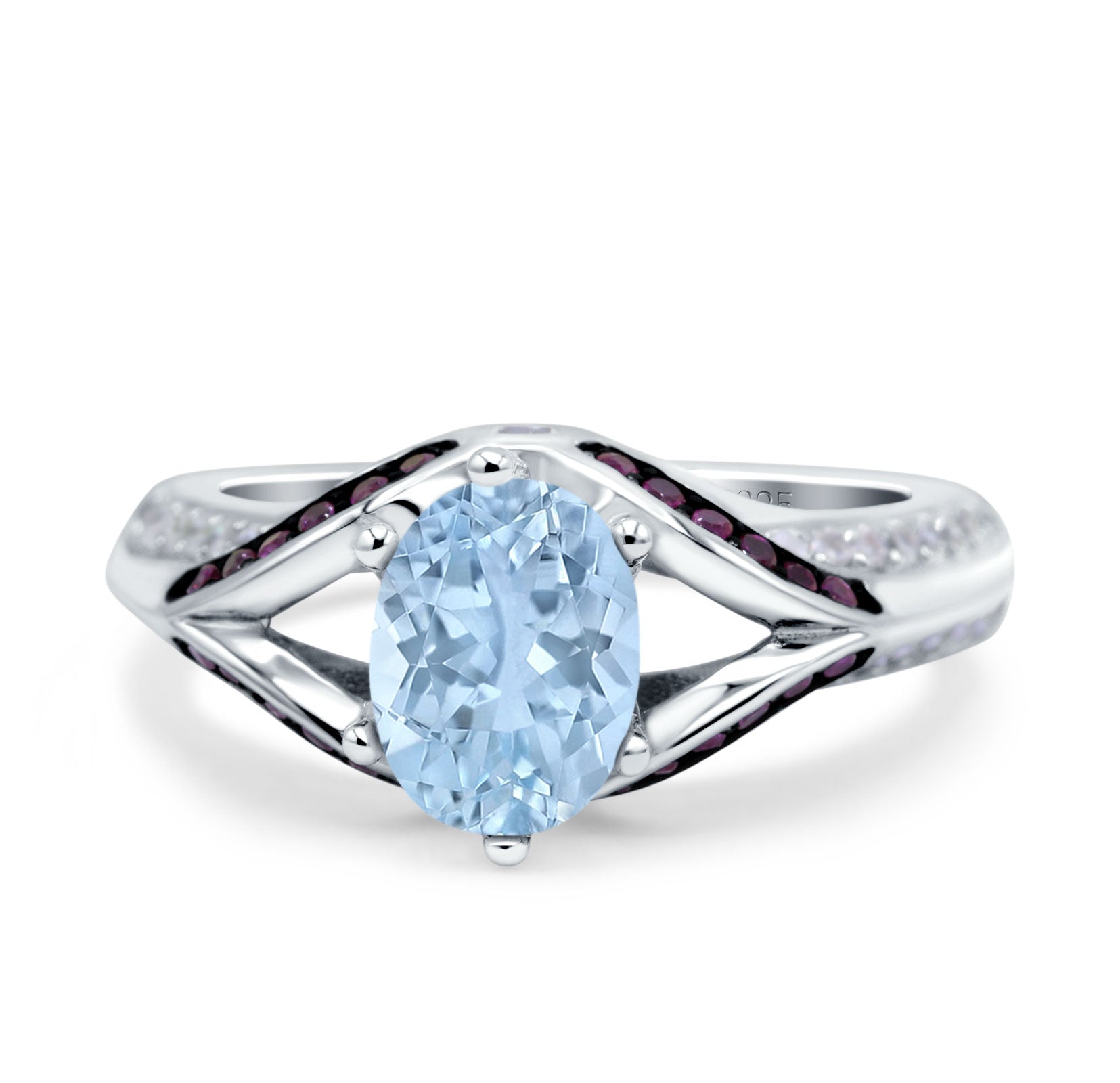 Split Shank Halo Oval Wedding Engagement Ring Black Round Simulated Cubic Zirconia 925 Sterling Silver