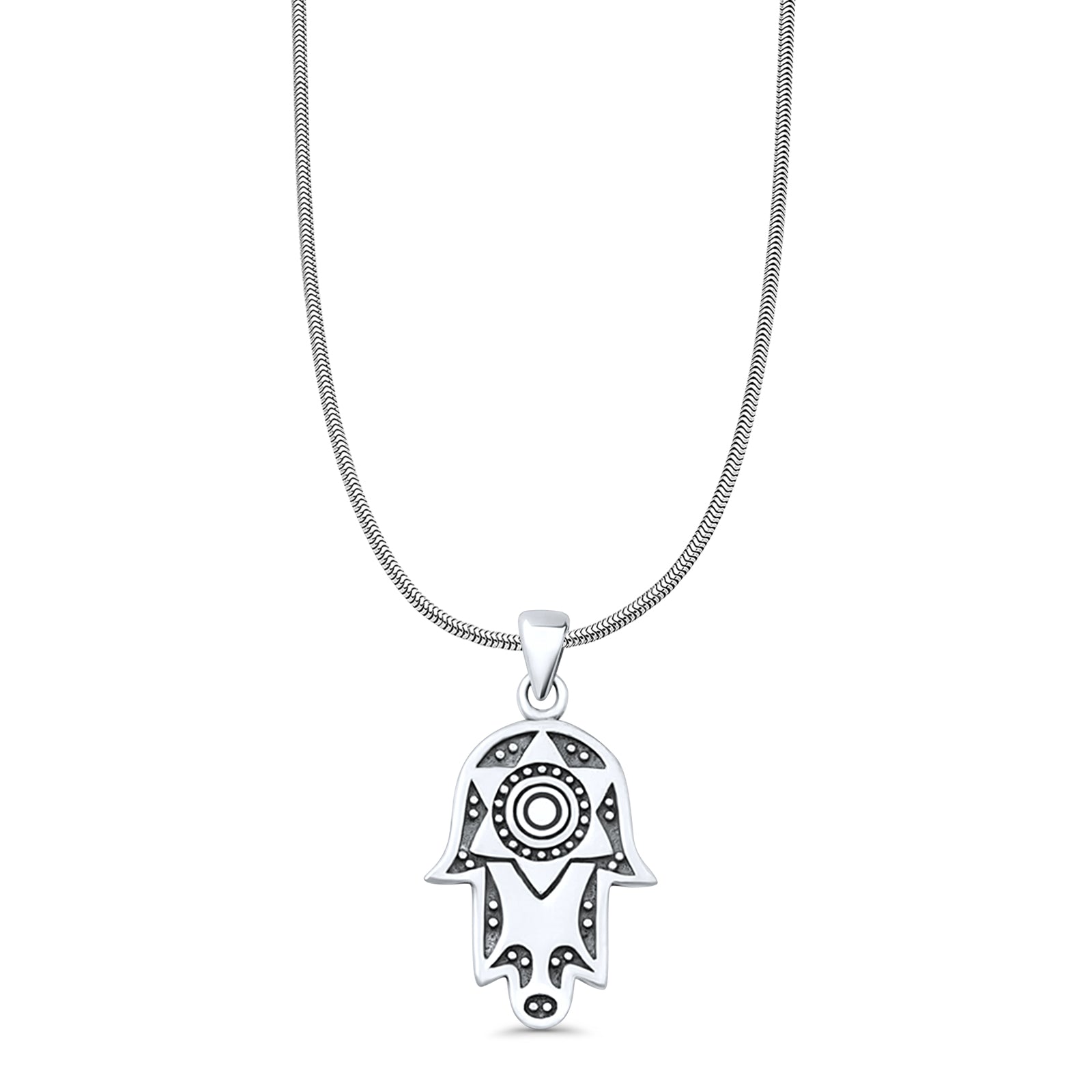 Style: Oxidized Star Hand Of Hamsa Pendant Necklace