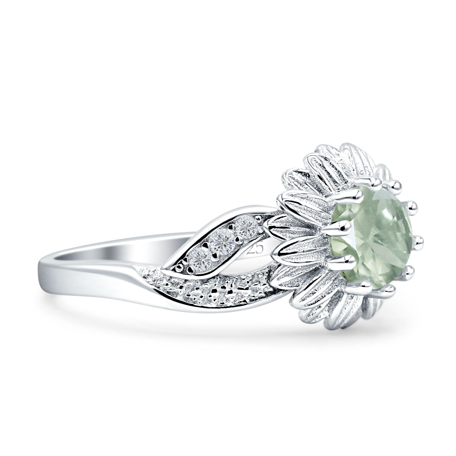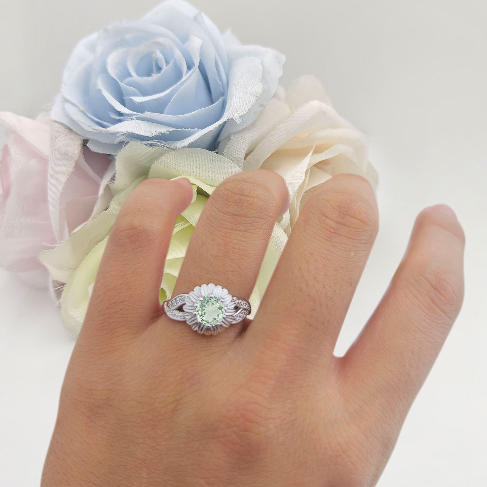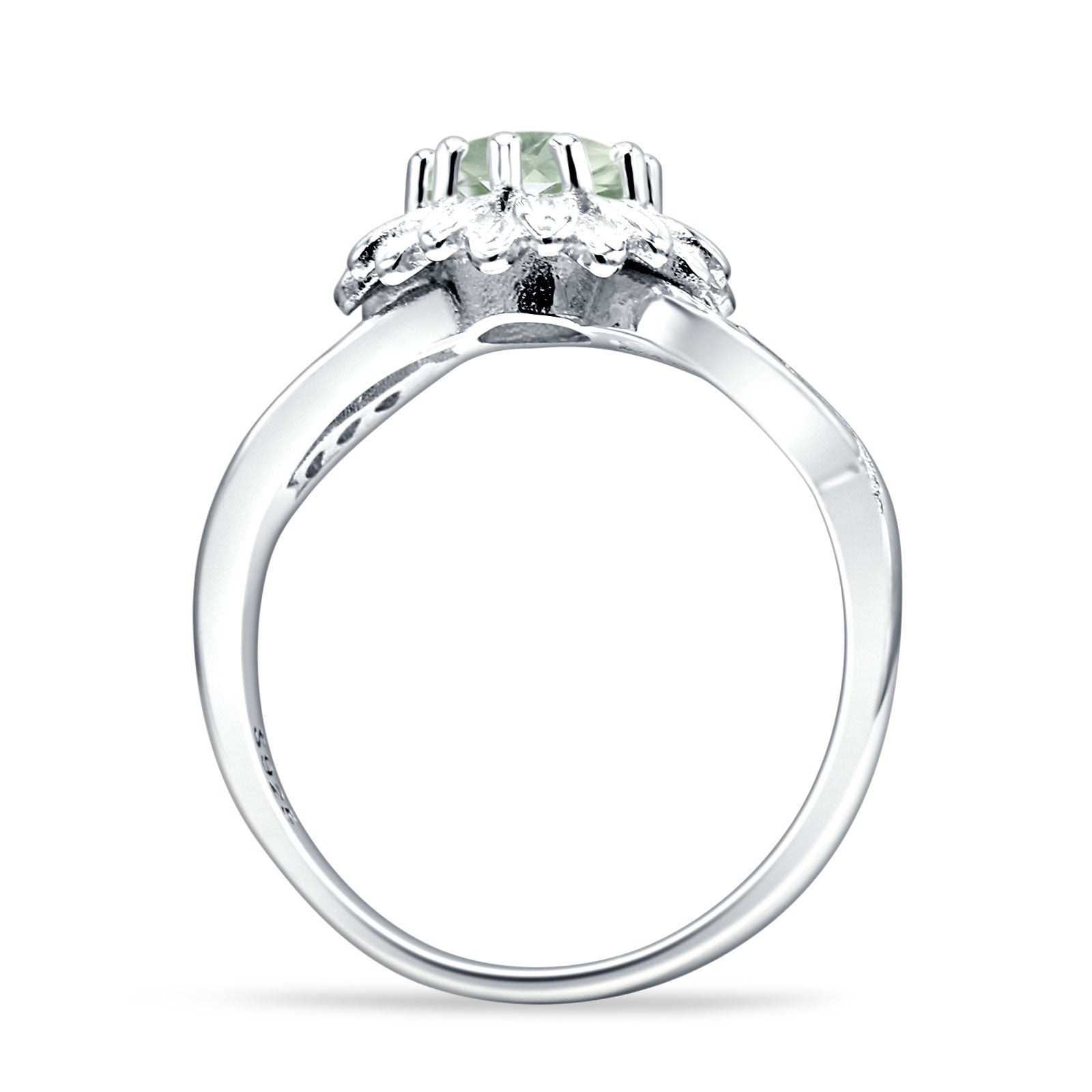 Sunflower Ring Infinity Twisted Round Natural Green Amethyst Prasiolite 925 Sterling Silver