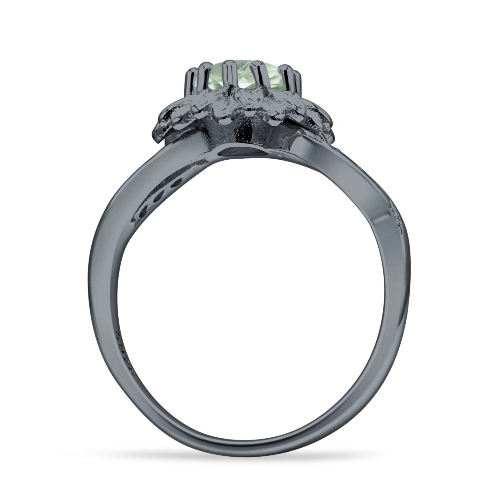 Natural Green Amethyst Prasiolite Black Tone Silver