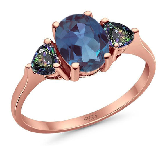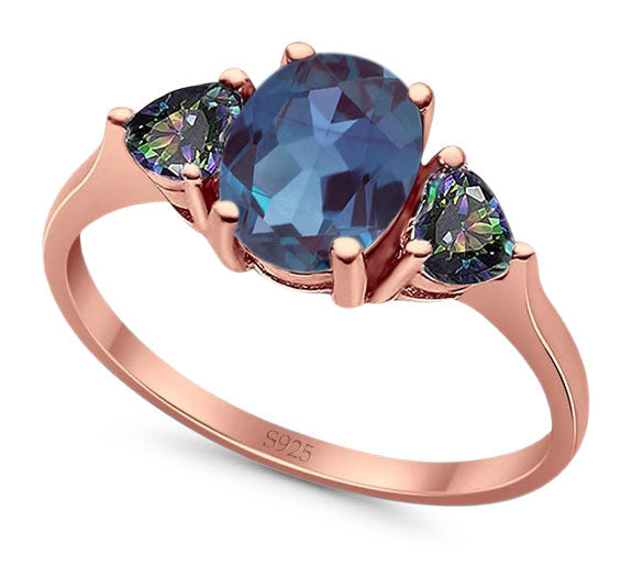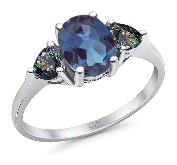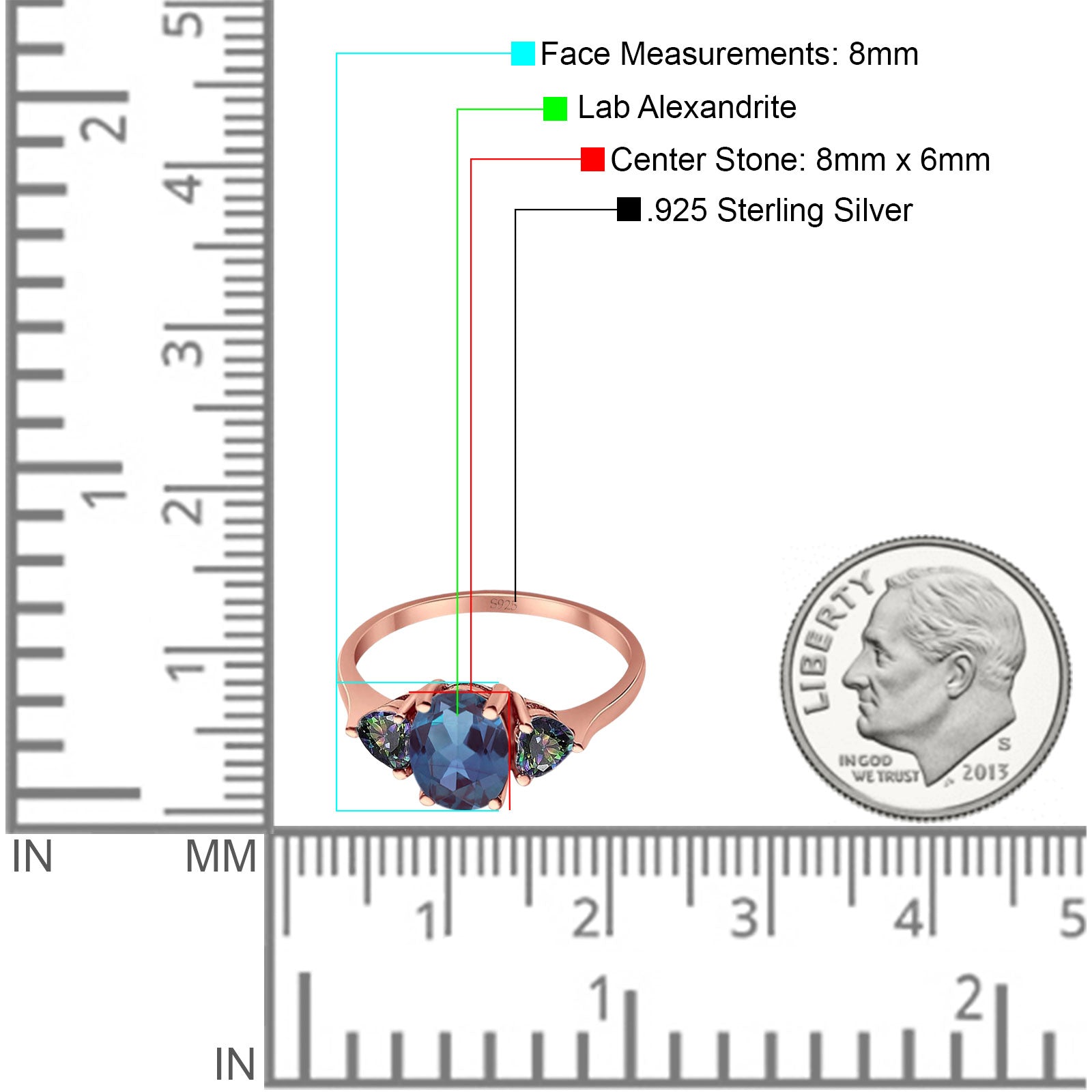Three Stone Oval Lab Alexandrite Trellis Ring 925 Sterling Silver
