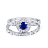 CZ & Blue Sapphire CZ Yellow Tone Silver