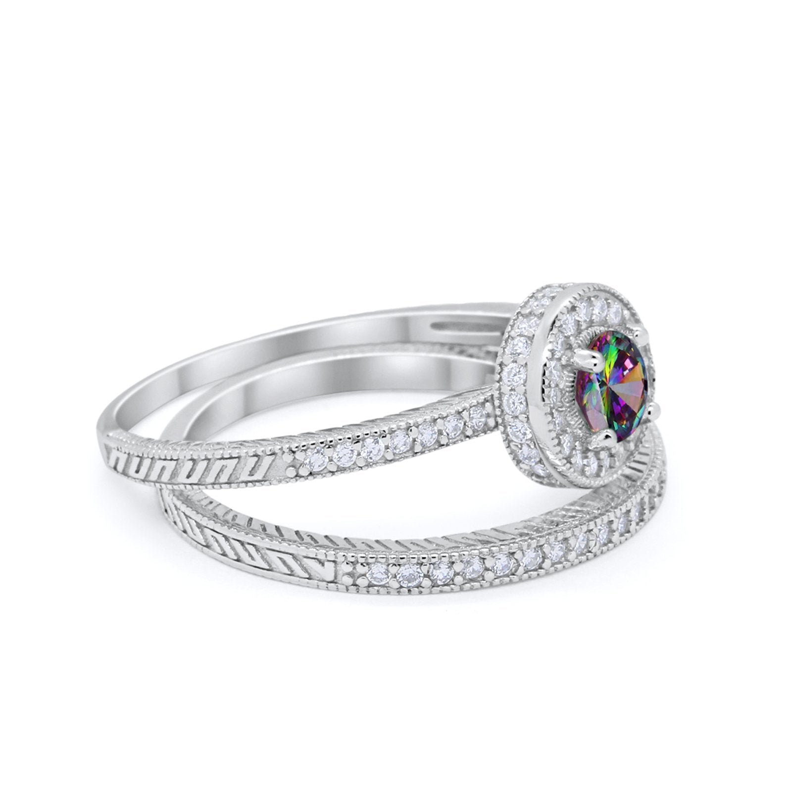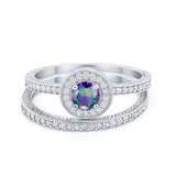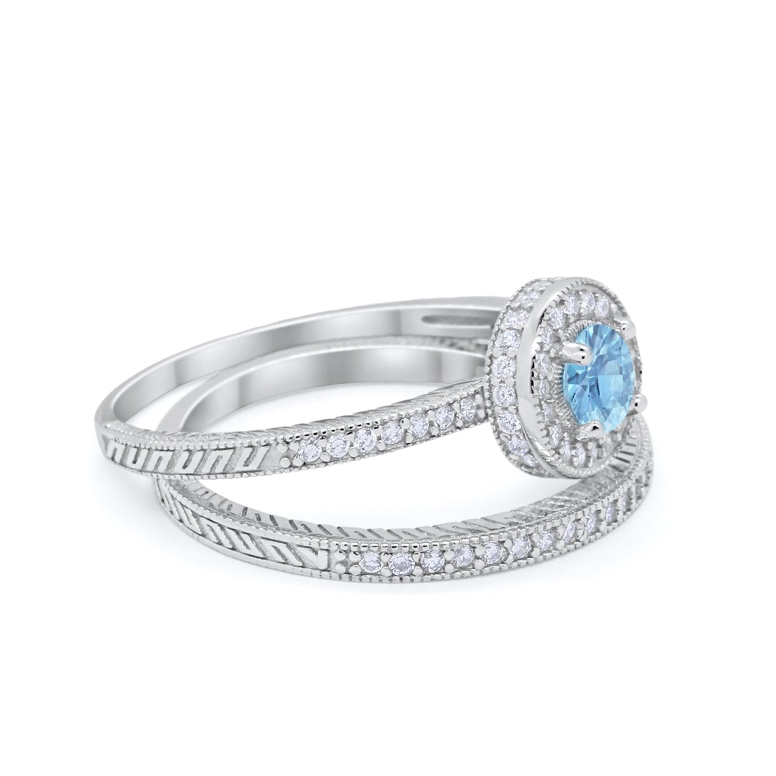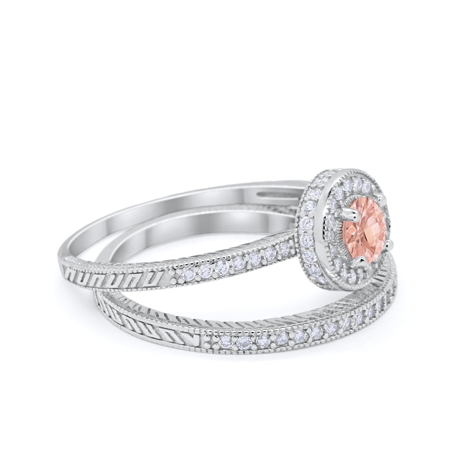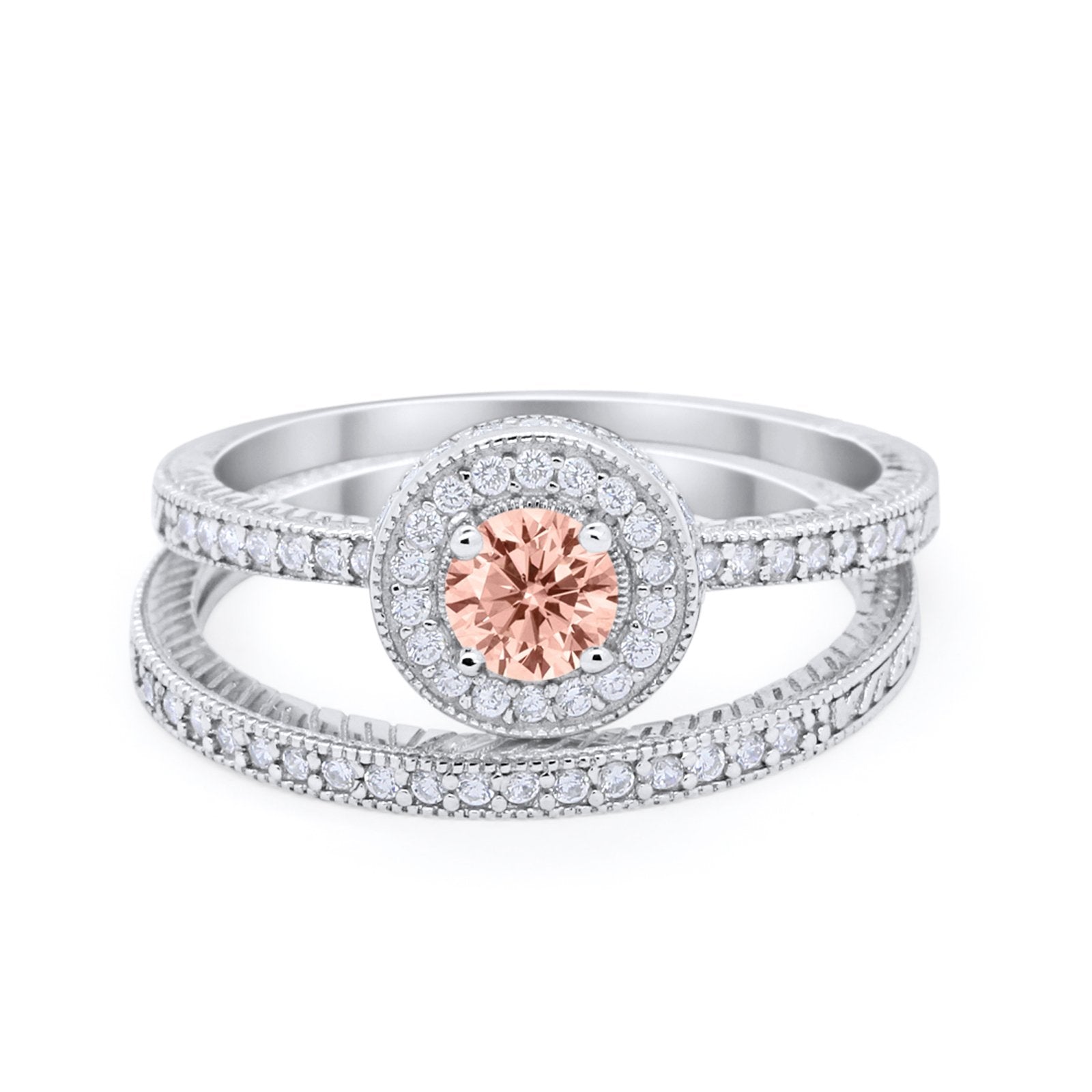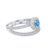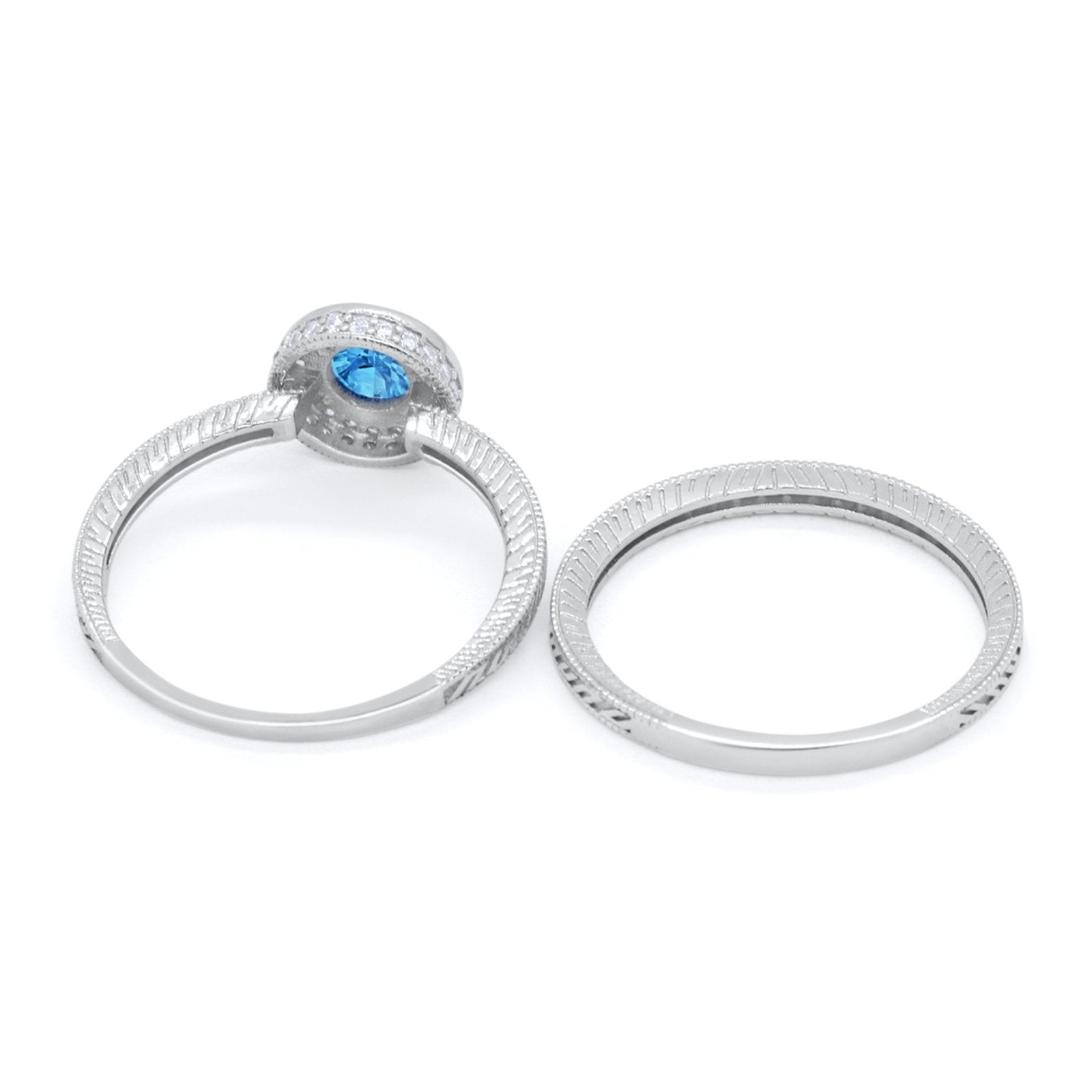 CZ & Blue Sapphire CZ Rose Tone Silver
