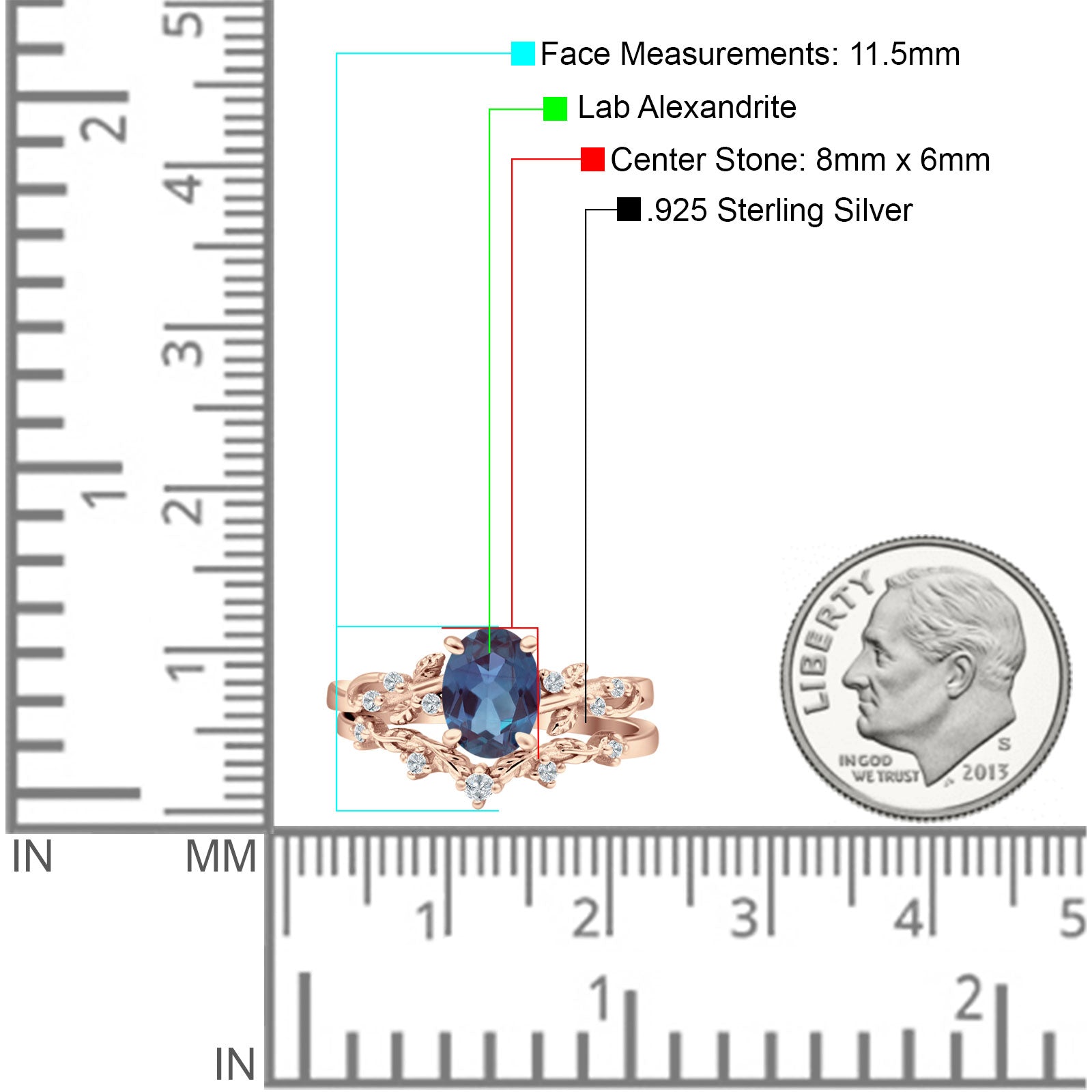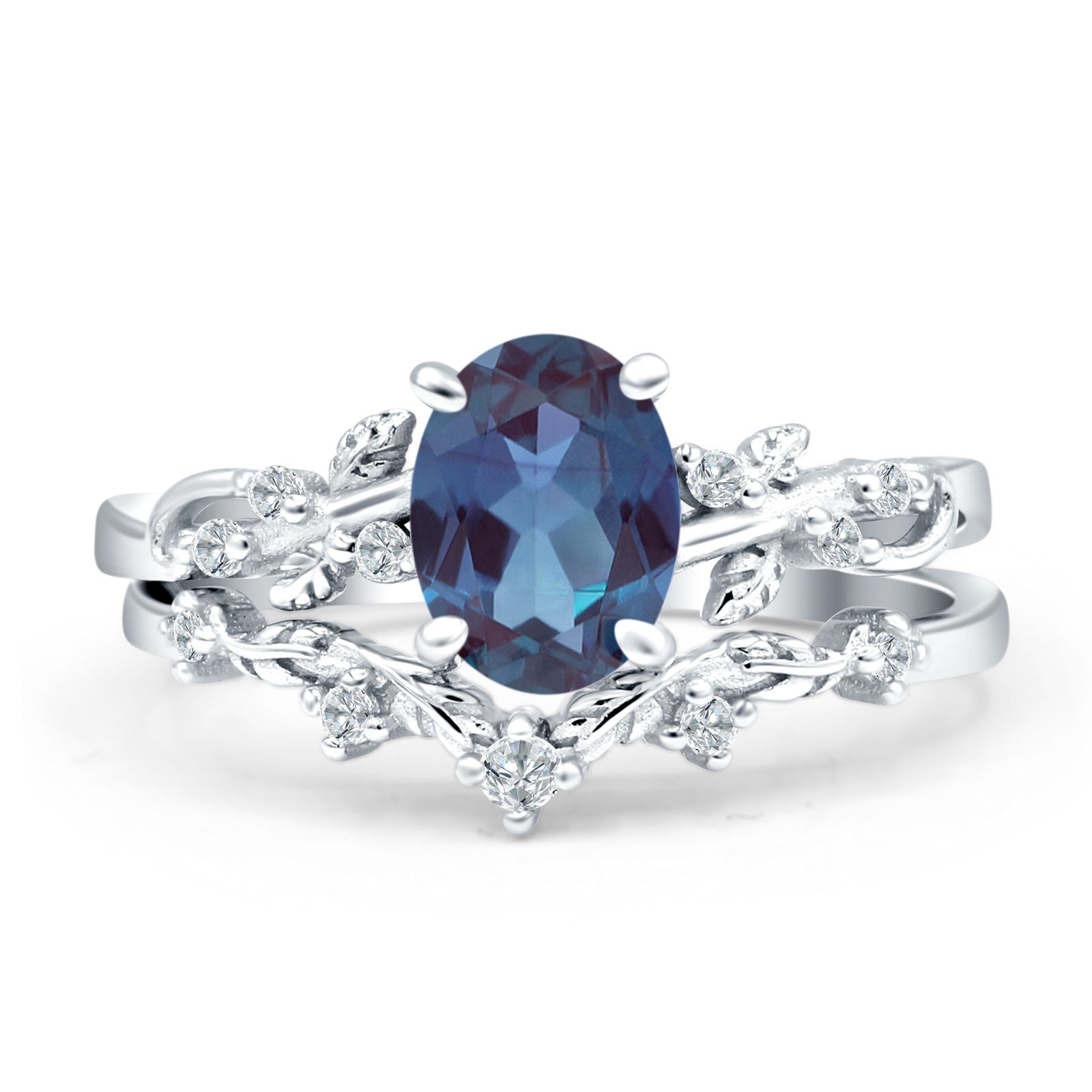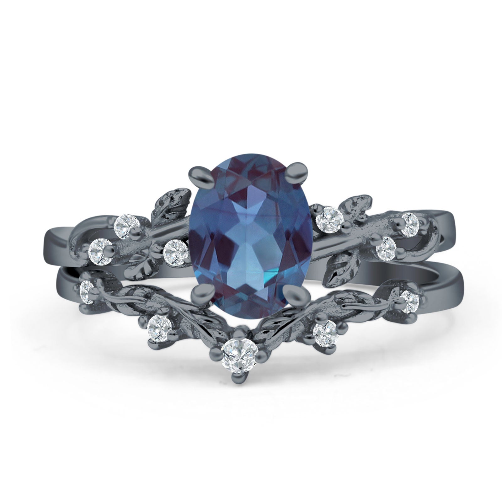 Two Piece Oval Lab Alexandrite Leaf Style Chevron Rings 925 Sterling Silver
