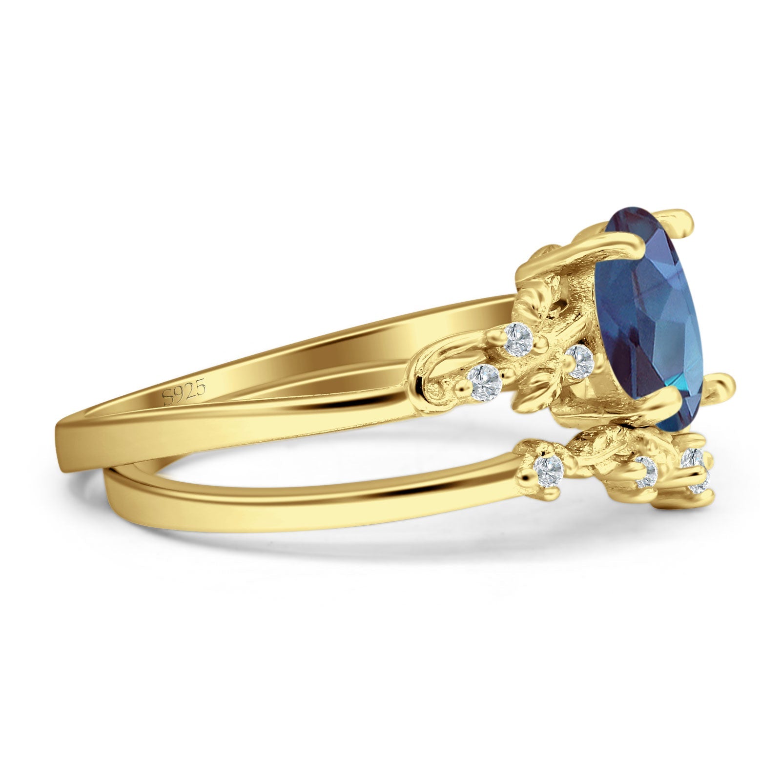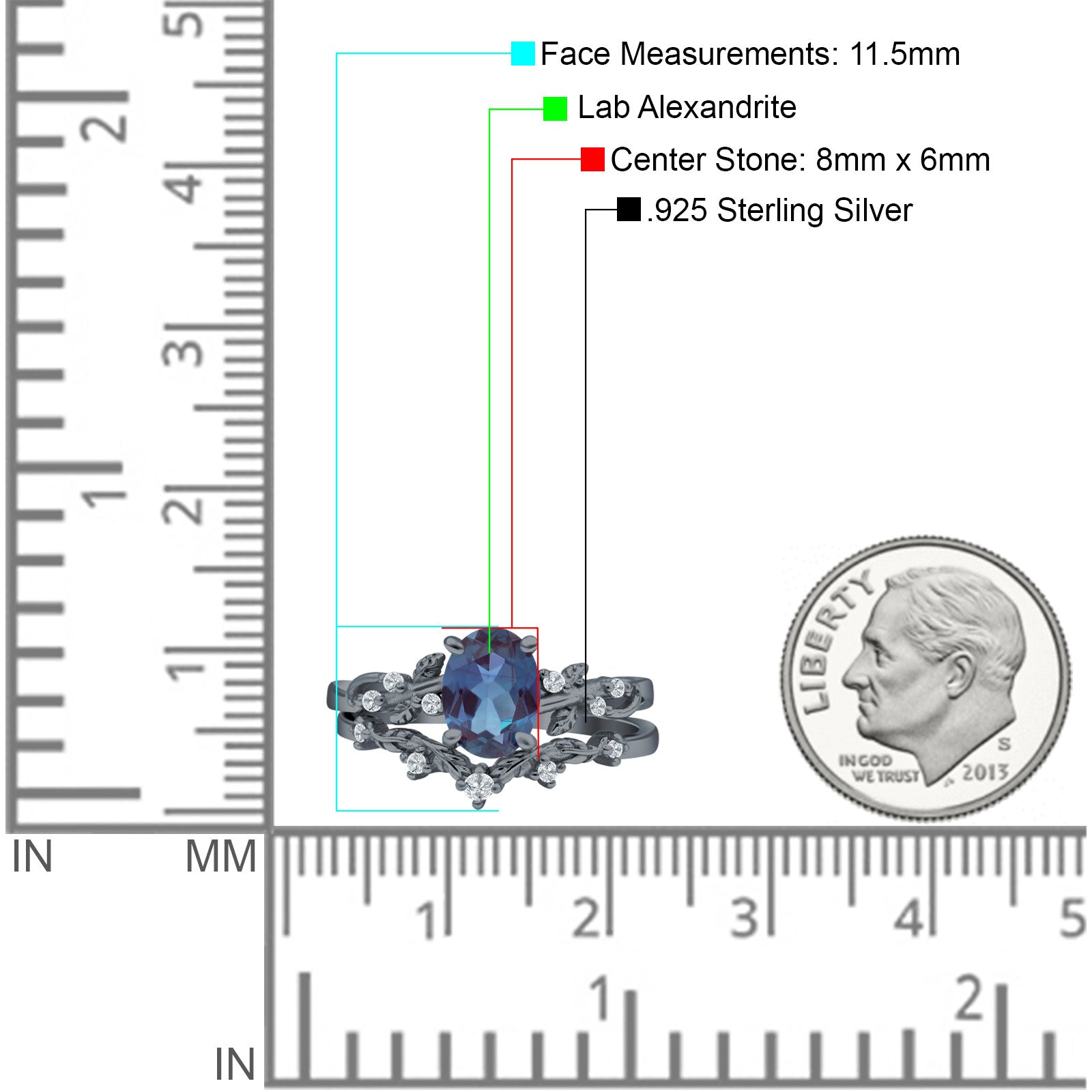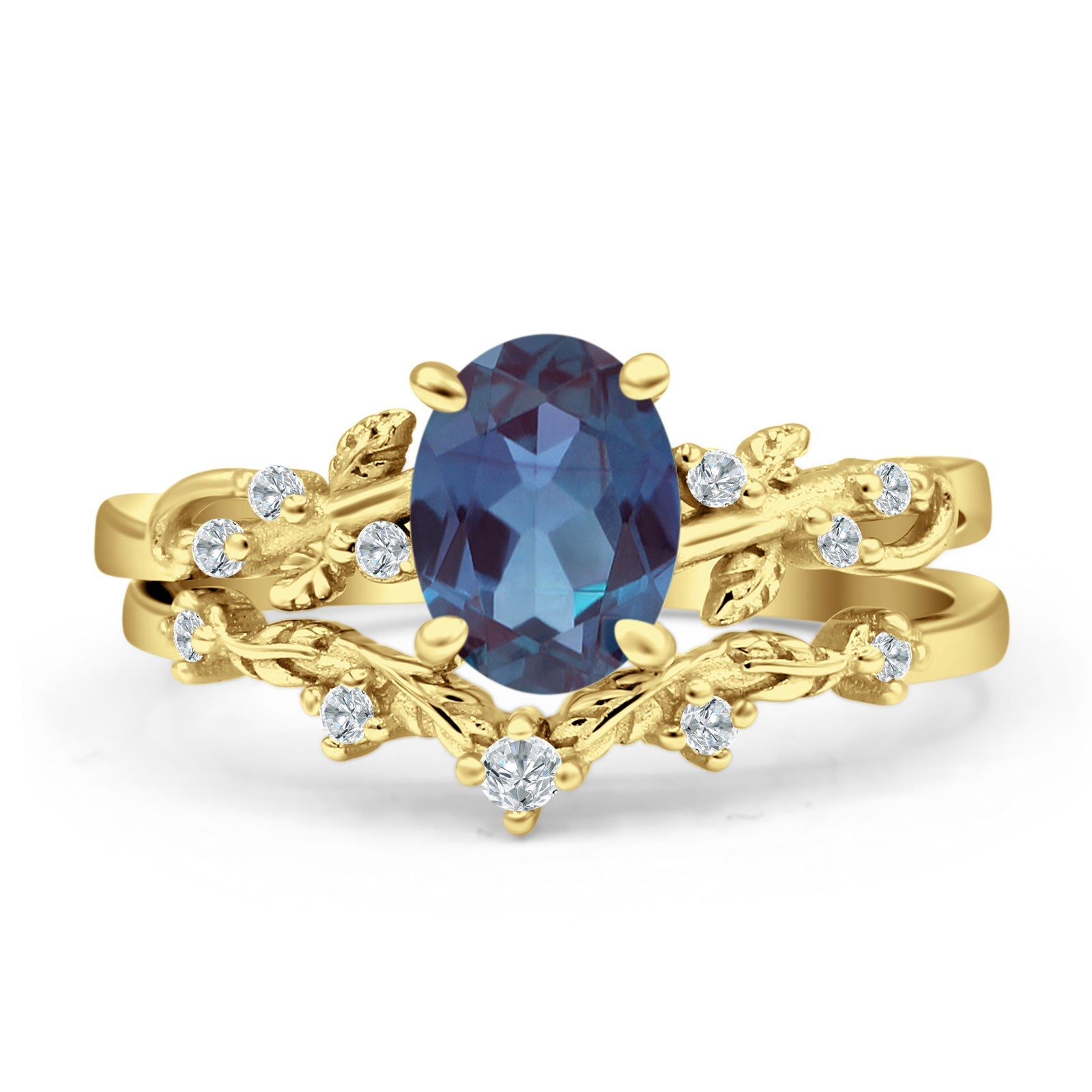 Two Piece Oval Lab Alexandrite Leaf Style Chevron Rings 925 Sterling Silver