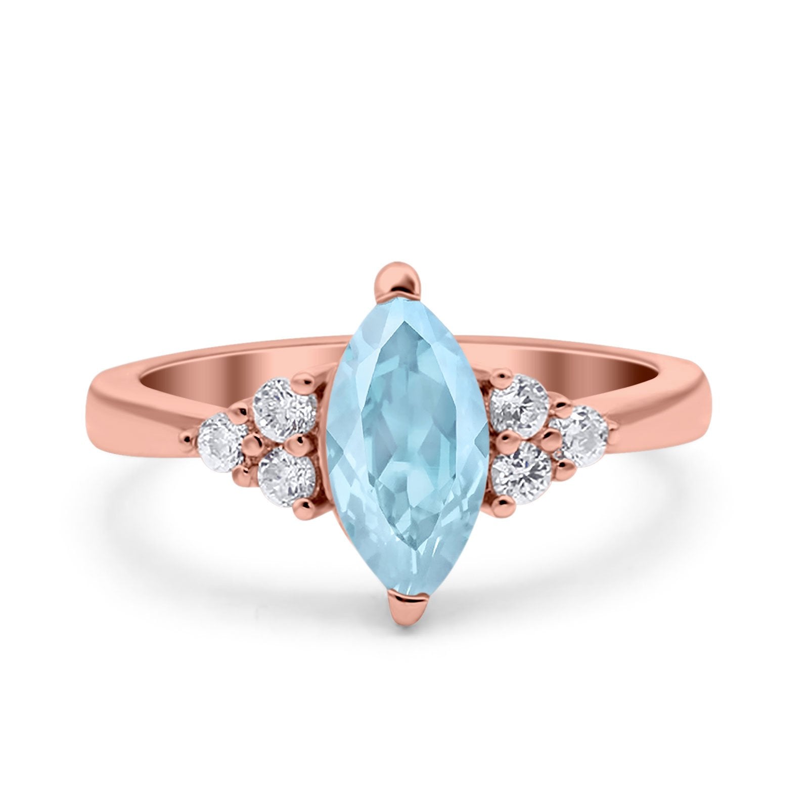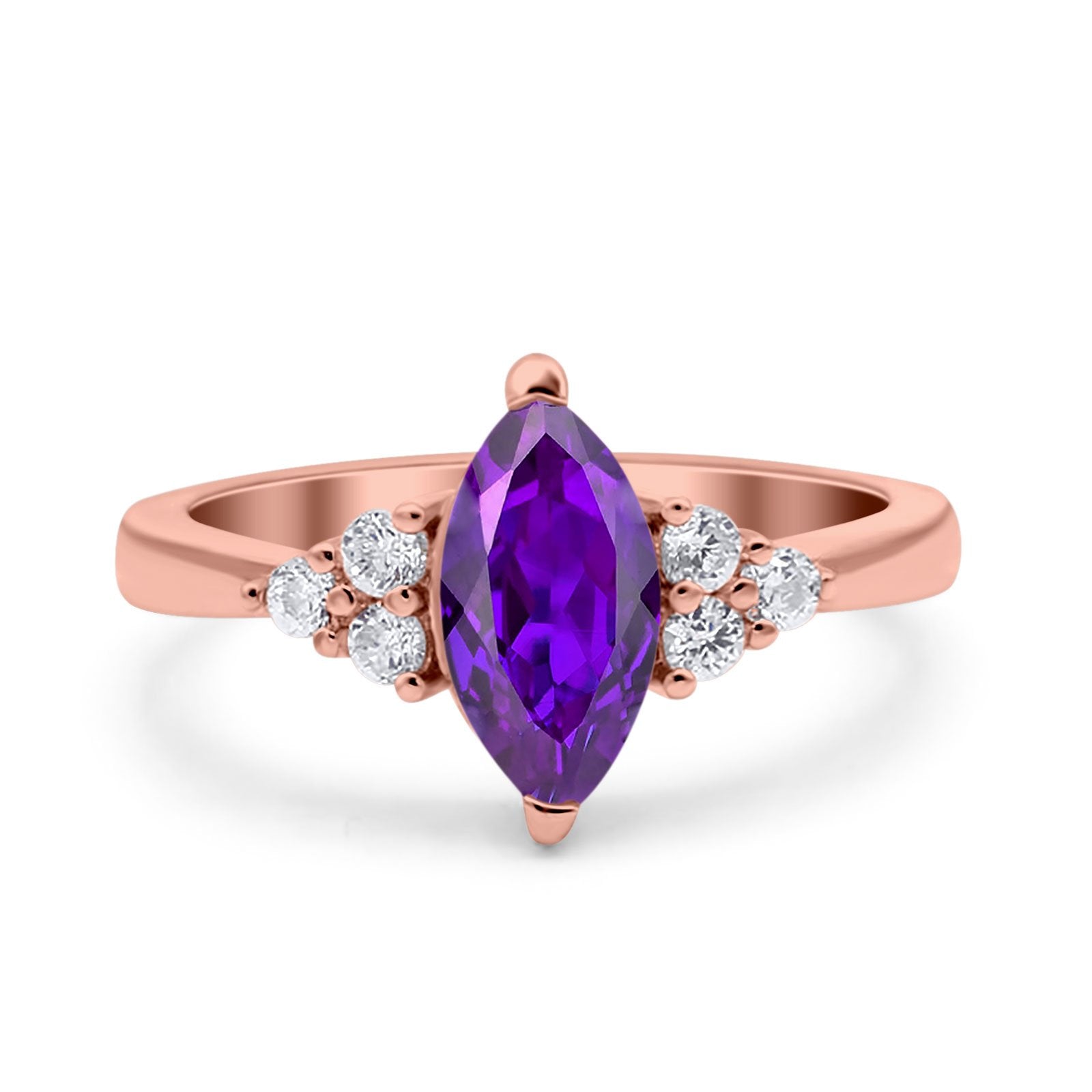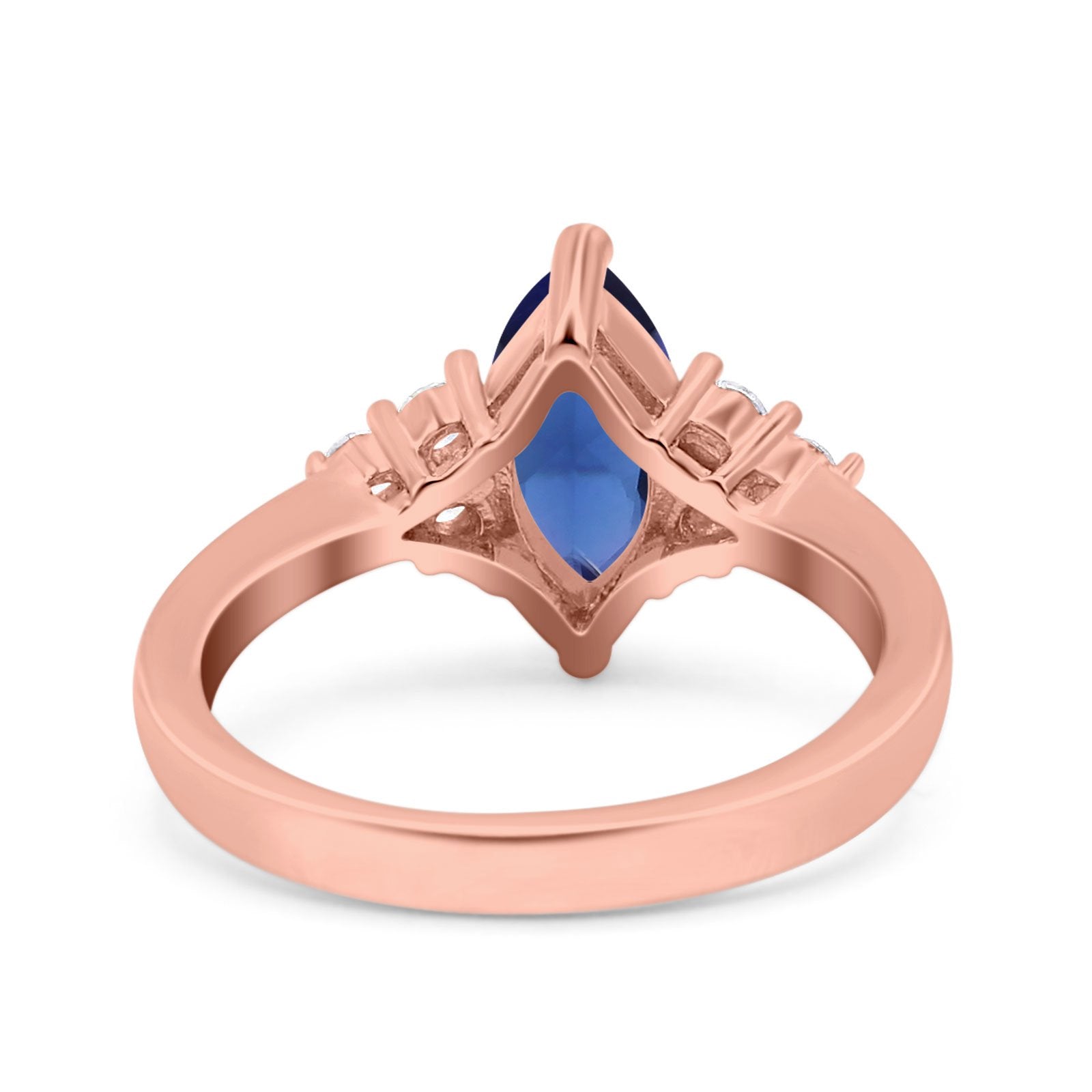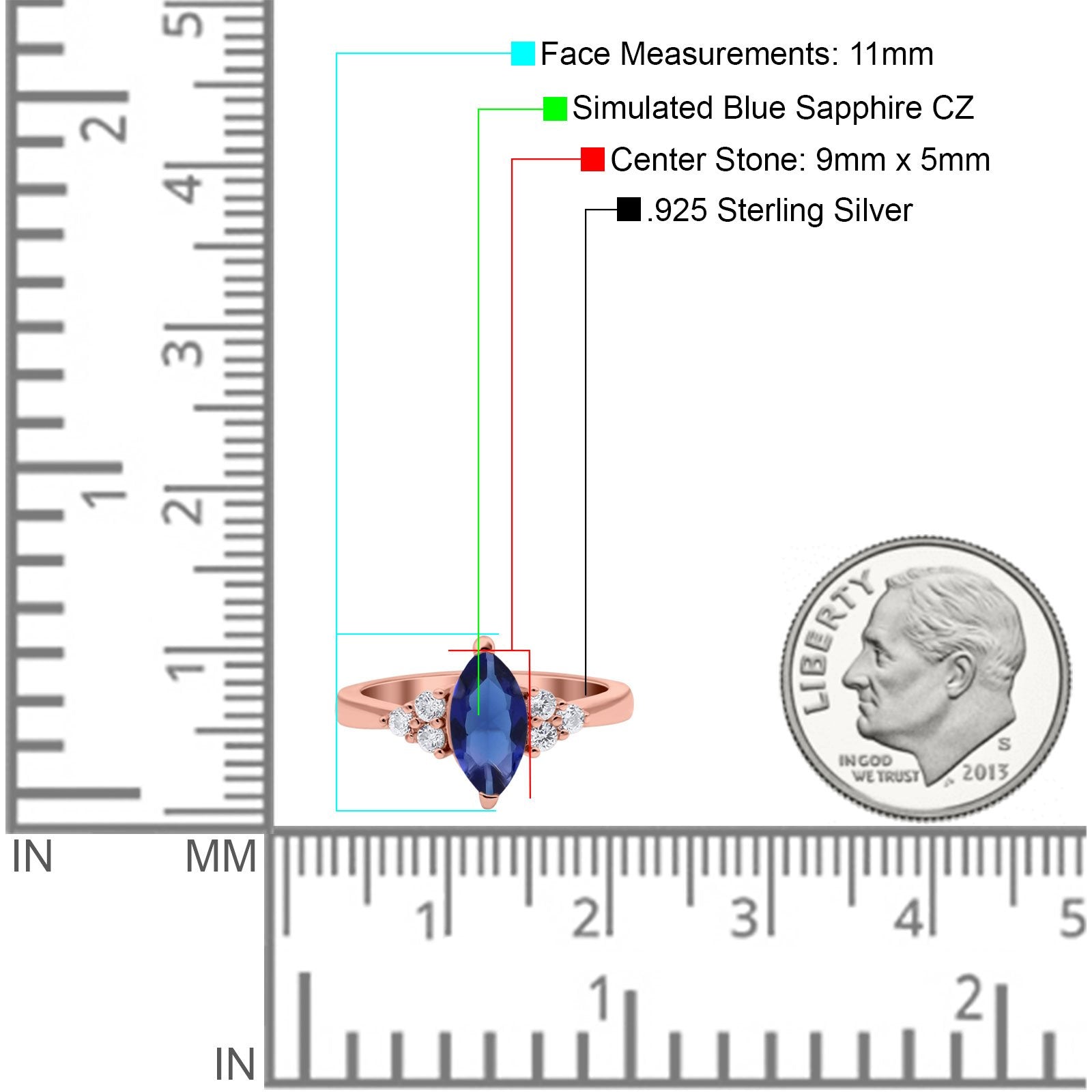 CZ & Blue Sapphire CZ Rose Tone Silver