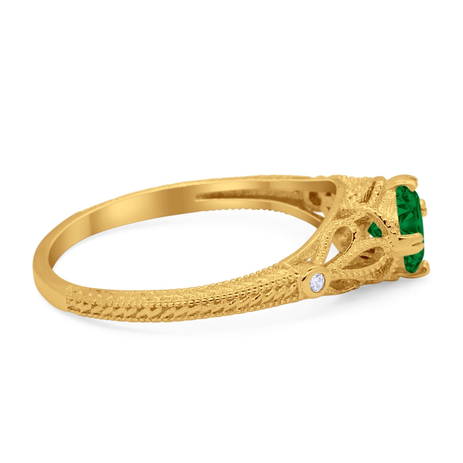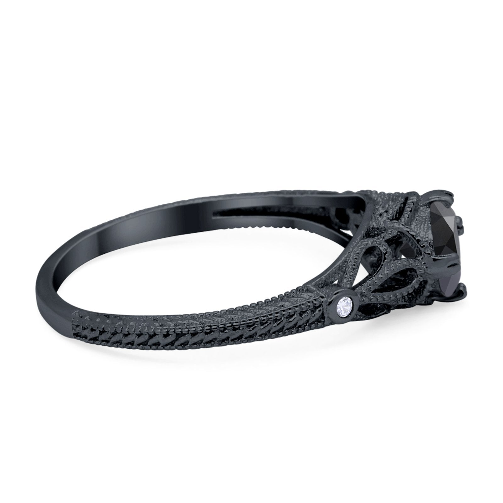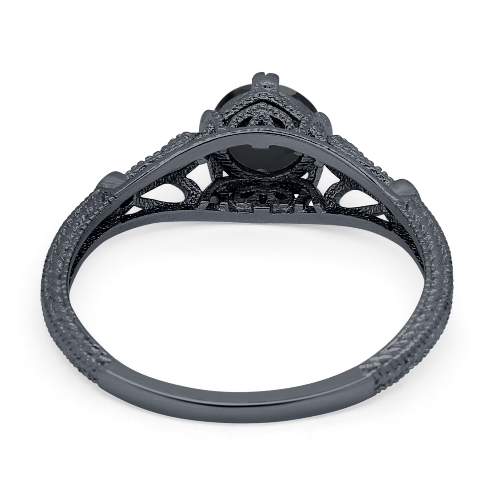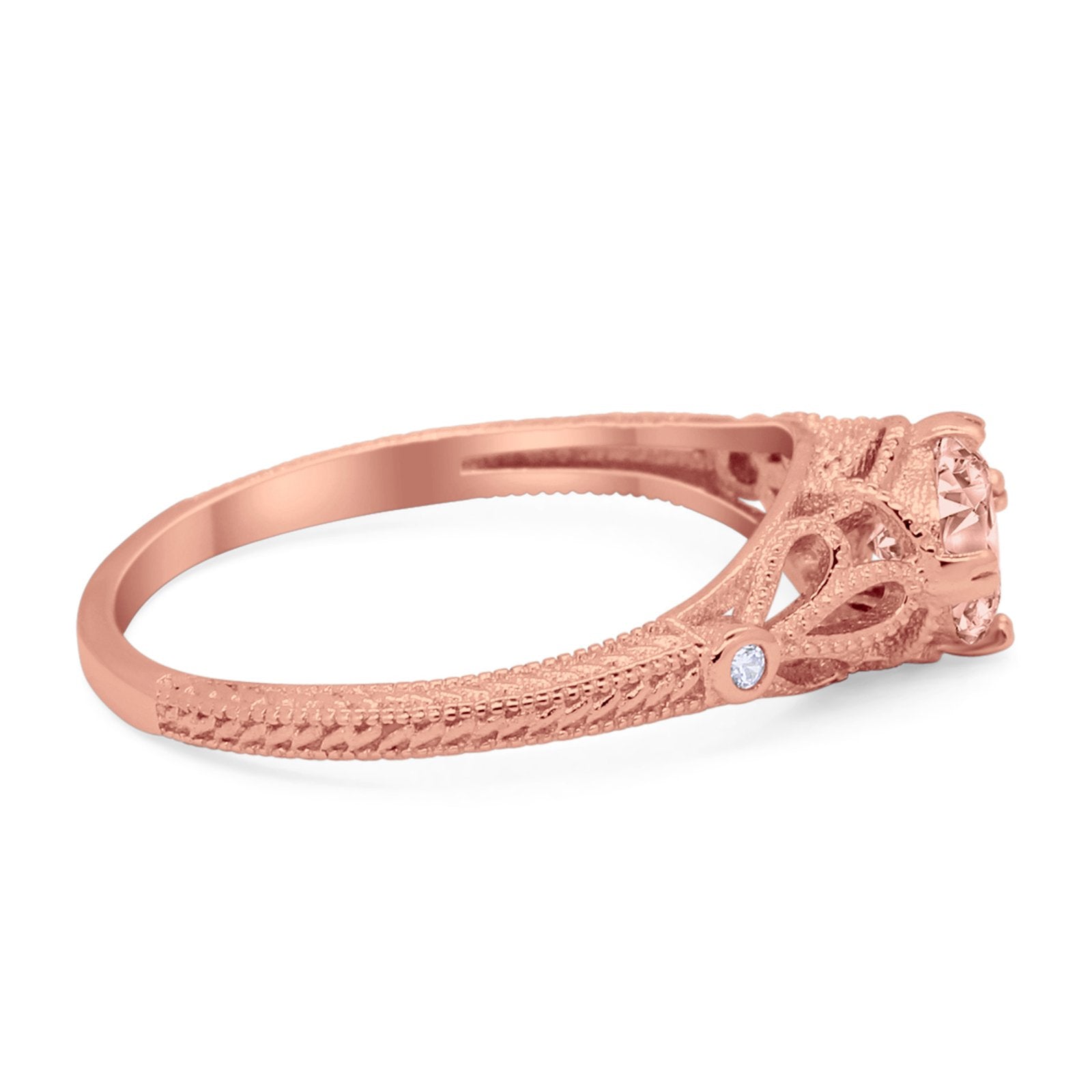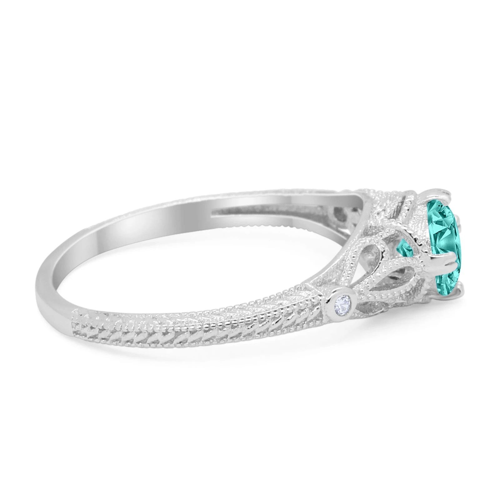 Vintage Design Engagement Solitaire Ring Simulated Cubic Zirconia 925 Sterling Silver