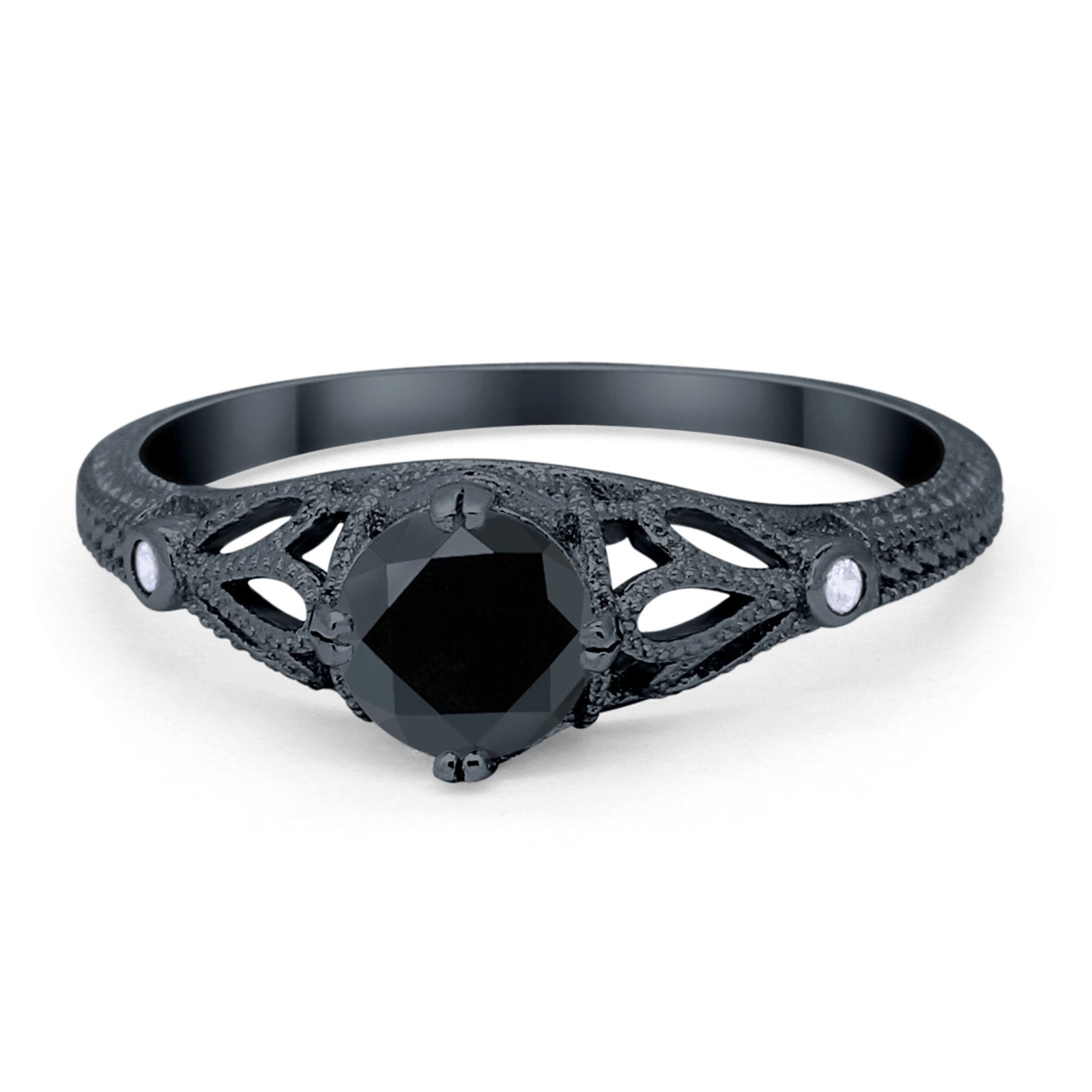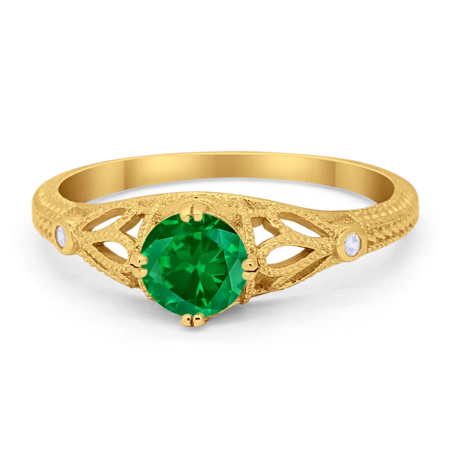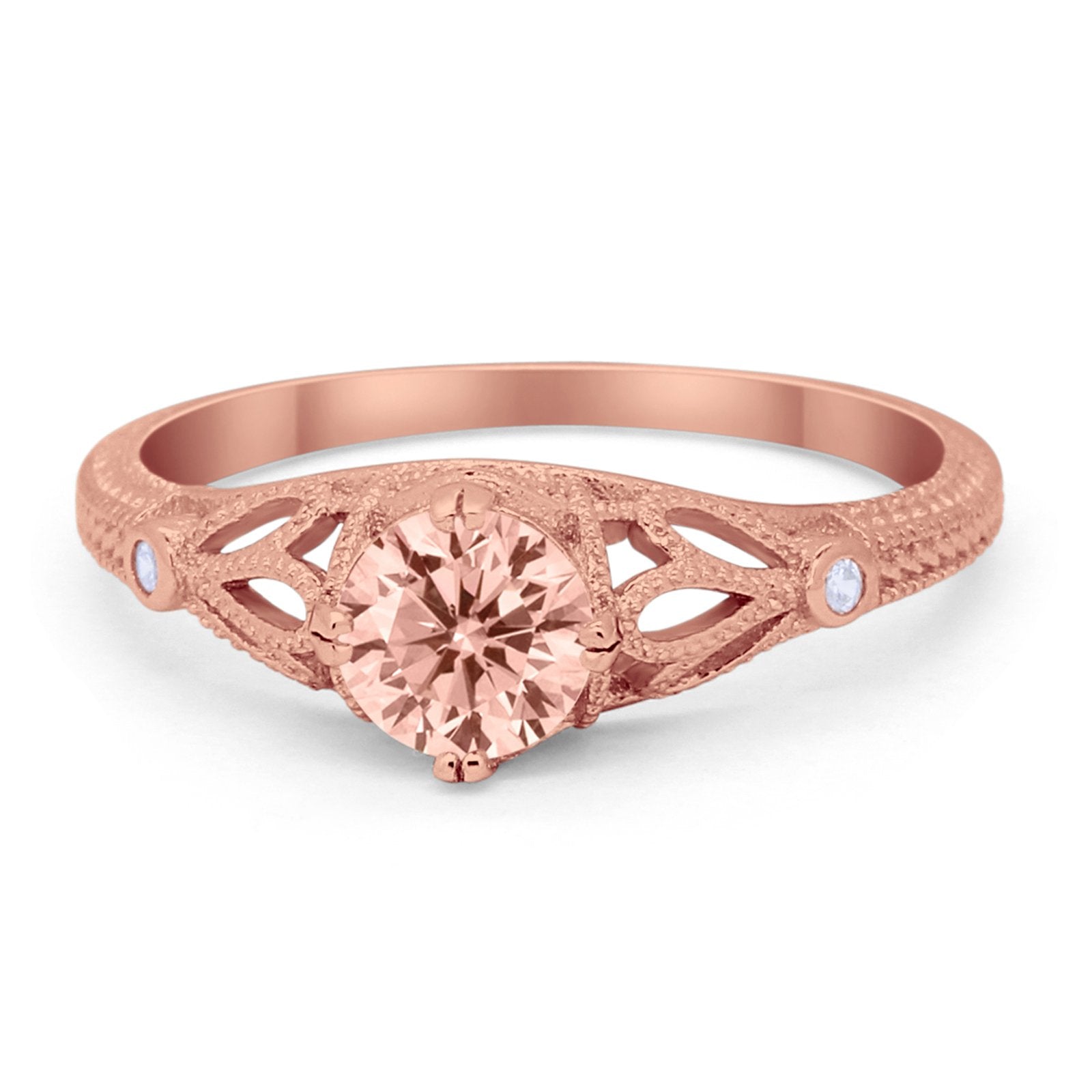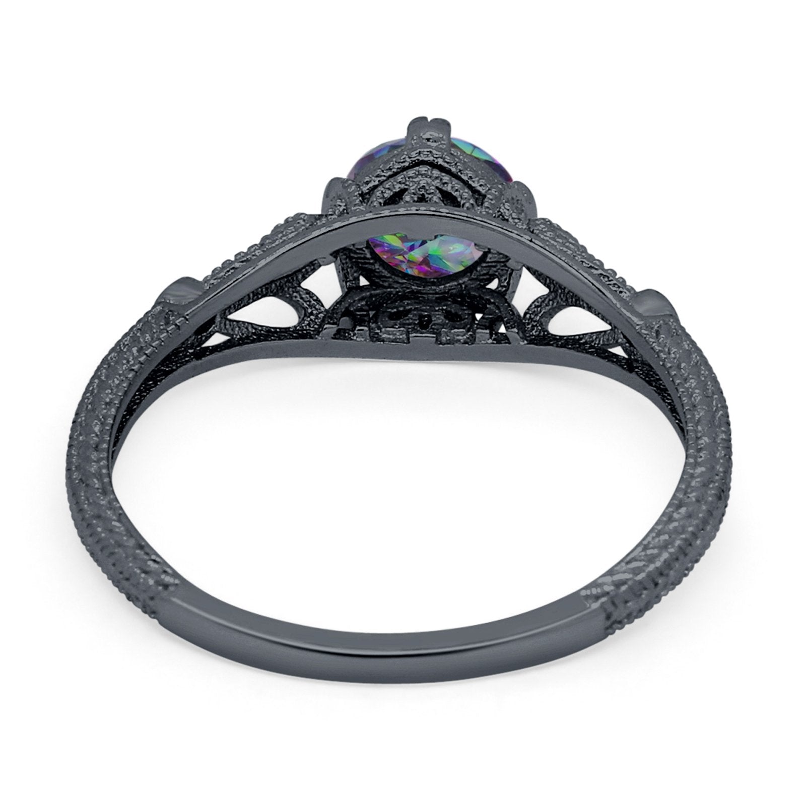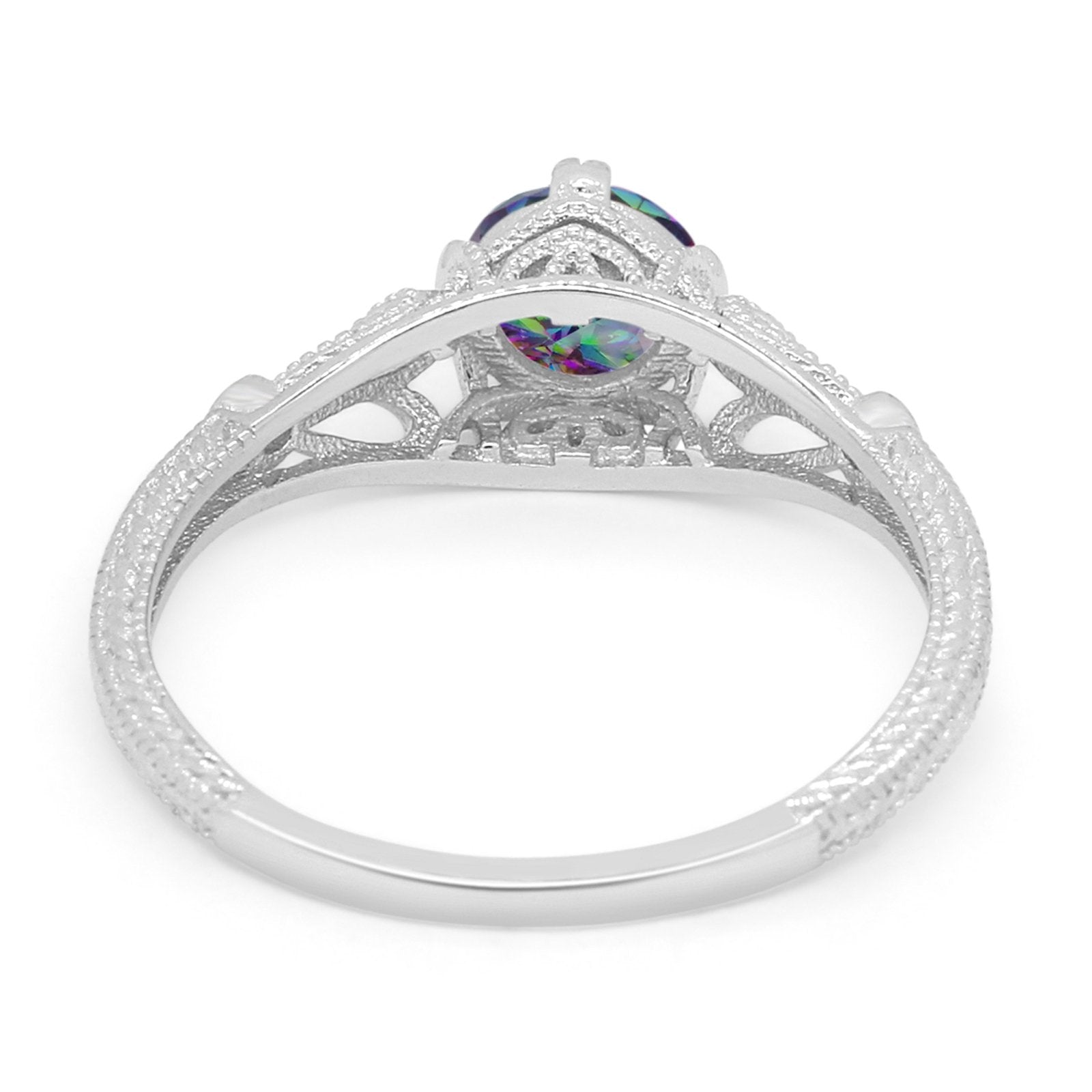 Vintage Design Engagement Solitaire Ring Simulated Cubic Zirconia 925 Sterling Silver
