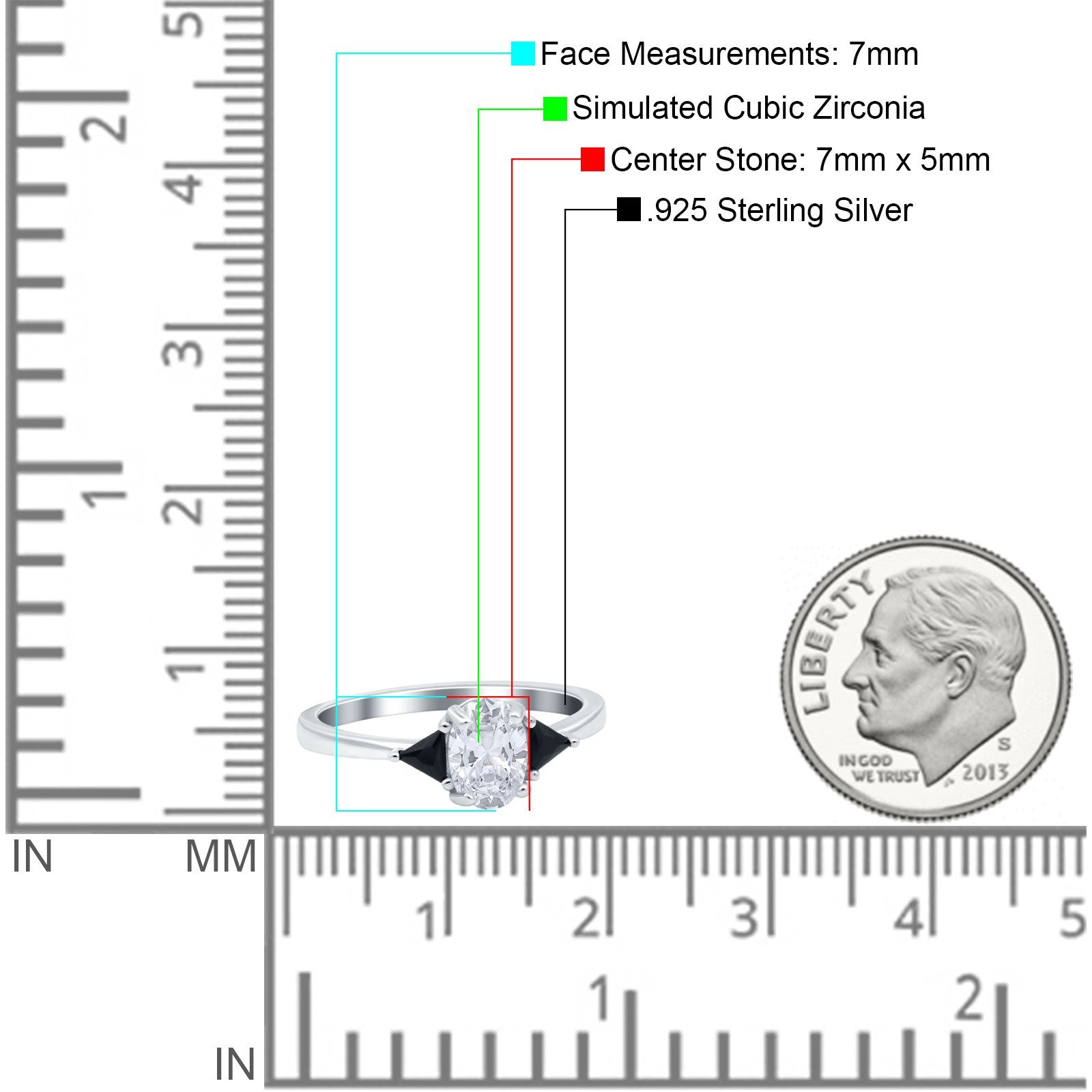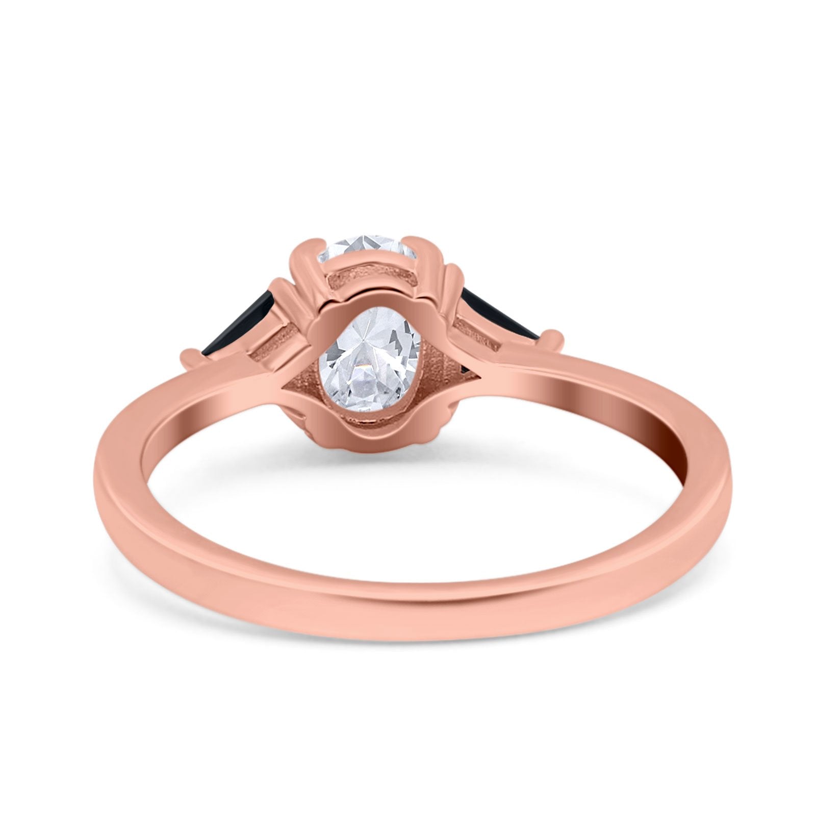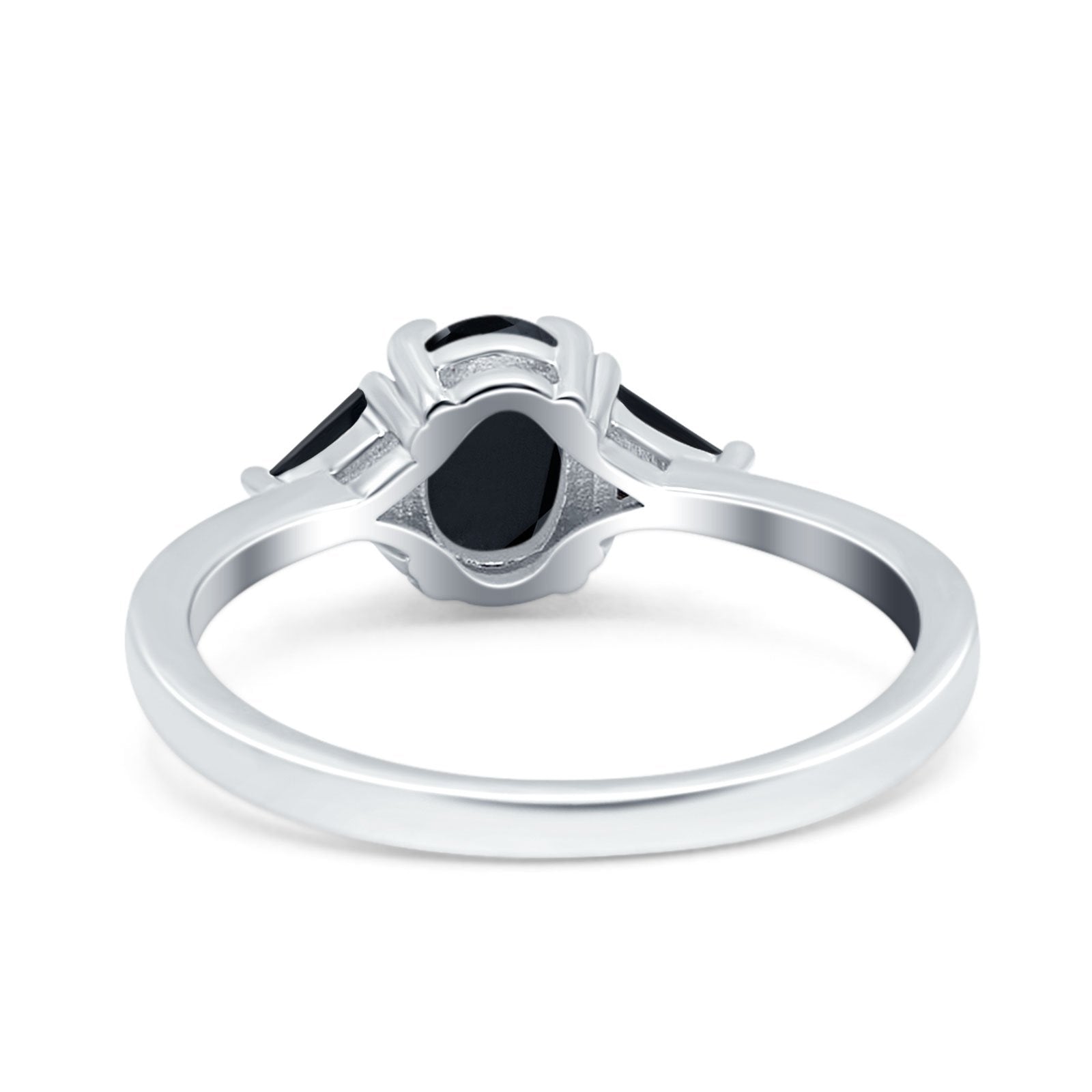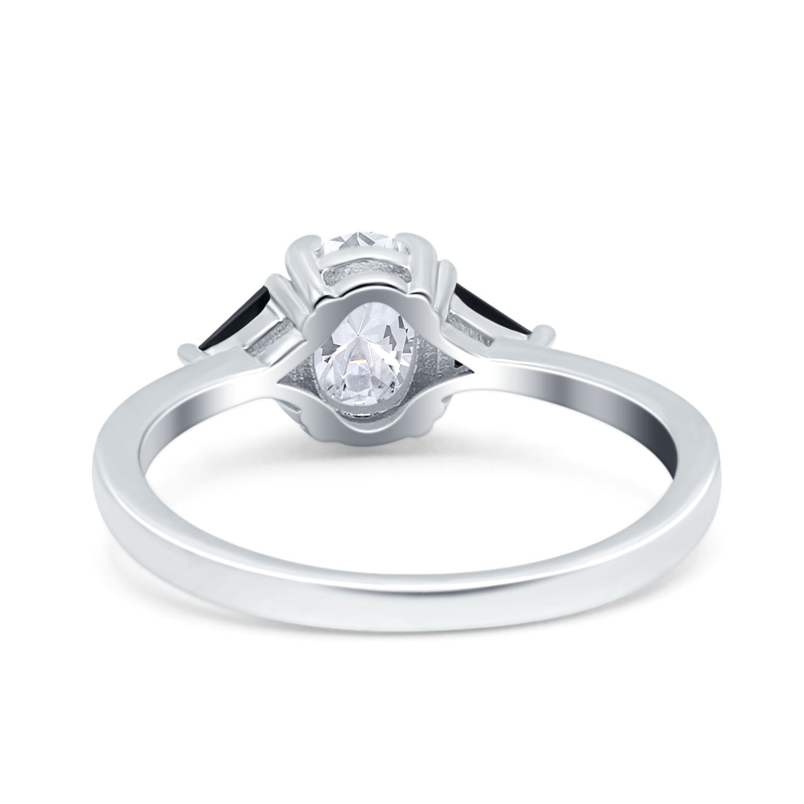 Vintage Oval Engagement Ring Triangle Black Simulated Cubic Zirconia 925 Sterling Silver