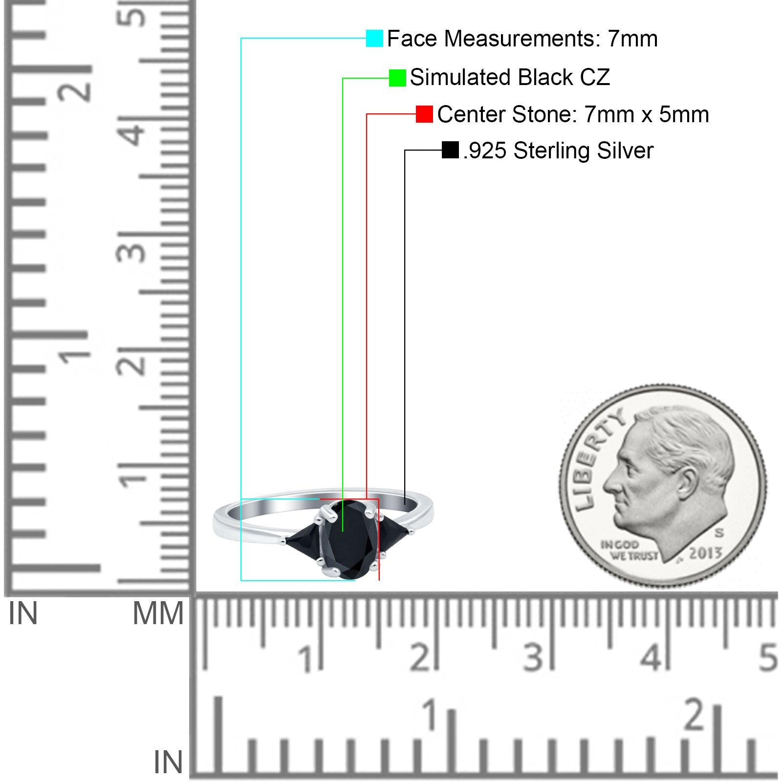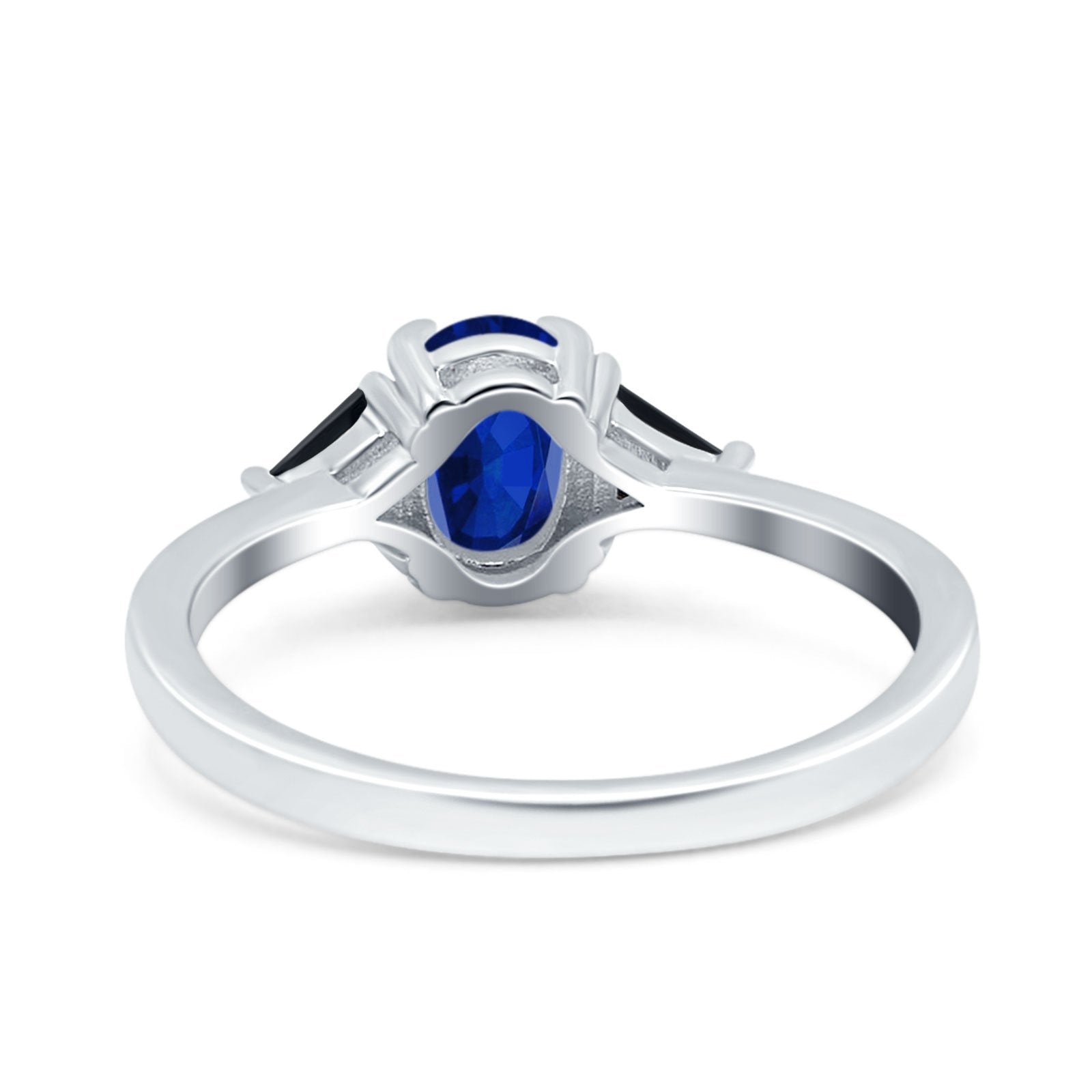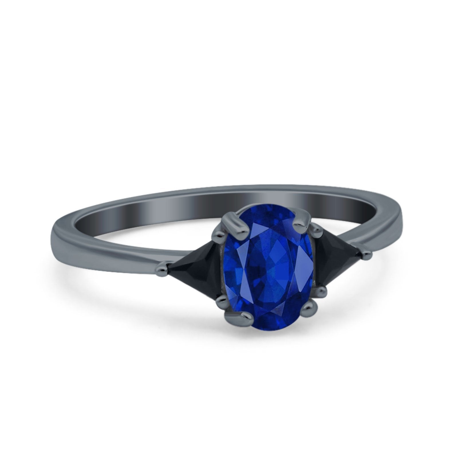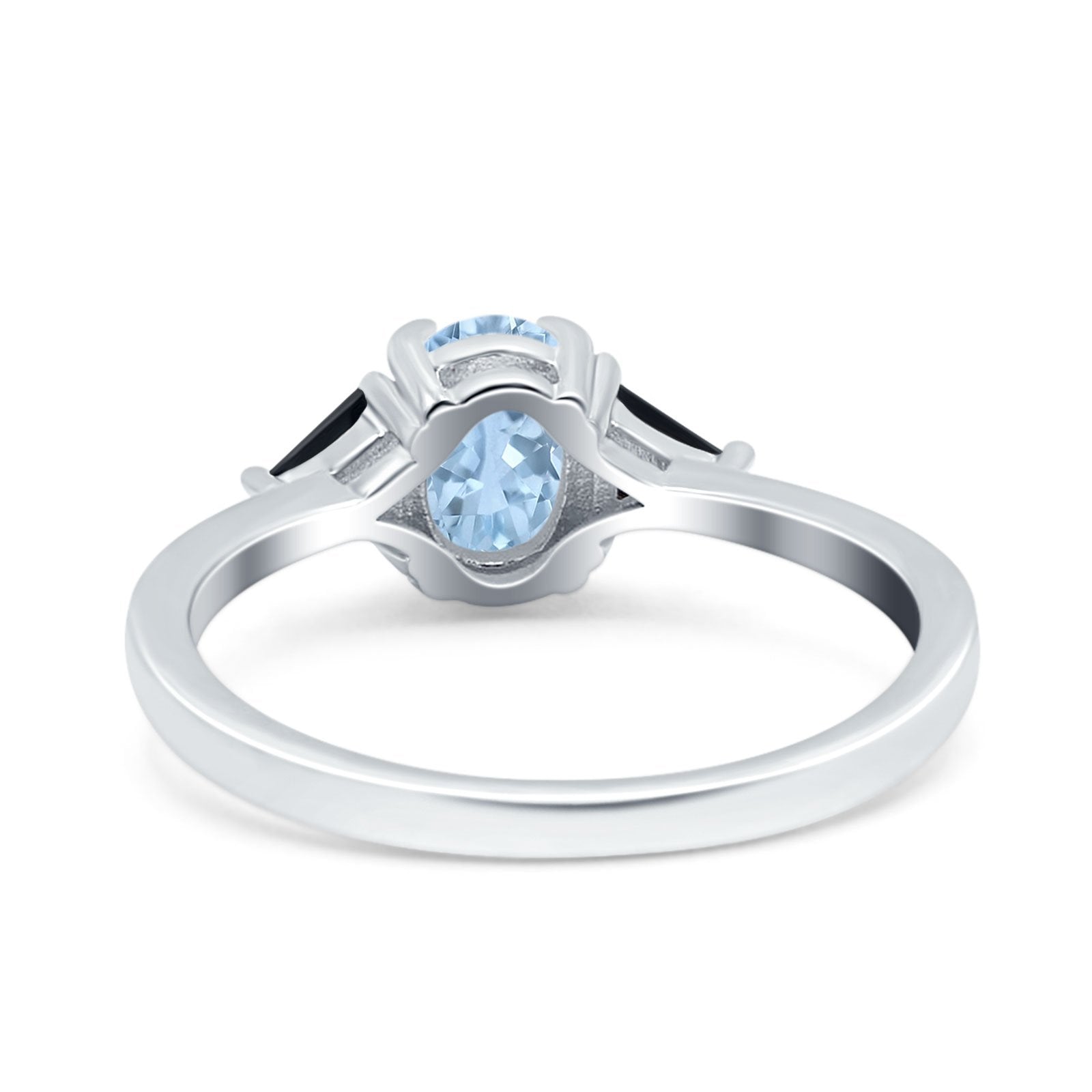 Vintage Oval Engagement Ring Triangle Black Simulated Cubic Zirconia 925 Sterling Silver