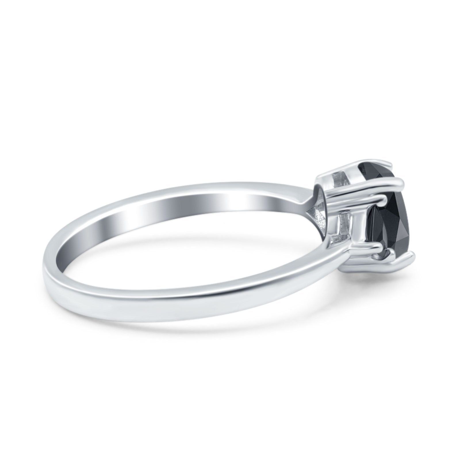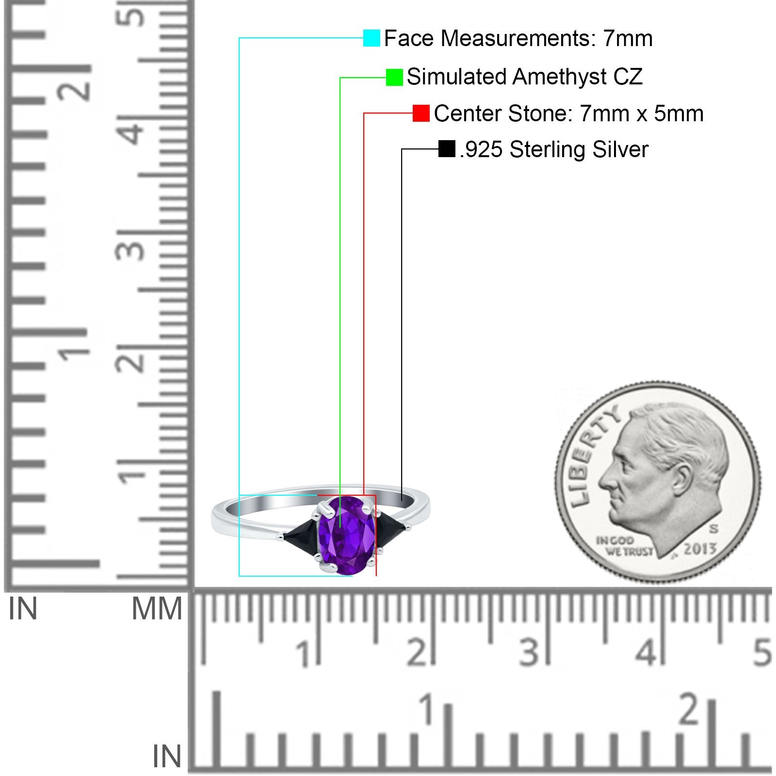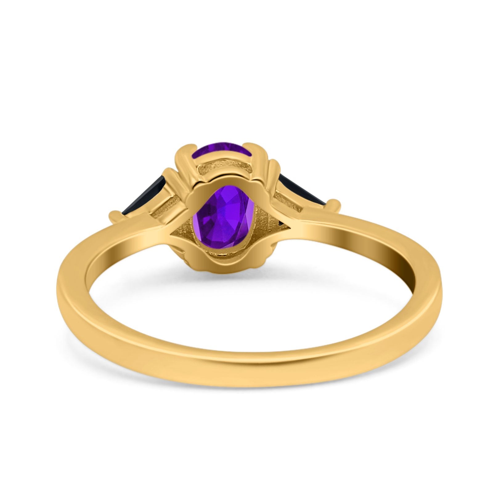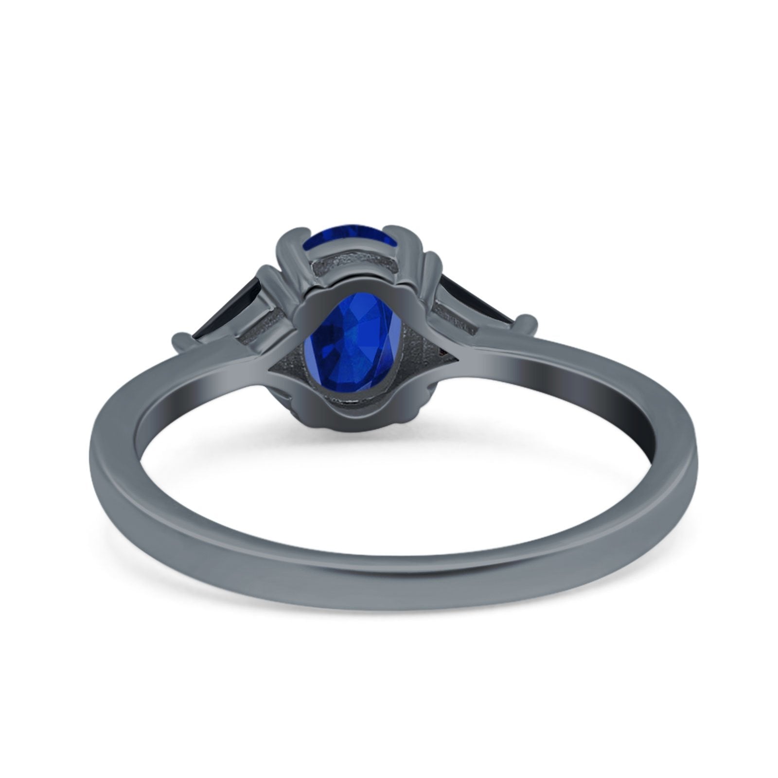Vintage Oval Engagement Ring Triangle Black Simulated Cubic Zirconia 925 Sterling Silver
