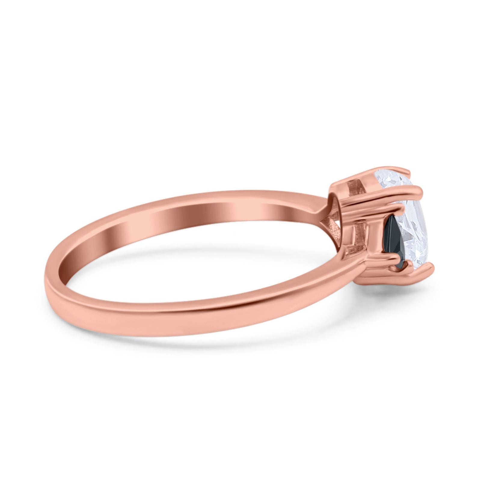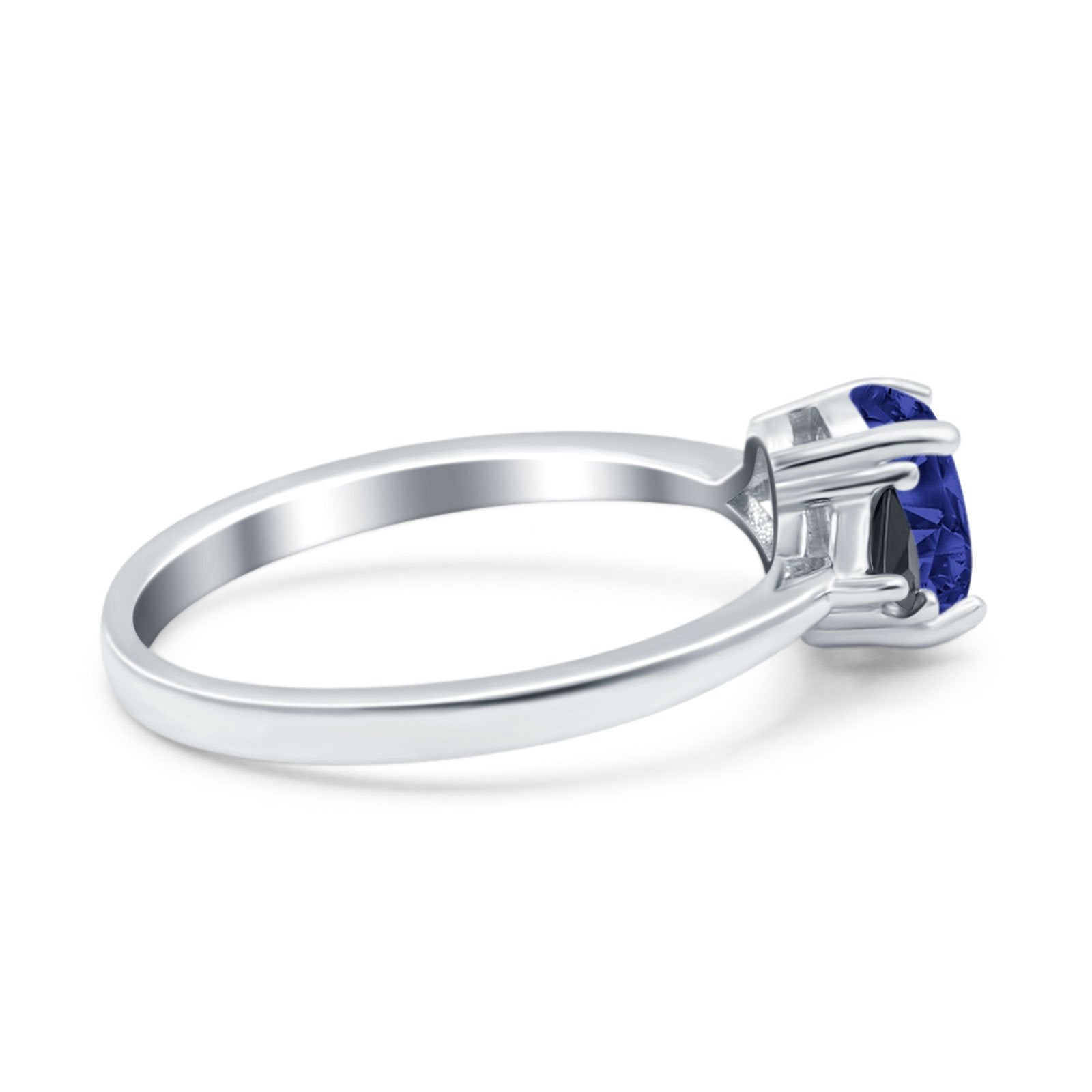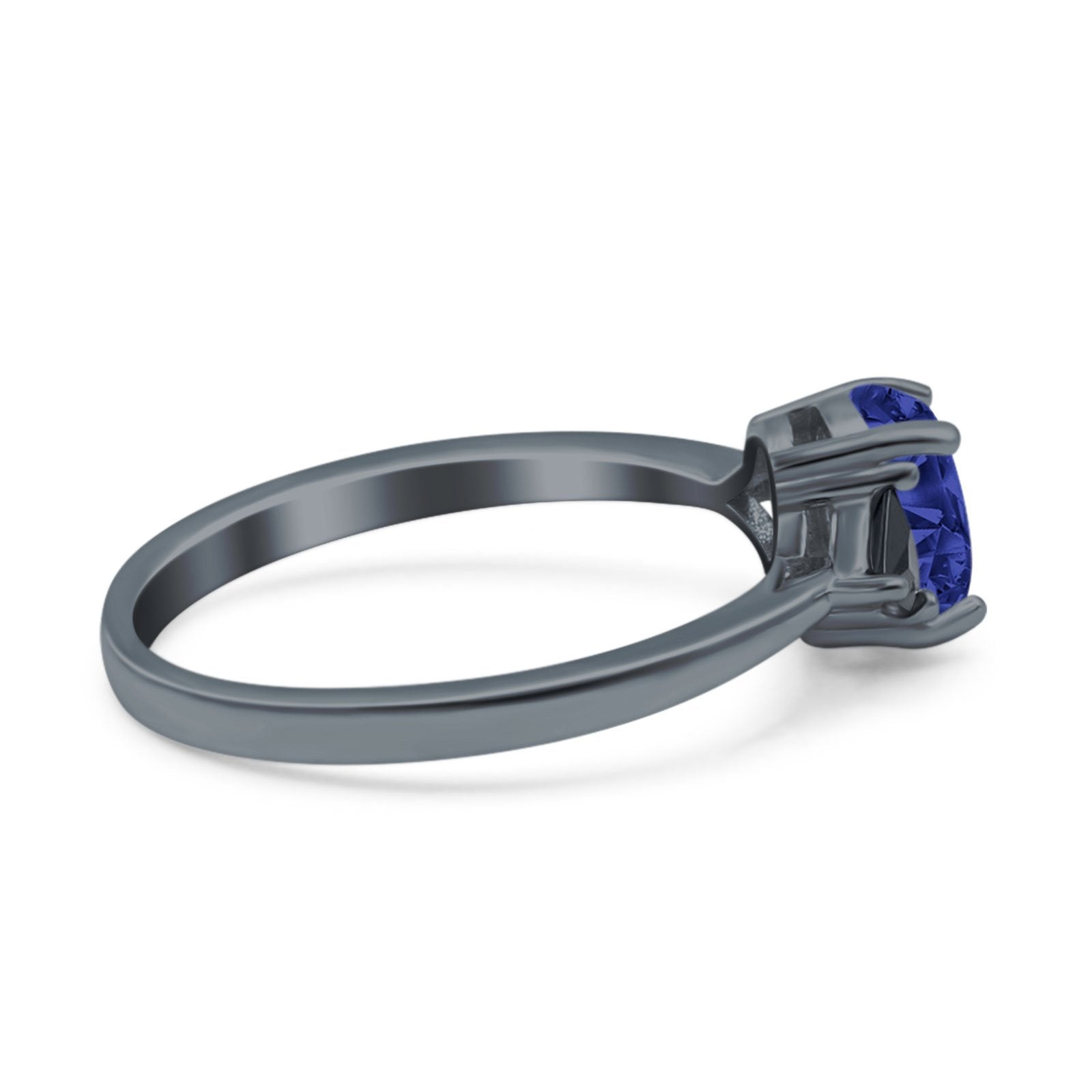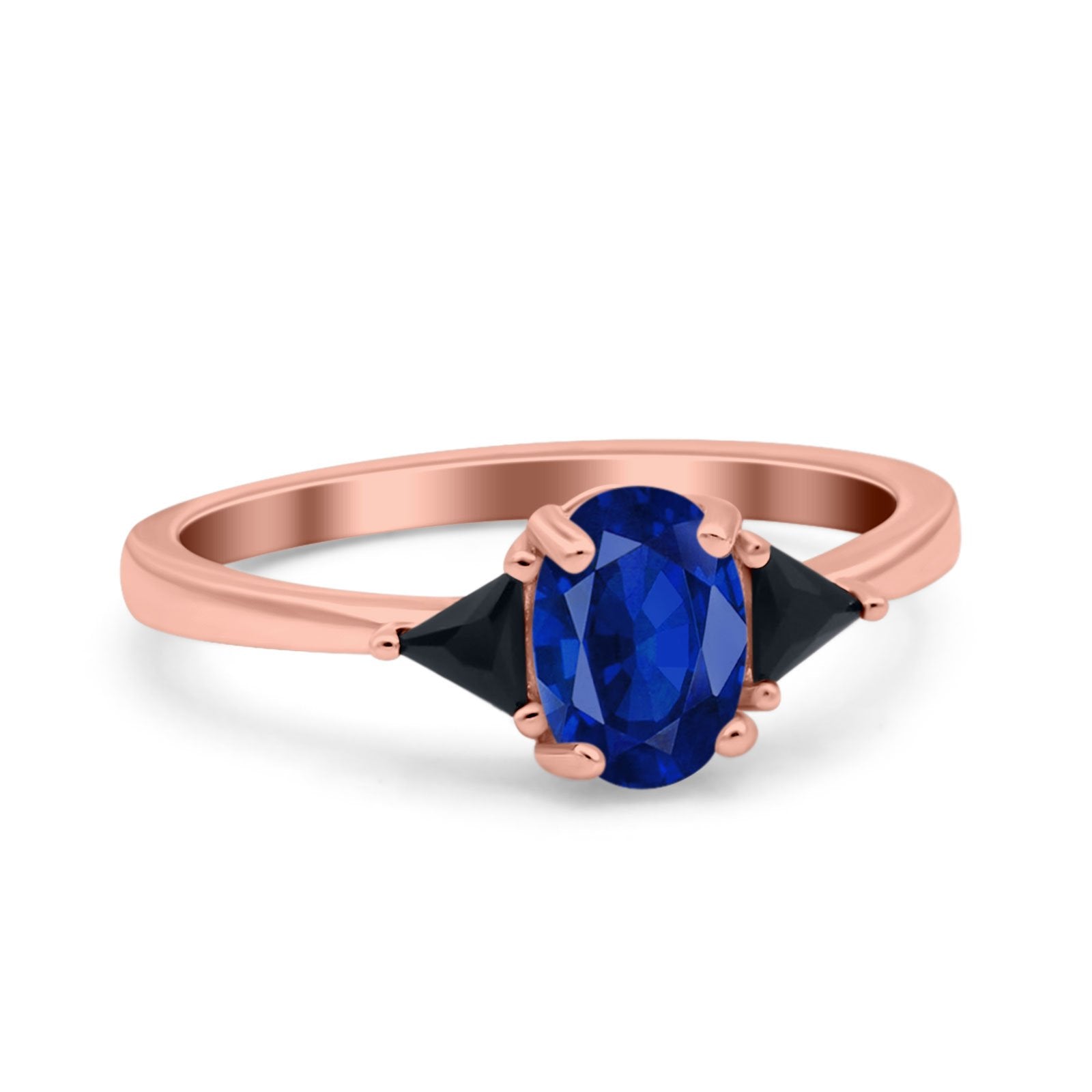 Vintage Oval Engagement Ring Triangle Black Simulated Cubic Zirconia 925 Sterling Silver