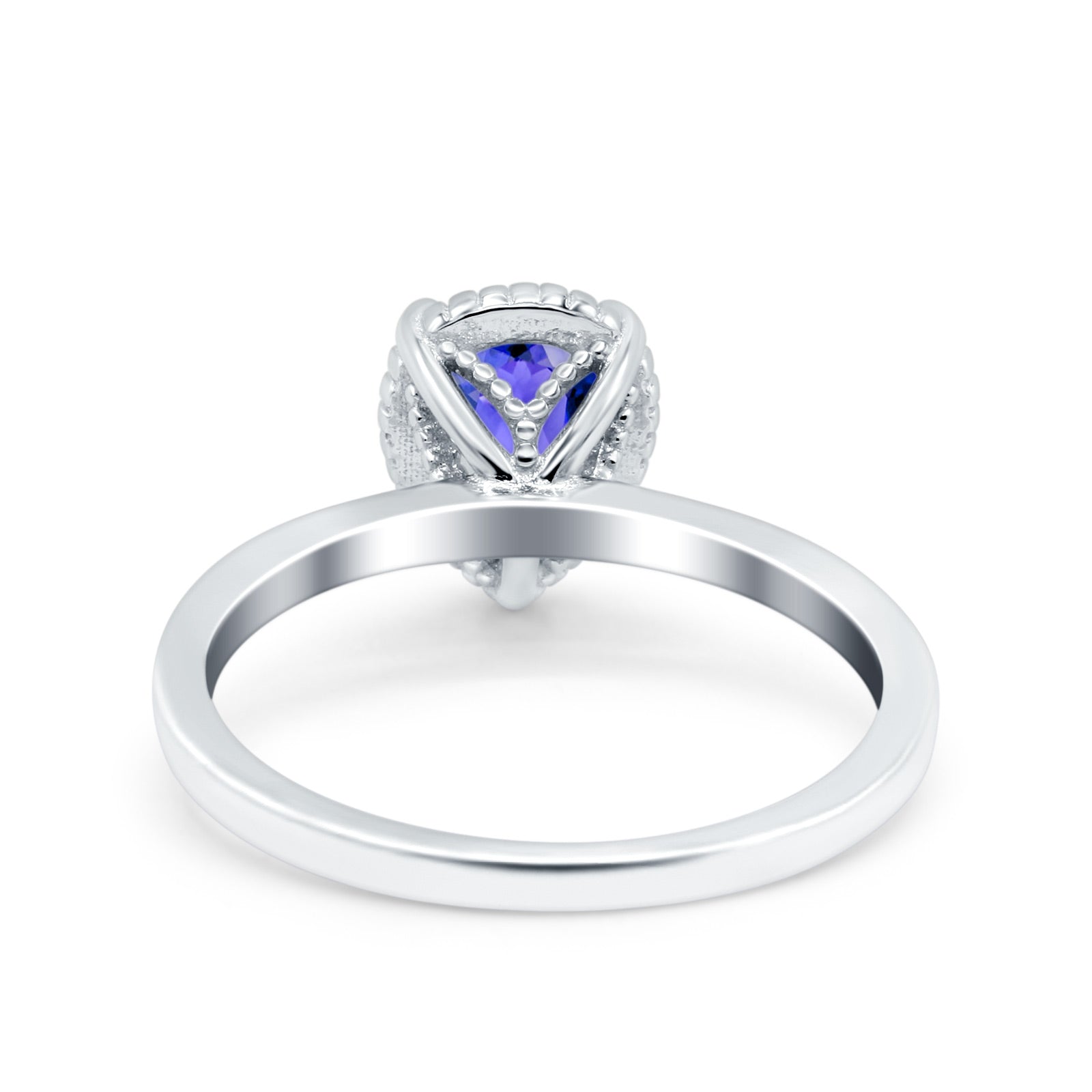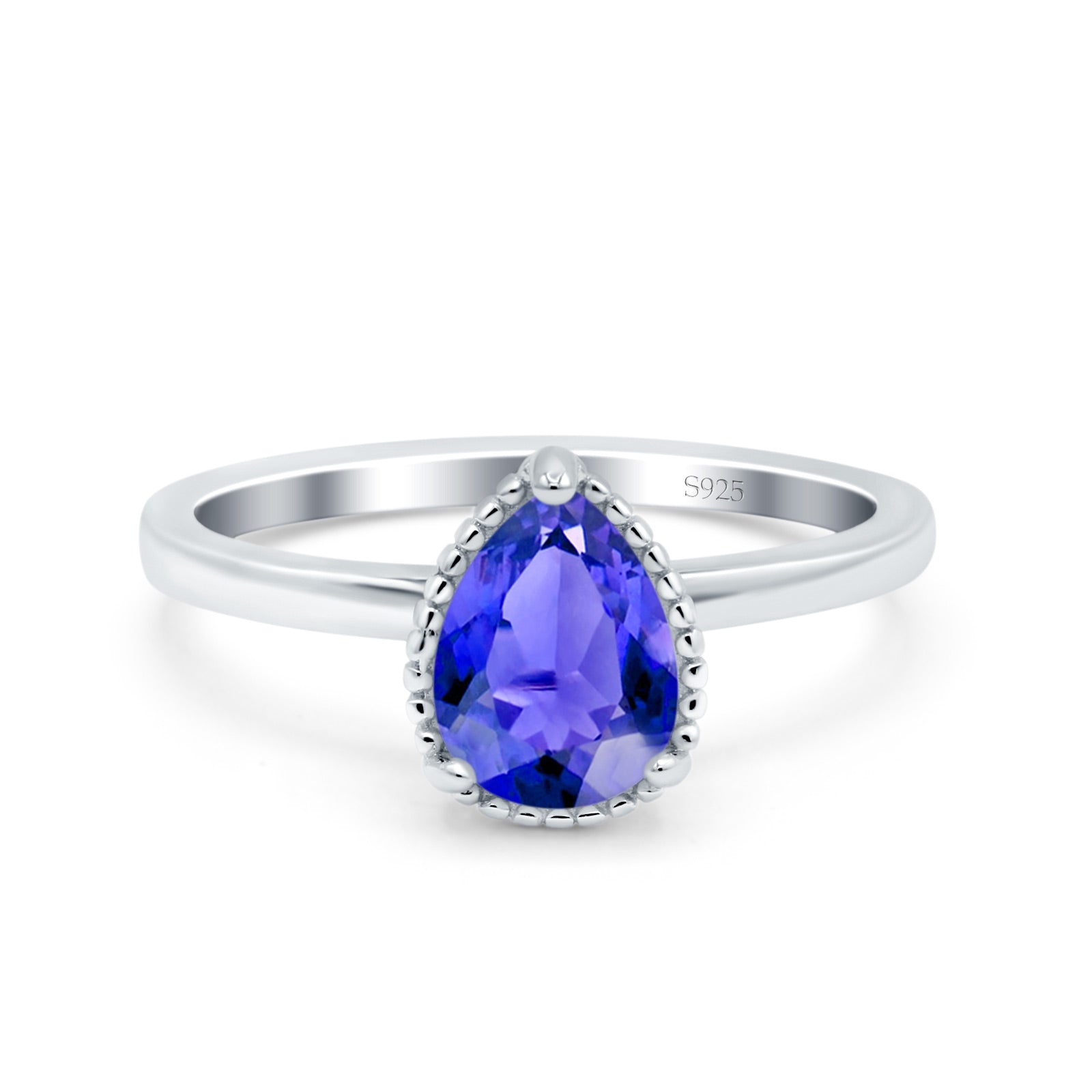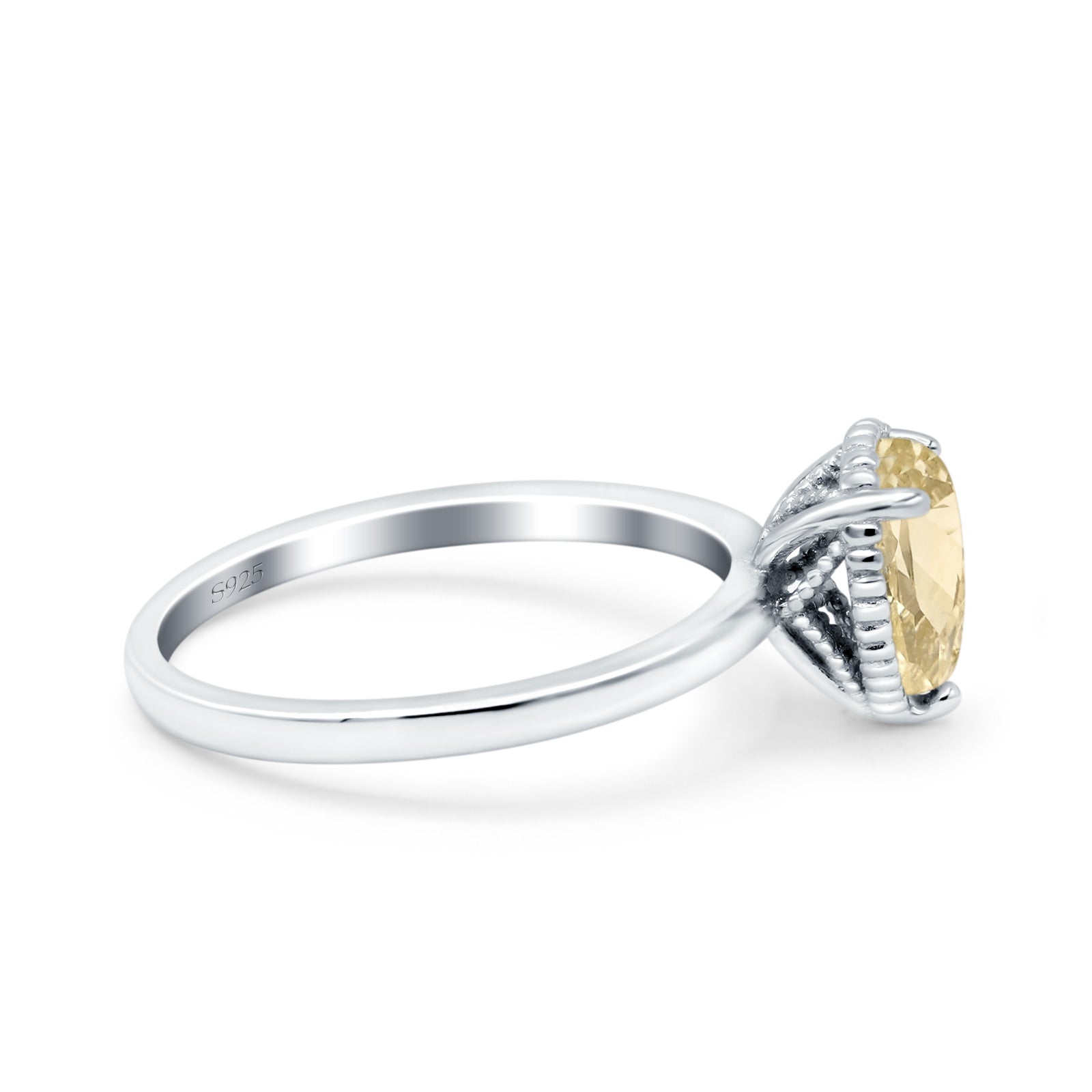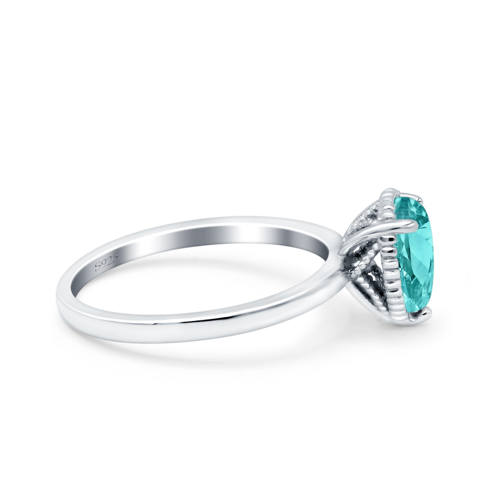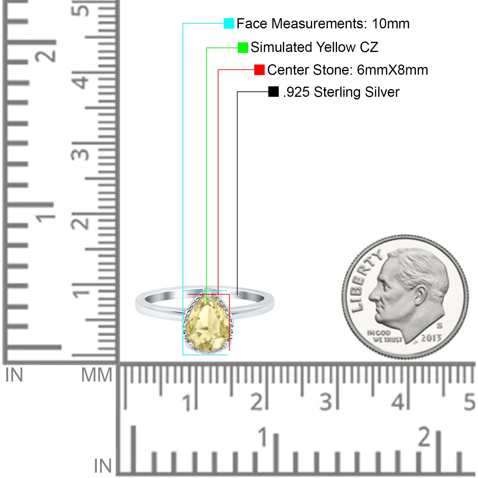 Vintage Style Art Deco Solitaire Accent Pear Wedding Engagement Ring Simulated Cubic Zirconia 925 Sterling Silver