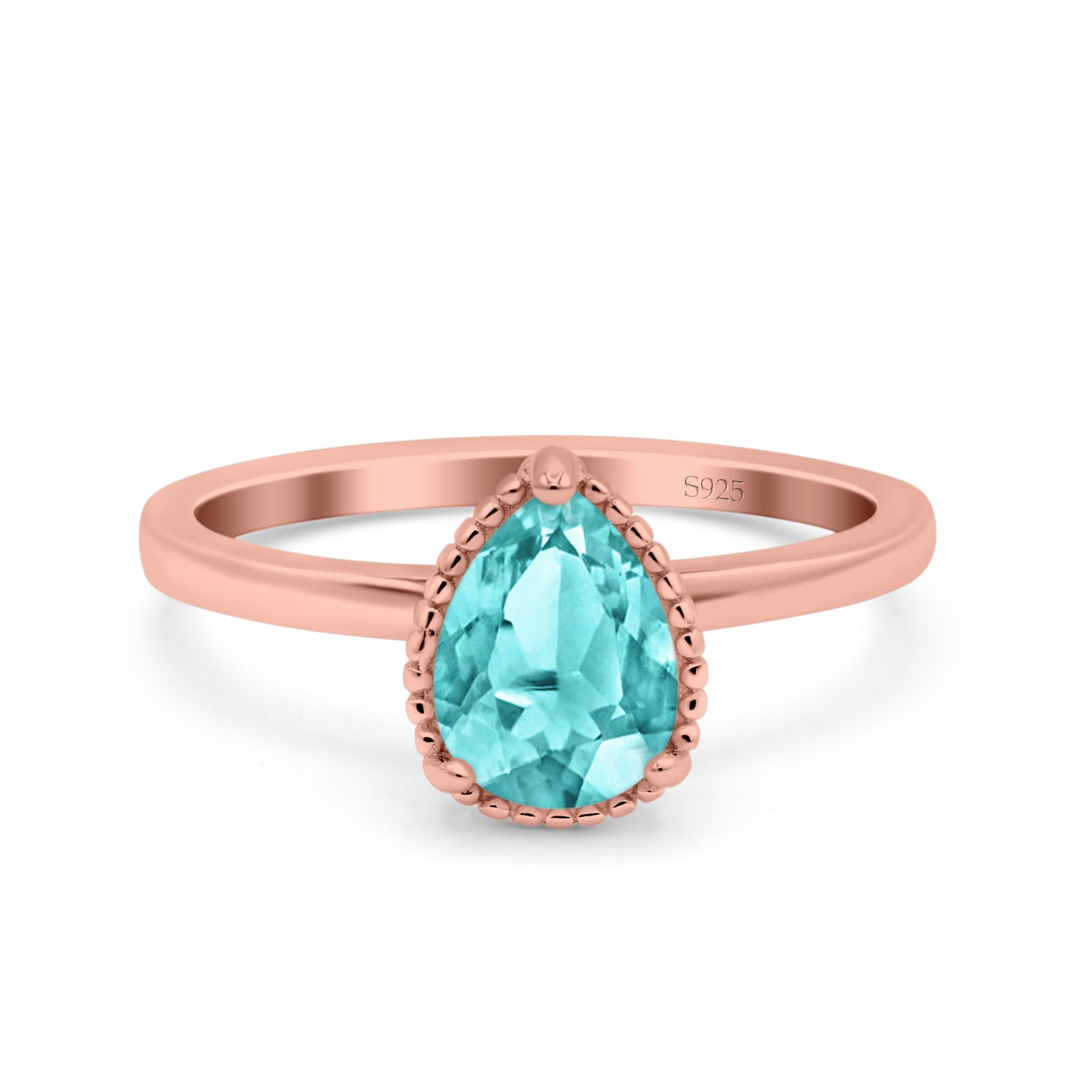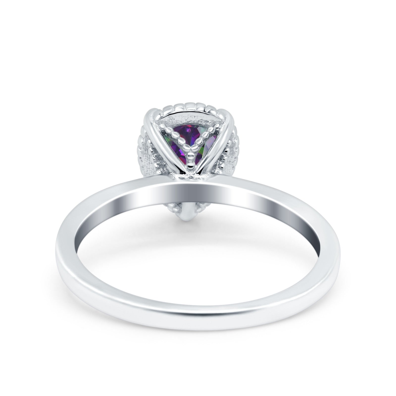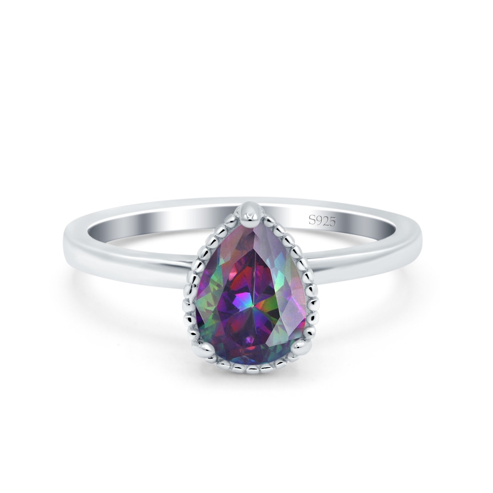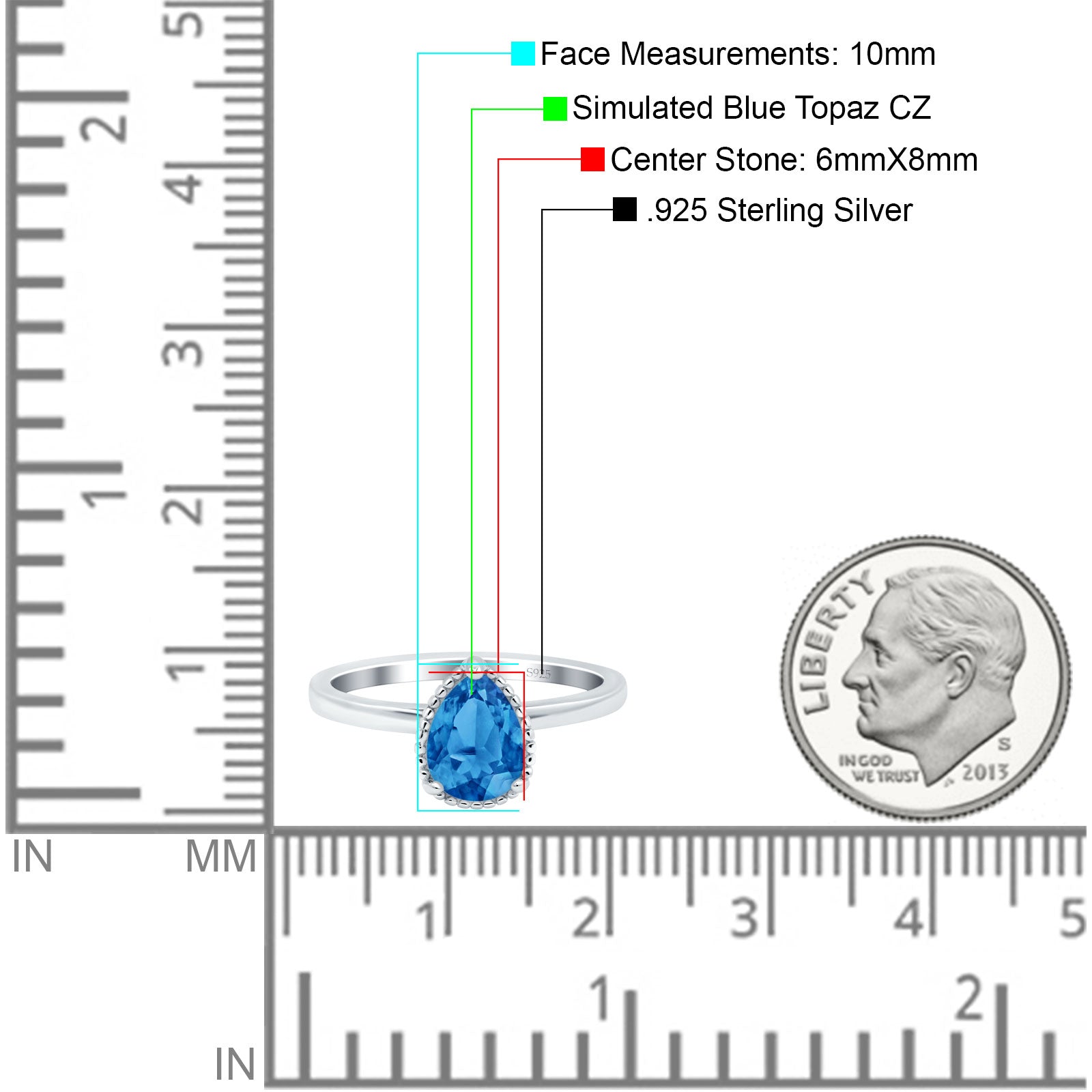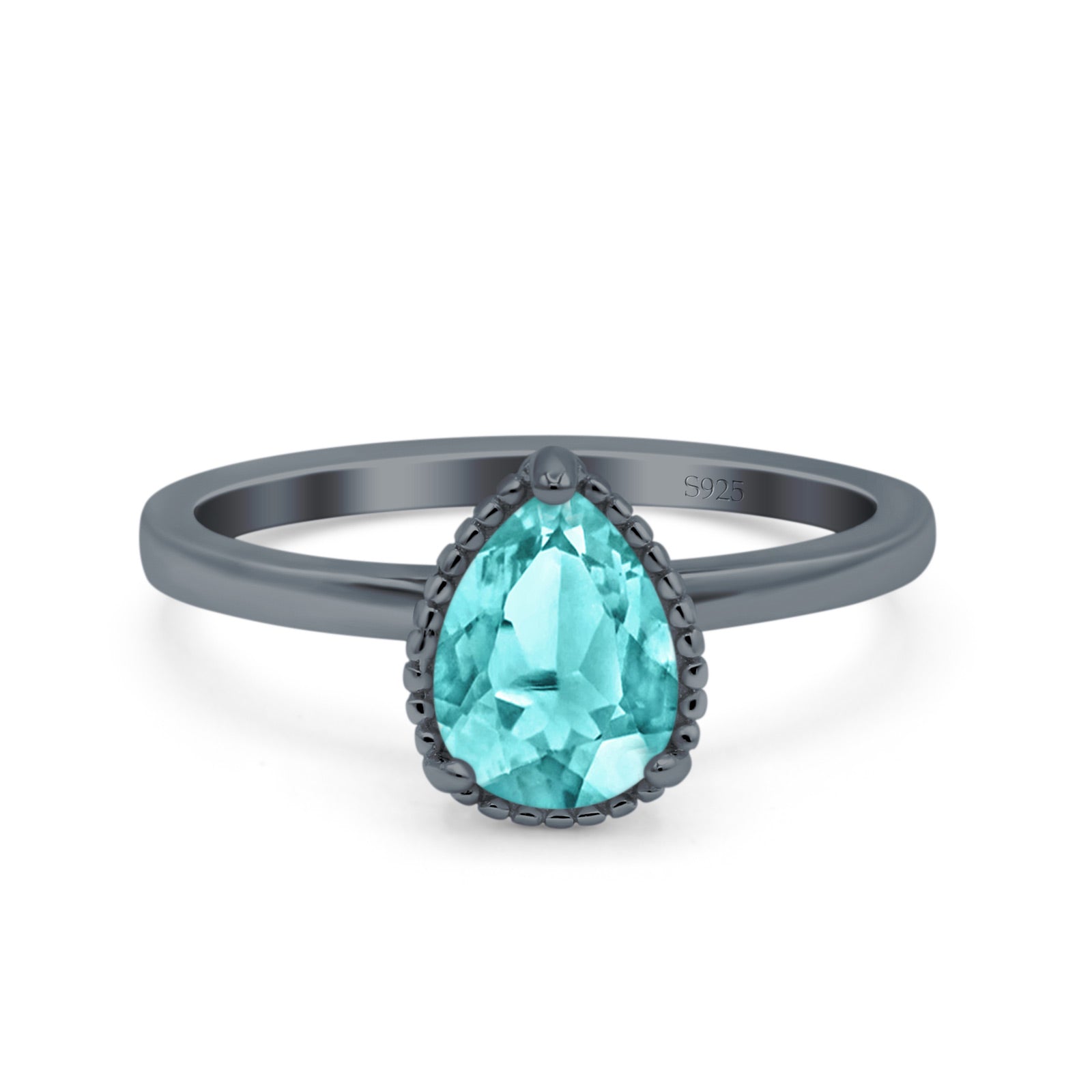 Vintage Style Art Deco Solitaire Accent Pear Wedding Engagement Ring Simulated Cubic Zirconia 925 Sterling Silver