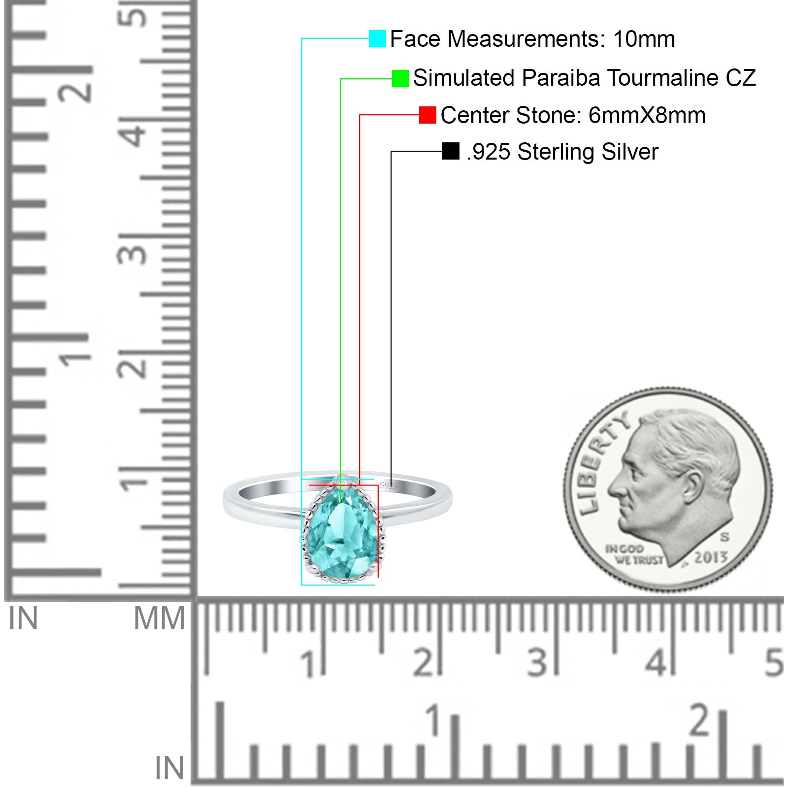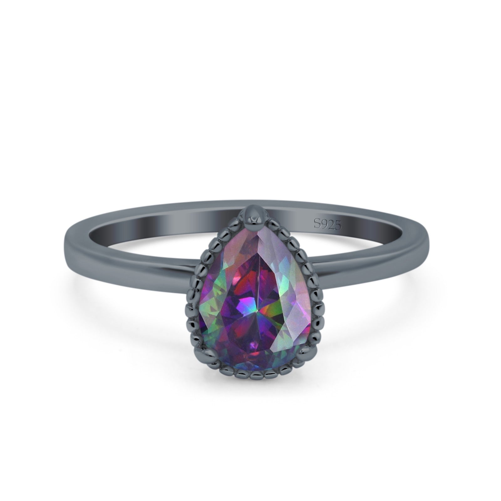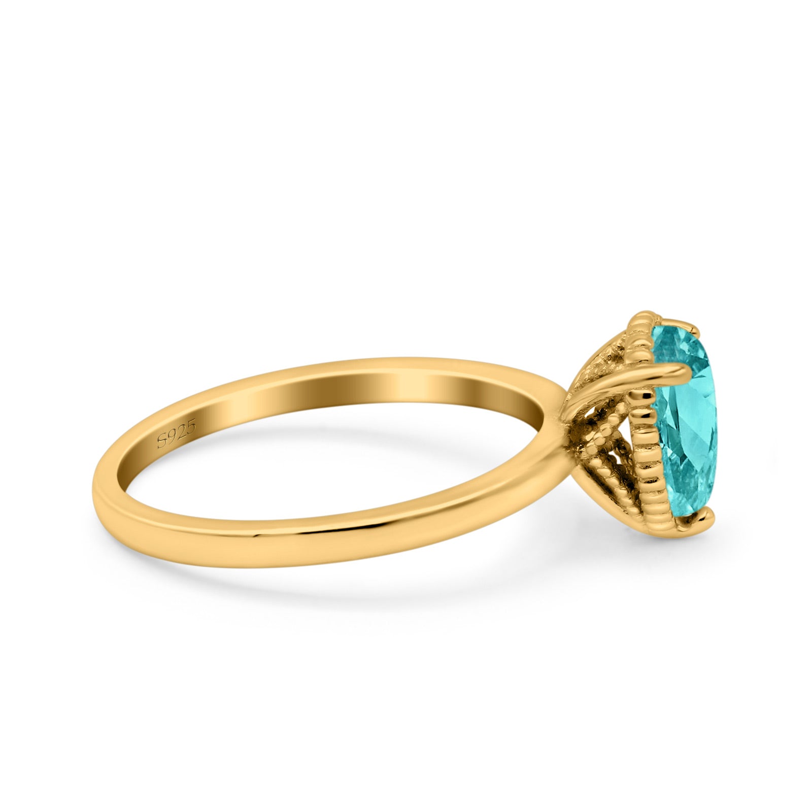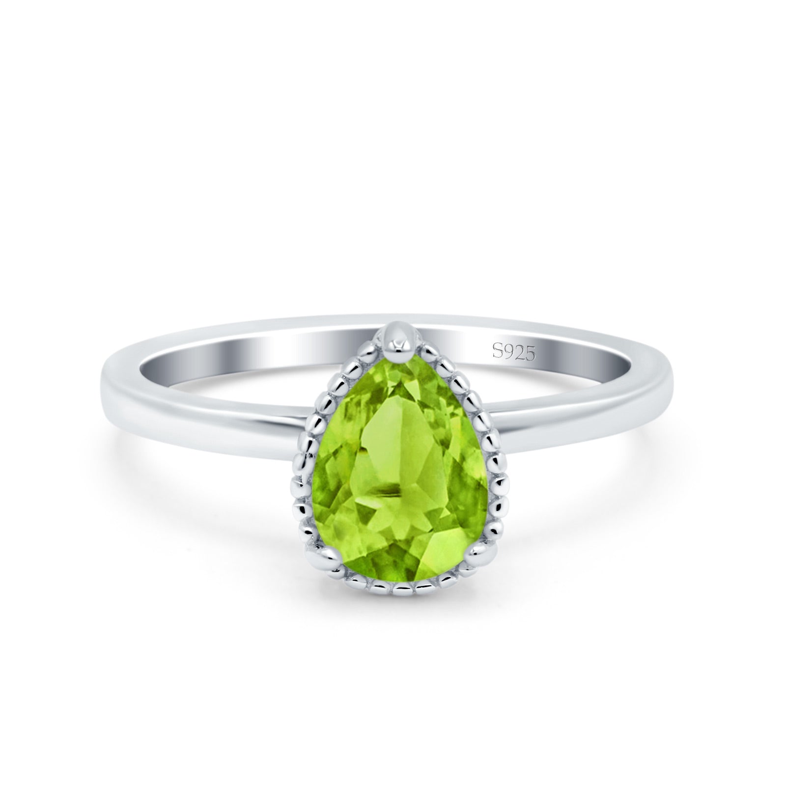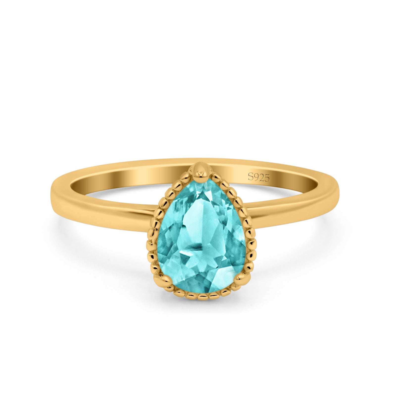 Vintage Style Art Deco Solitaire Accent Pear Wedding Engagement Ring Simulated Cubic Zirconia 925 Sterling Silver