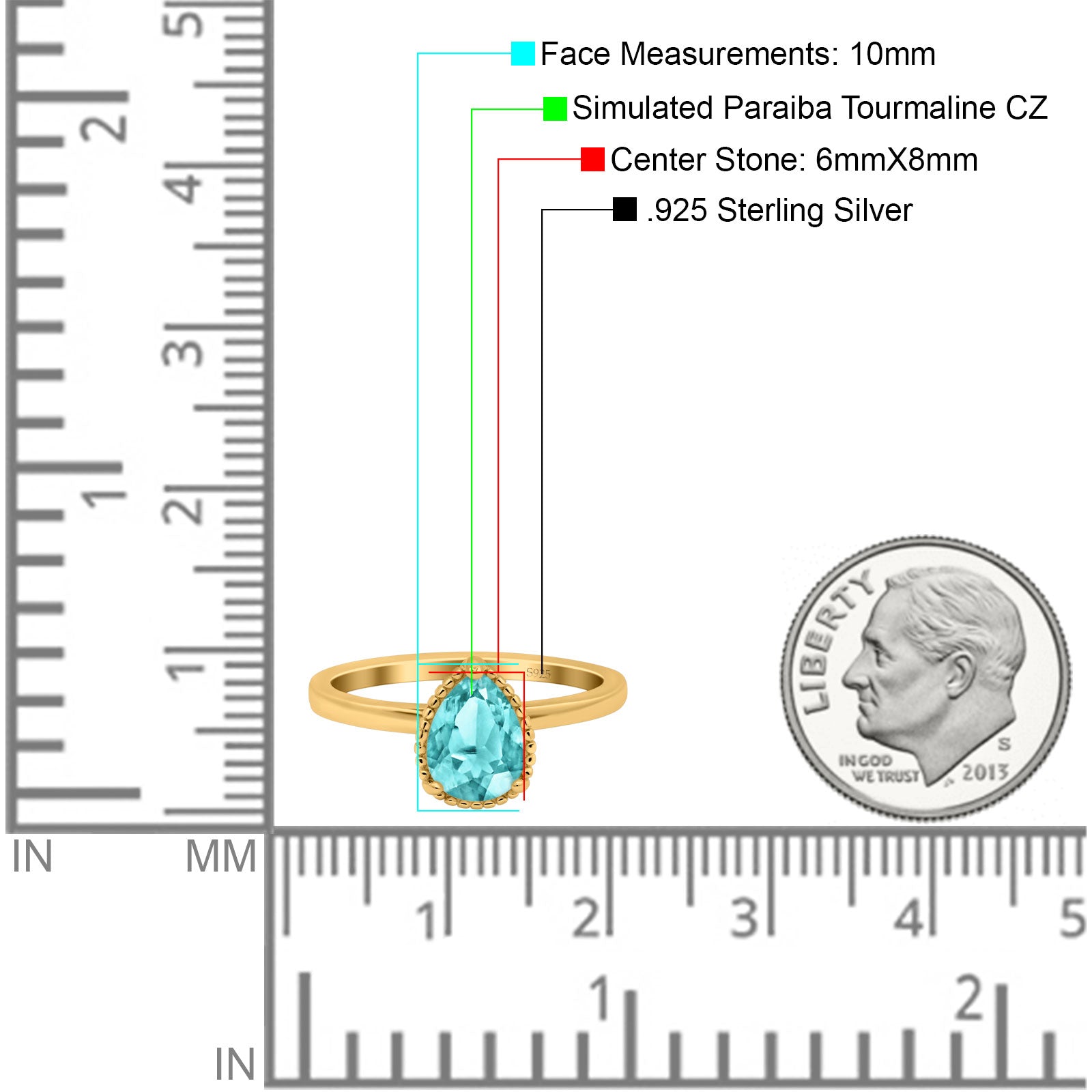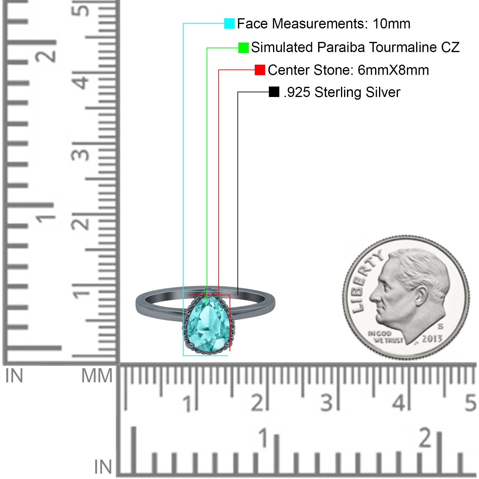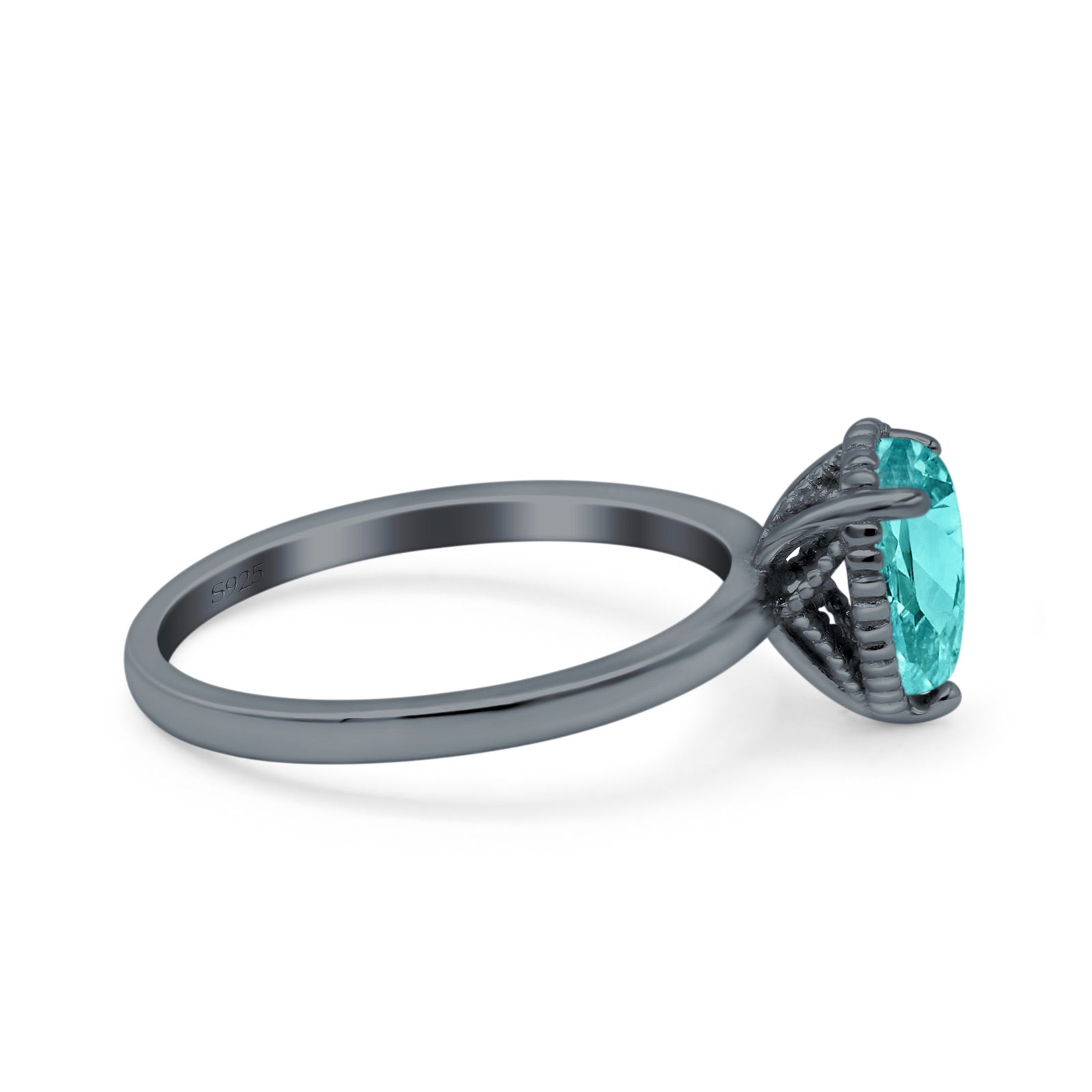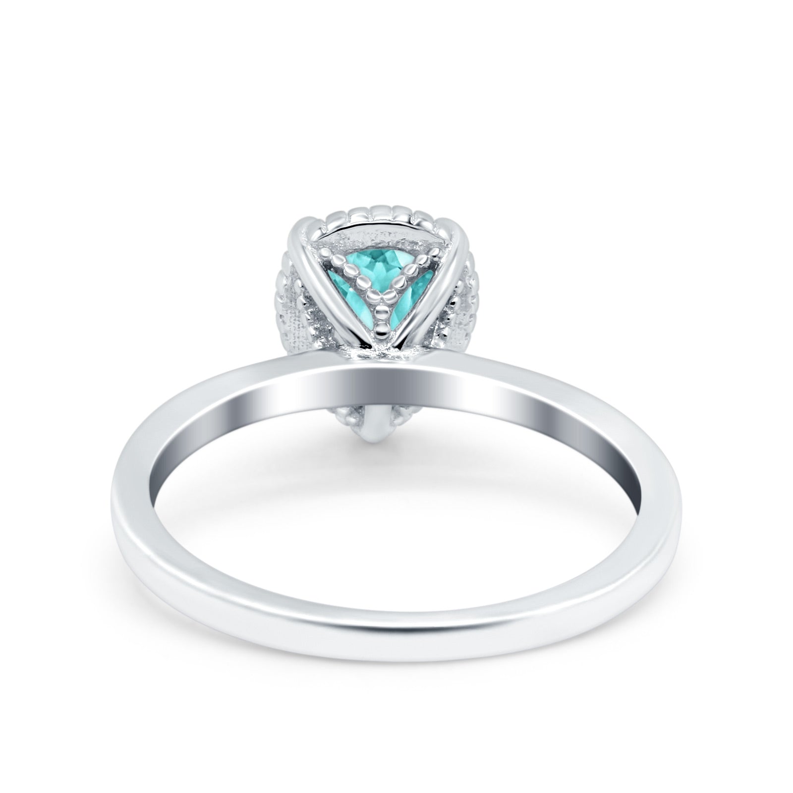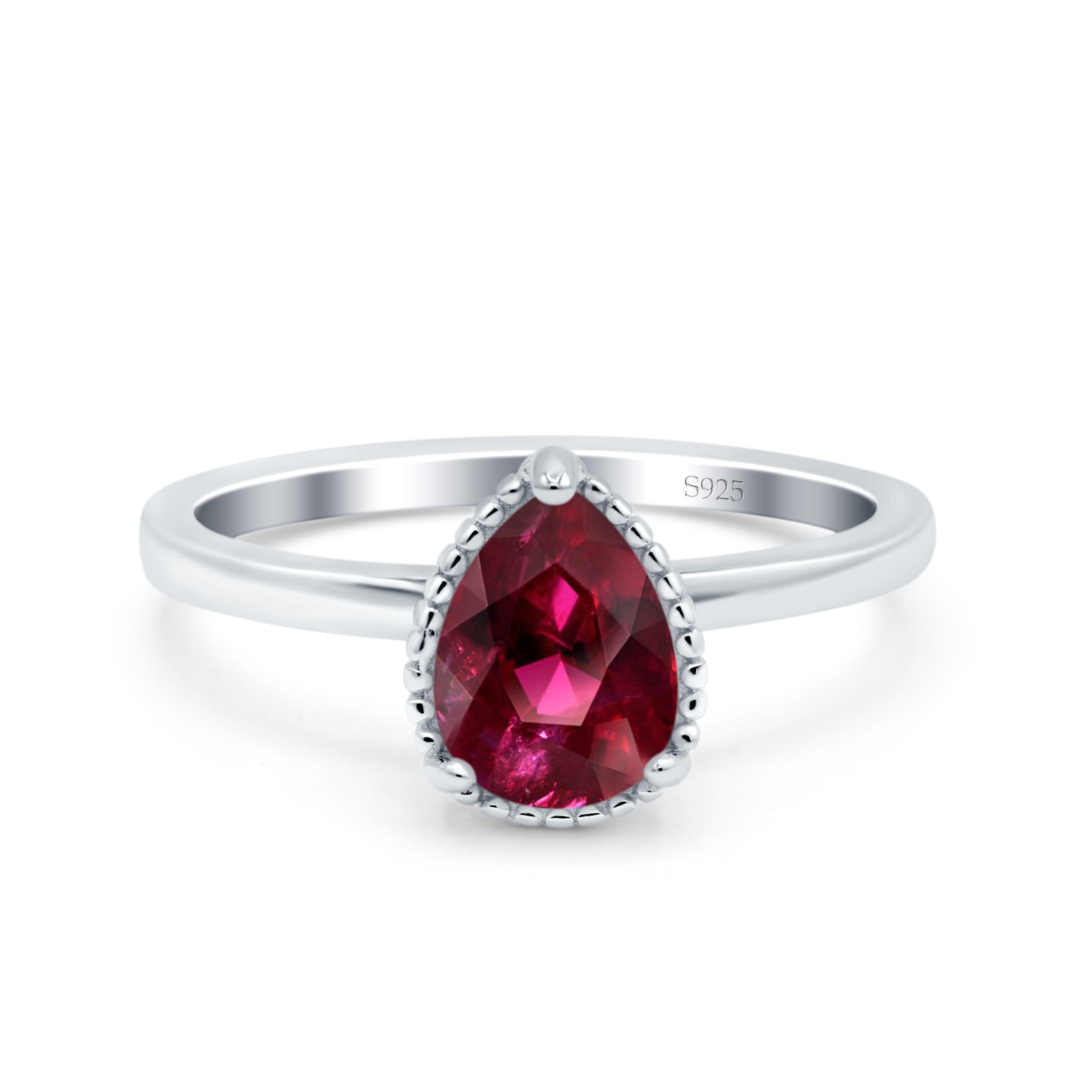Vintage Style Art Deco Solitaire Accent Pear Wedding Engagement Ring Simulated Cubic Zirconia 925 Sterling Silver