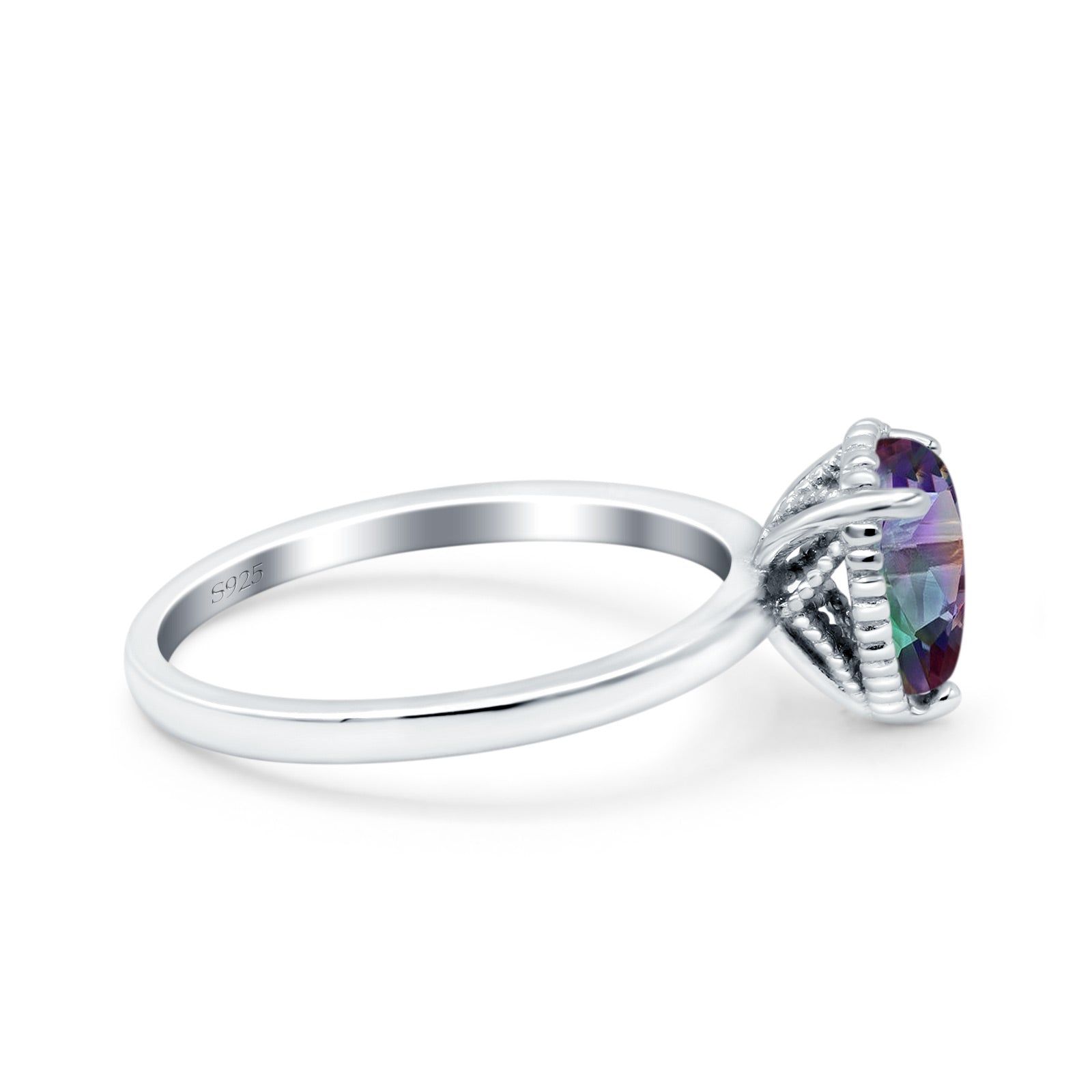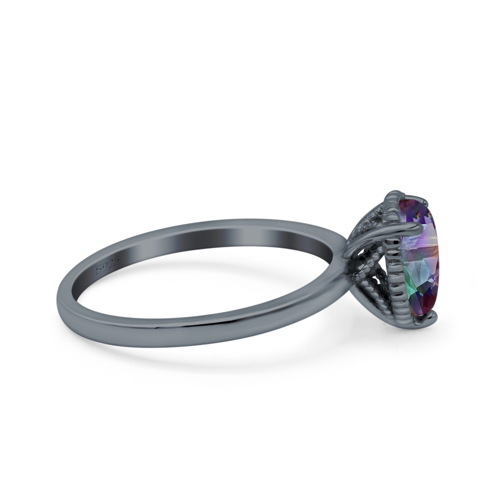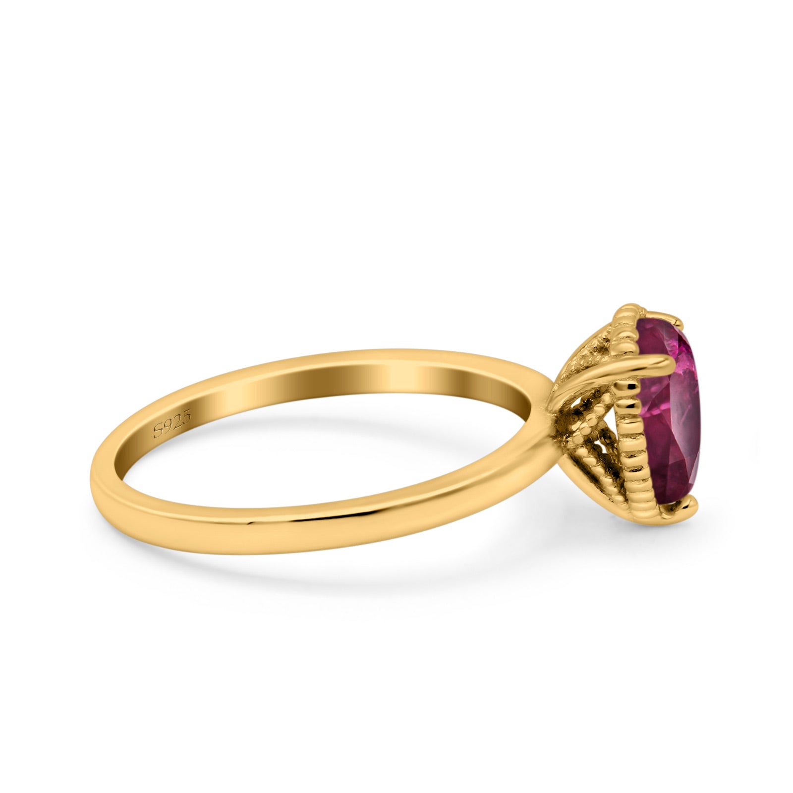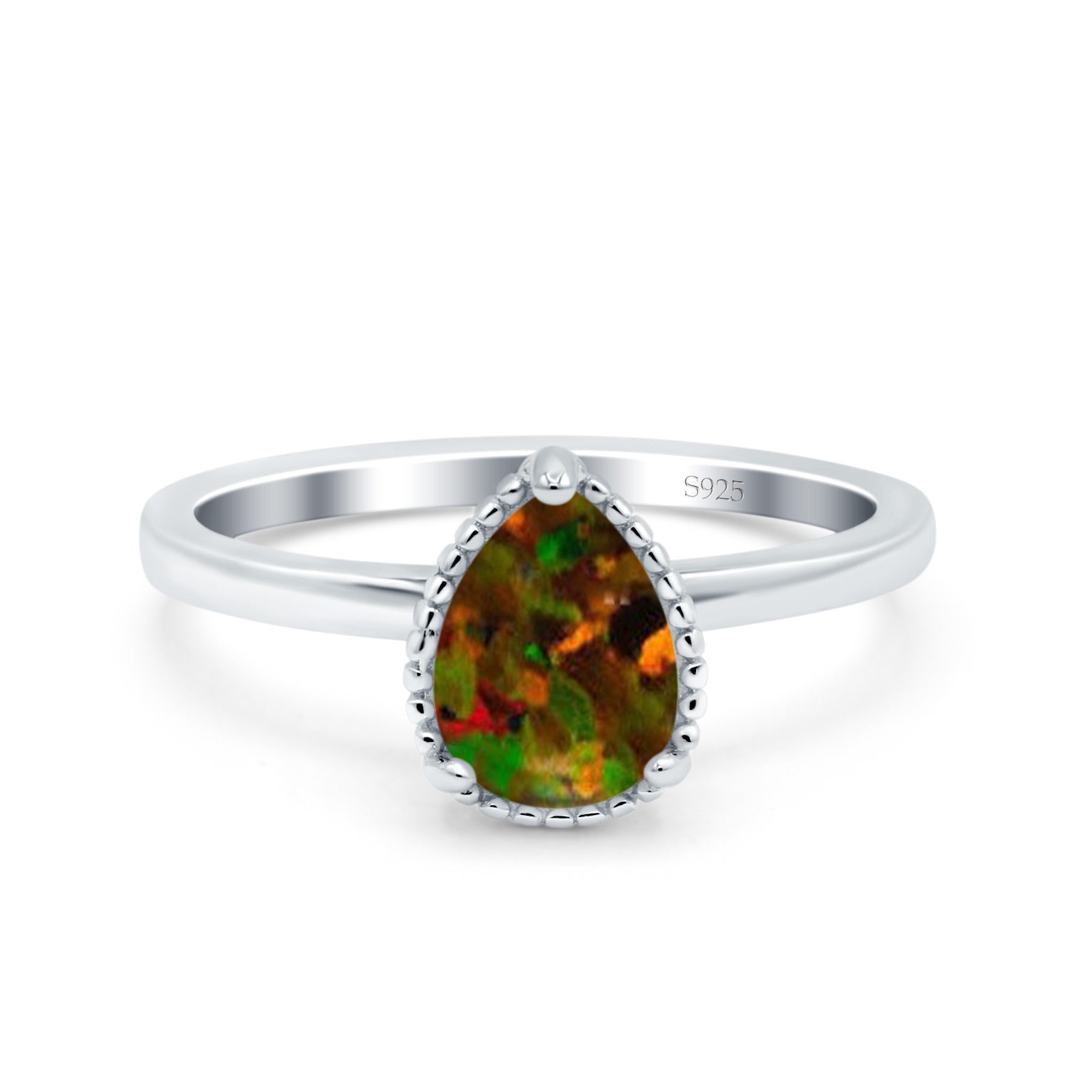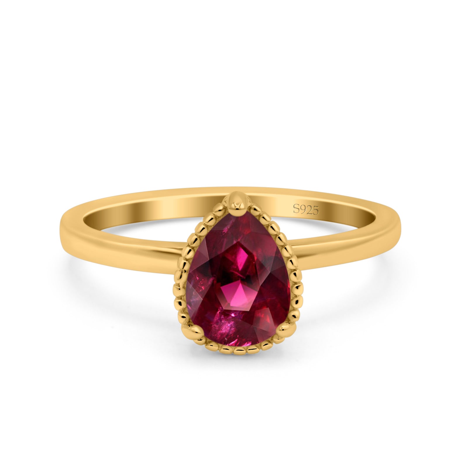 Vintage Style Art Deco Solitaire Accent Pear Wedding Engagement Ring Simulated Cubic Zirconia 925 Sterling Silver