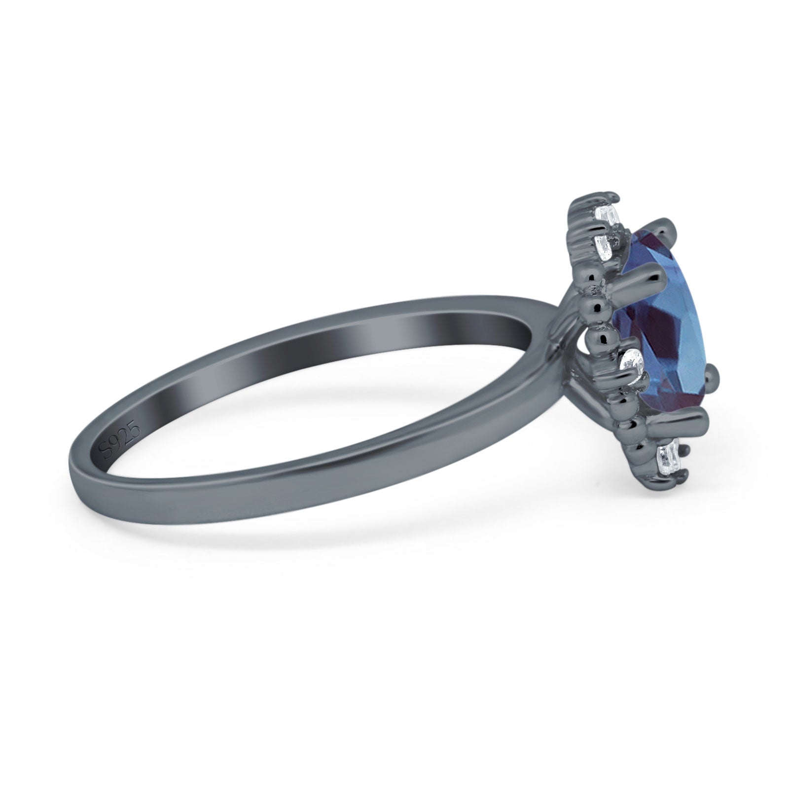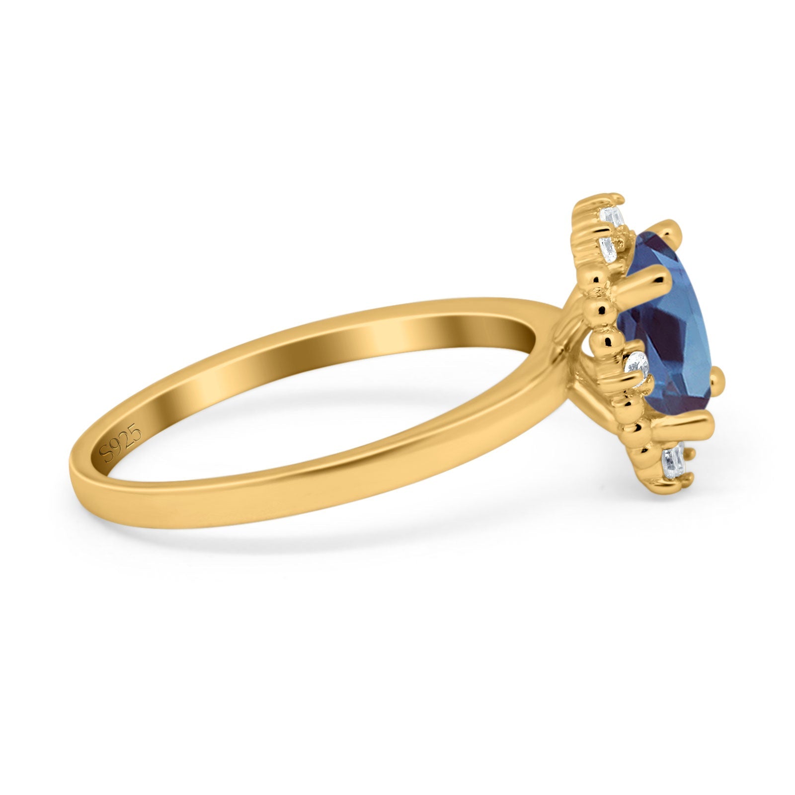 Minimalist 8mm Lab Created Blue Opal Heart Ring 925 Sterling Silver