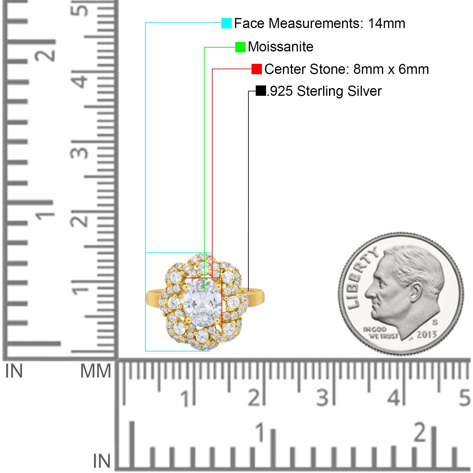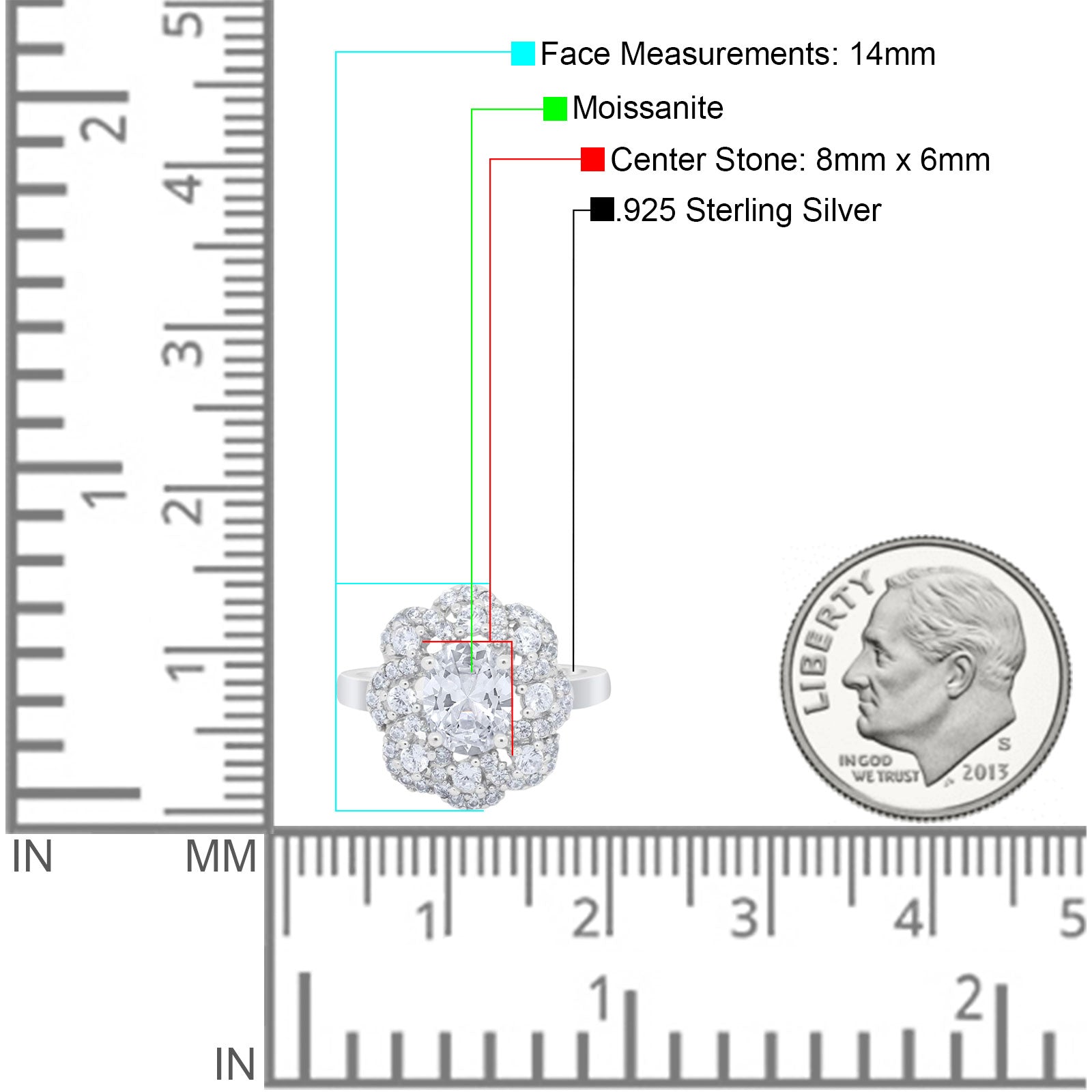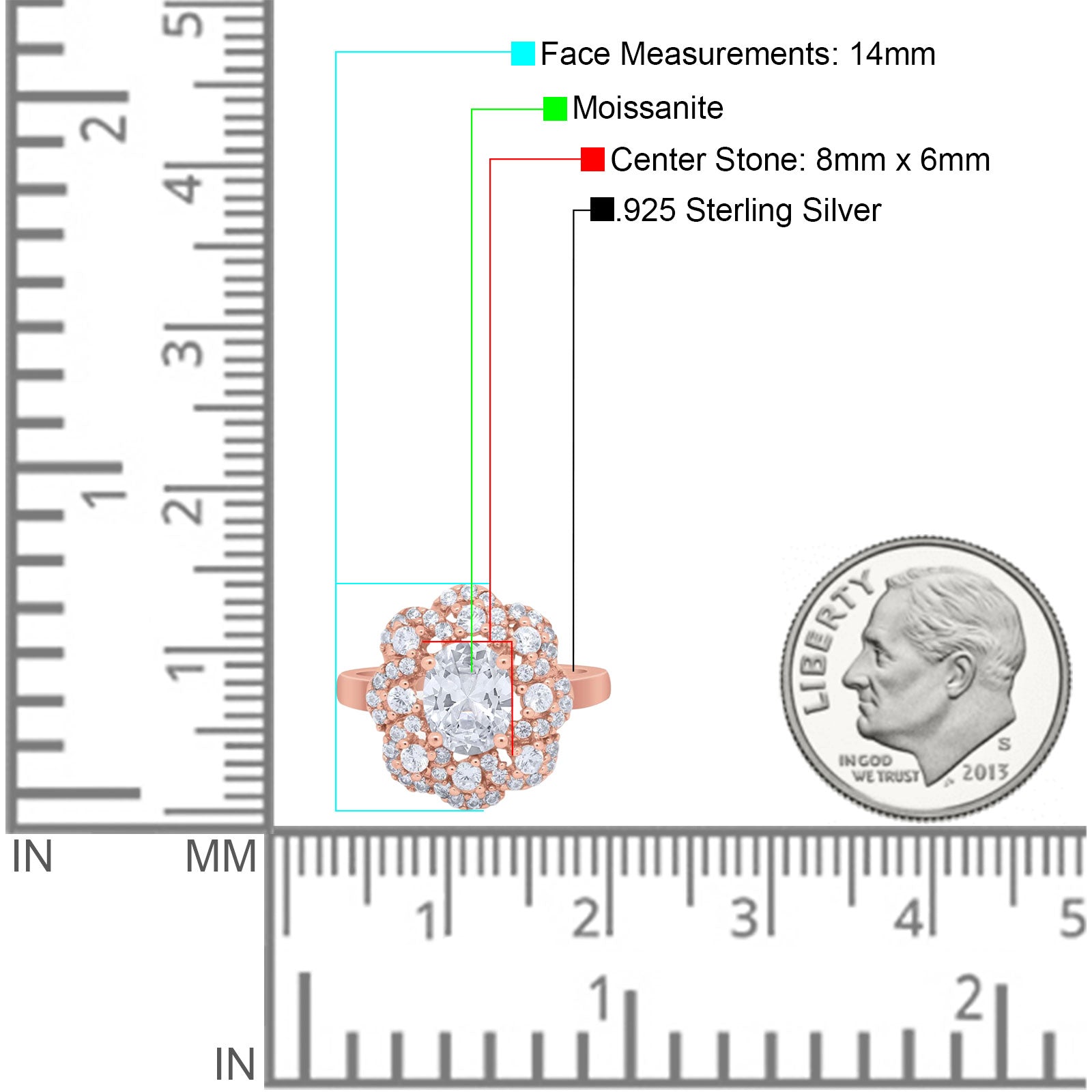 Center Stone Measurements: 8mmx6mm.
